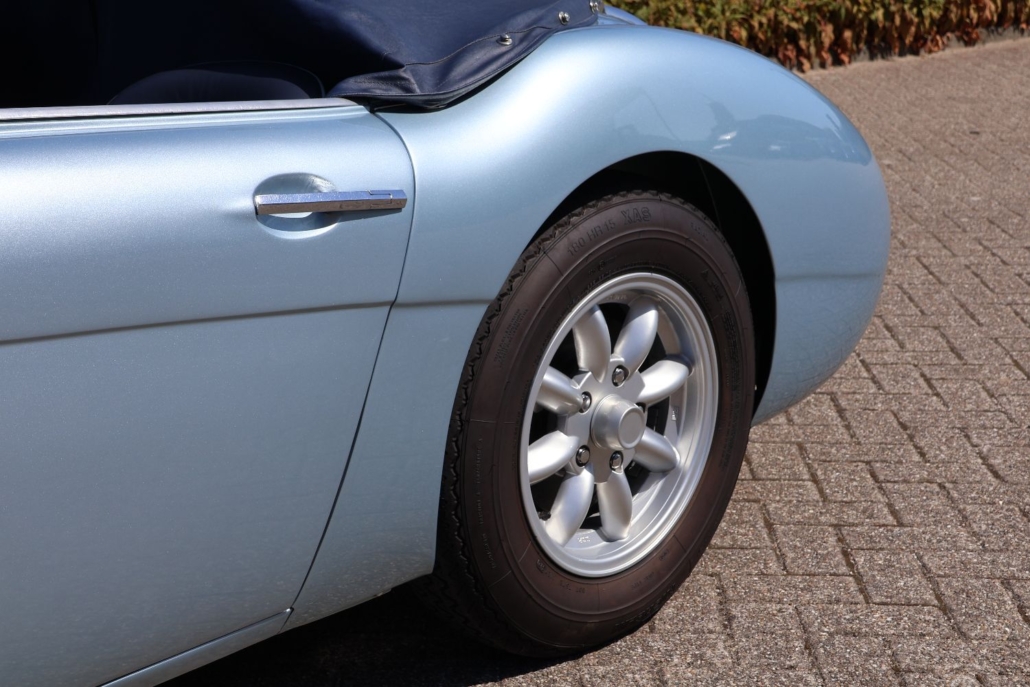 Minilite wielen met Michelin X-AS banden, SPAX verstelbare telescoop schokdempers achter, fosseway remklauwen voor, stoelen dashboard en stuur in leer, spin-on oliefilter, wisselstroom dynamo conversie, moderne koelfan, elektronische ontsteking, verstralers met rvs steunen, indoor car cover etc. En uiteraard komen alle originele onderdelen bij de auto naar de nieuwe eigenaar.
