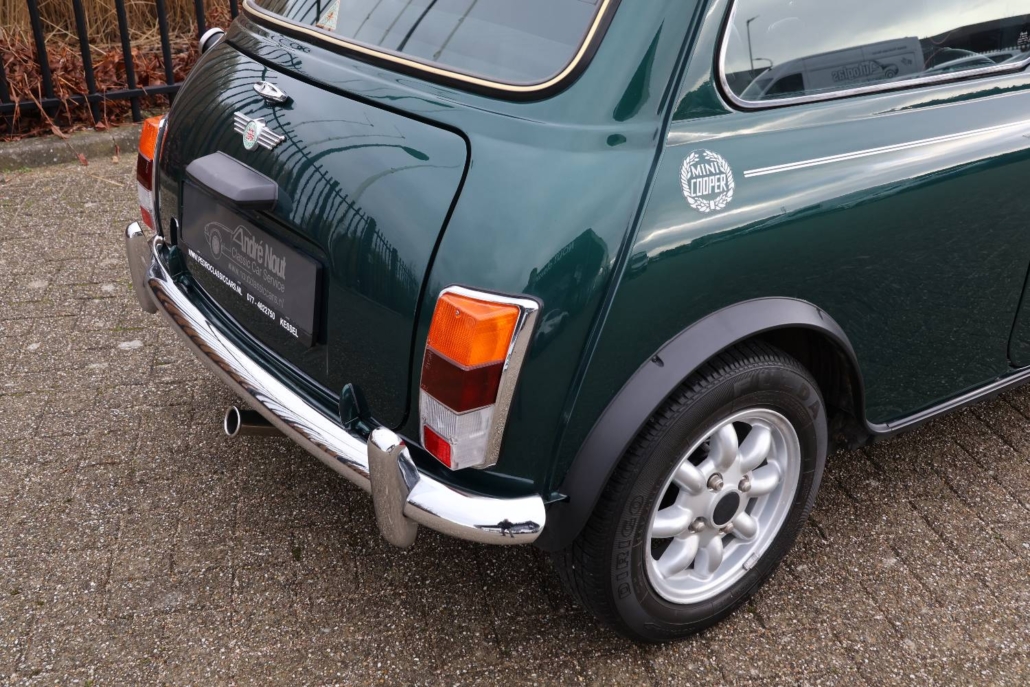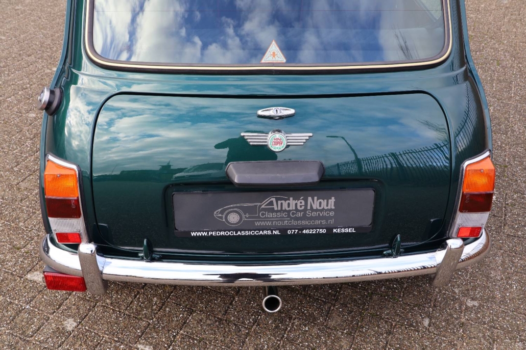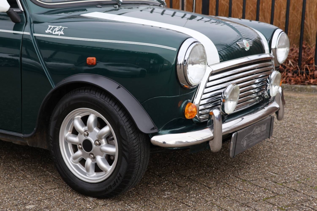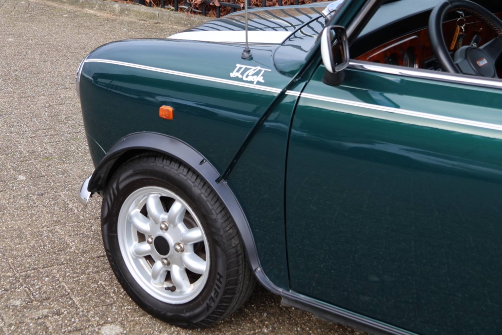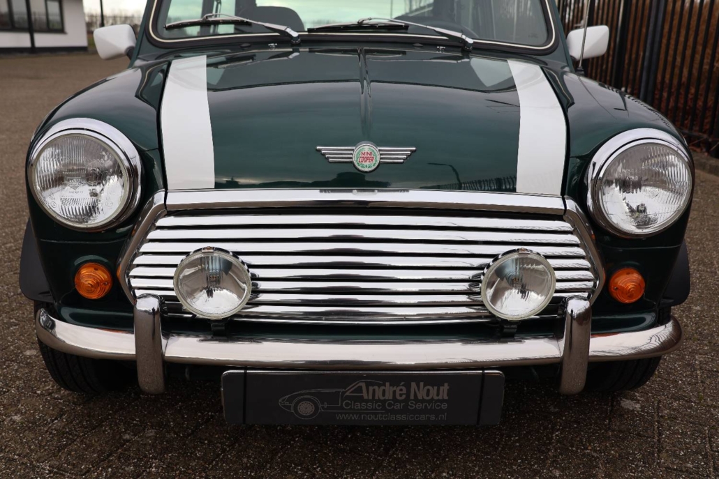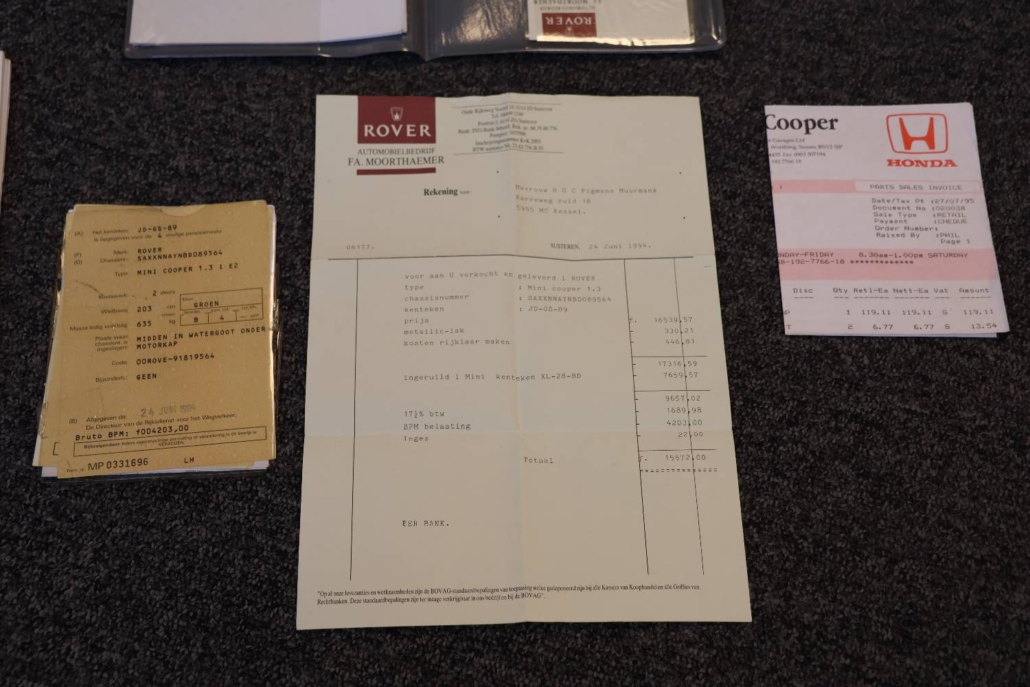 Deze mini cooper 1.3 in John Cooper uitvoering werd nieuw geleverd in Nederland door autobedrijf Moorthaemer in Susteren aan de eerste eigenaresse, geboren in 1938! Deze dame was een echte mini liefhebber en heeft de auto altijd met liefde behandelt en onderhouden. De originele aankoopfactuur uit 1994 is nog aanwezig, evenals het originele papieren kenteken en het complete set onderhouds en instructieboekjes. De mini is altijd binnen gestald en er is nooit in gerookt, de staat waarin deze vandaag de dag in verkeert is ronduit prachtig te noemen. De auto is in 2010 door een officieel restauratiebedrijf onder handen genomen. Plaatwerk zoals spatborden, dorpels, deurpanelen, hoekpanelen etc. zijn vervangen of gerestaureerd. Dit zijn de bekende zwakke punten bij de mini. Een fotoreportage van deze werkzaamheden is aanwezig in de vorm van een mooi boekwerk. Na de restauratie is de auto weinig gebruikt maar wel altijd jaarlijks gekeurd en onderhouden. De originele sleutels zijn allemaal aanwezig en ook heeft de cooper een tectyl behandeling gekregen.