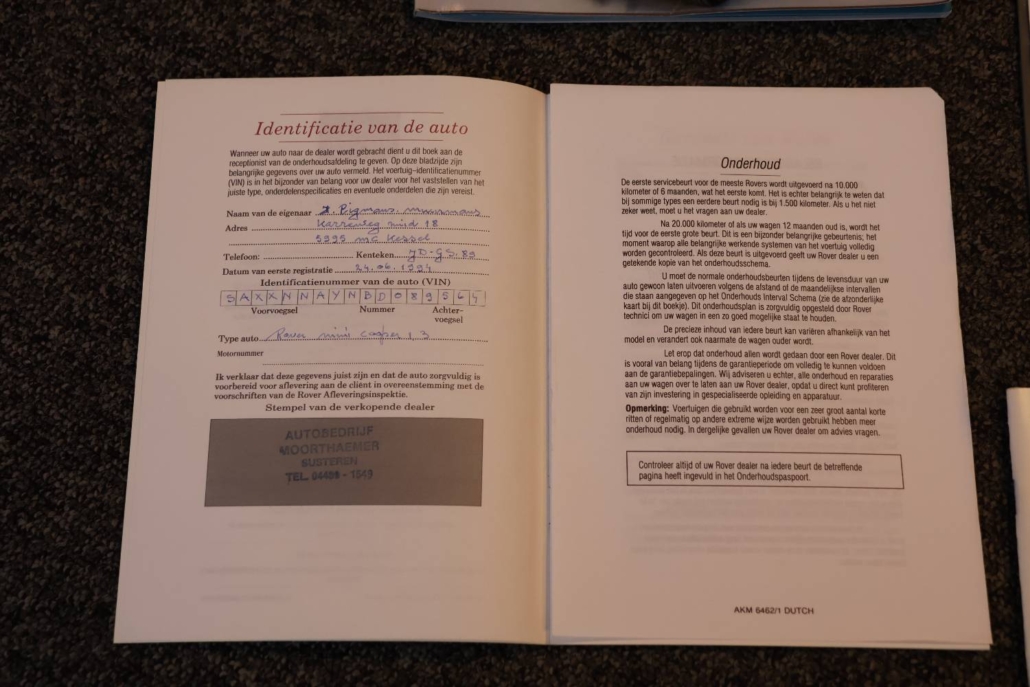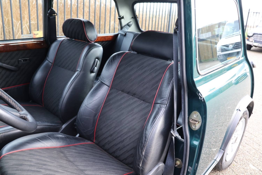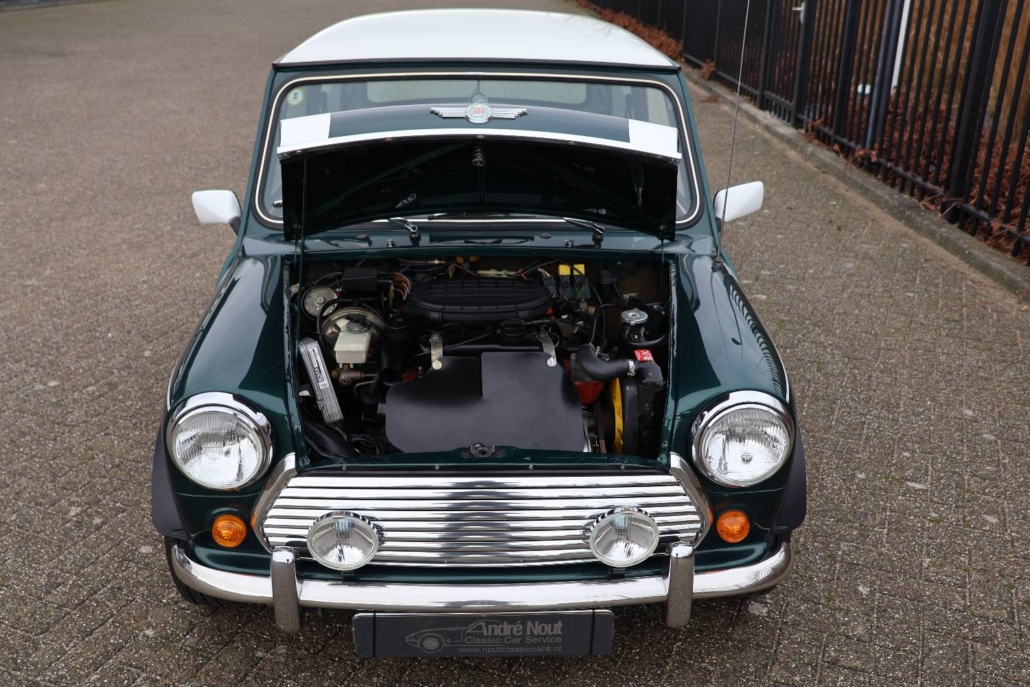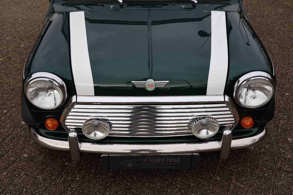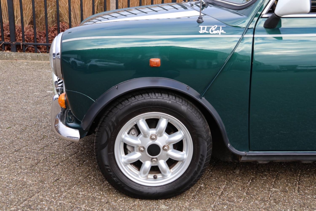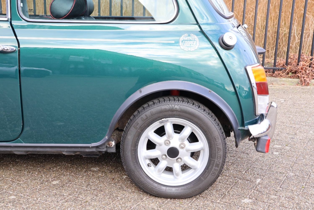 Deze mini cooper 1.3 in John Cooper uitvoering werd nieuw geleverd in Nederland door autobedrijf Moorthaemer in Susteren aan de eerste eigenaresse, geboren in 1938! Deze dame was een echte mini liefhebber en heeft de auto altijd met liefde behandelt en onderhouden. De originele aankoopfactuur uit 1994 is nog aanwezig, evenals het originele papieren kenteken en het complete set onderhouds en instructieboekjes. De mini is altijd binnen gestald en er is nooit in gerookt, de staat waarin deze vandaag de dag in verkeert is ronduit prachtig te noemen. De auto is in 2010 door een officieel restauratiebedrijf onder handen genomen. Plaatwerk zoals spatborden, dorpels, deurpanelen, hoekpanelen etc. zijn vervangen of gerestaureerd. Dit zijn de bekende zwakke punten bij de mini. Een fotoreportage van deze werkzaamheden is aanwezig in de vorm van een mooi boekwerk. Na de restauratie is de auto weinig gebruikt maar wel altijd jaarlijks gekeurd en onderhouden. De originele sleutels zijn allemaal aanwezig en ook heeft de cooper een tectyl behandeling gekregen.