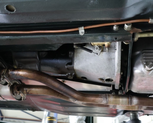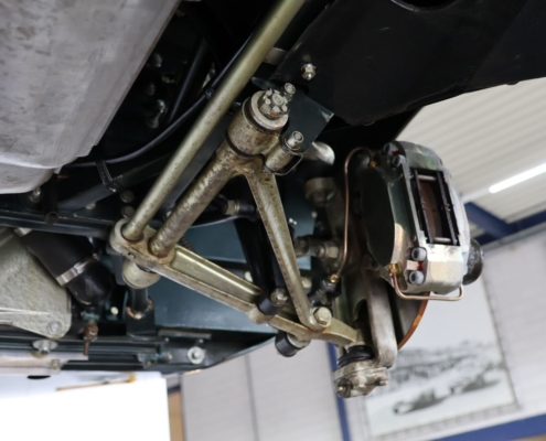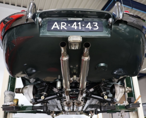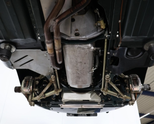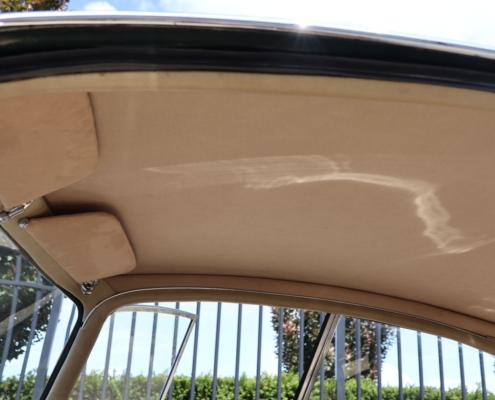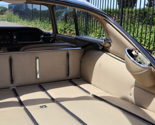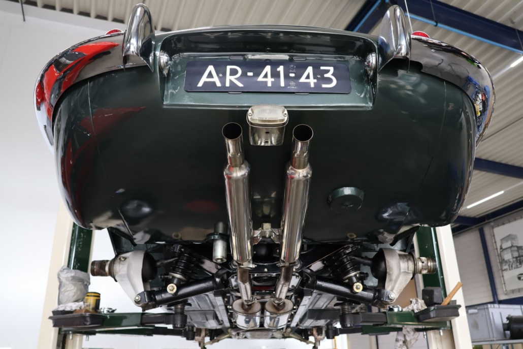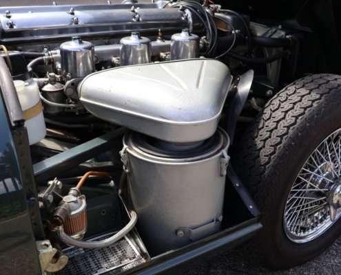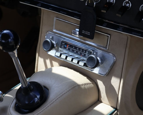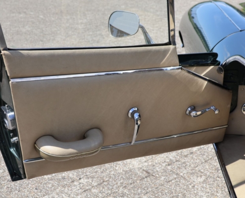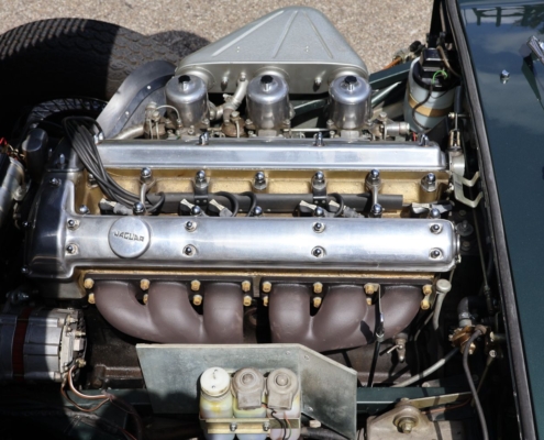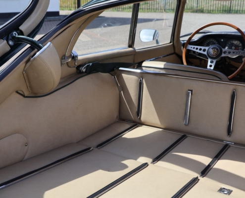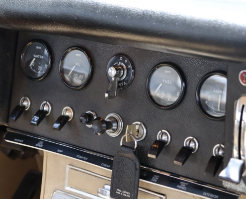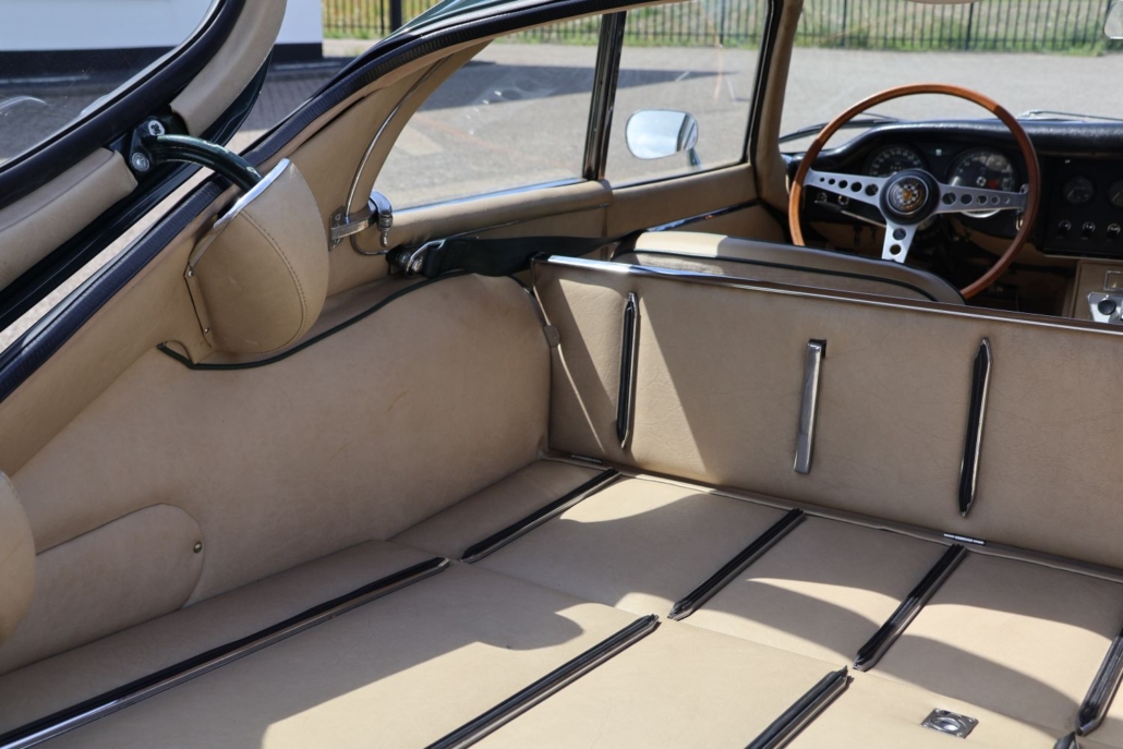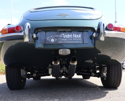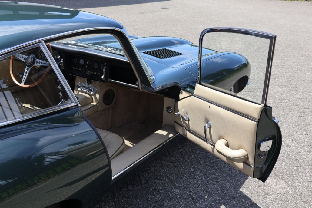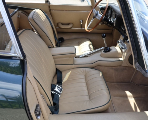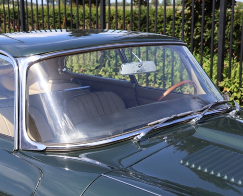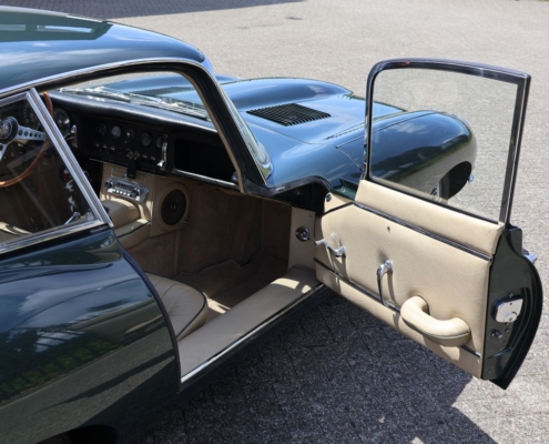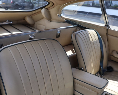 Wat deze auto extra bijzonder maakt, is de originele kleurencombinatie: Opalescent Dark Green met beige lederen interieur, fraai afgewerkt met groene bies. Een zeldzame en uiterst stijlvolle configuratie, zoals deze in 1966 af-fabriek werd geleverd. De lakwerk toont zich vandaag de dag nog steeds diep glanzend, het interieur ademt Britse klasse.