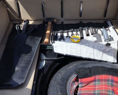 Mooi detail is dat de originele krik, het complete gereedschapset, en de map met het instructieboekje bij de auto zit.
