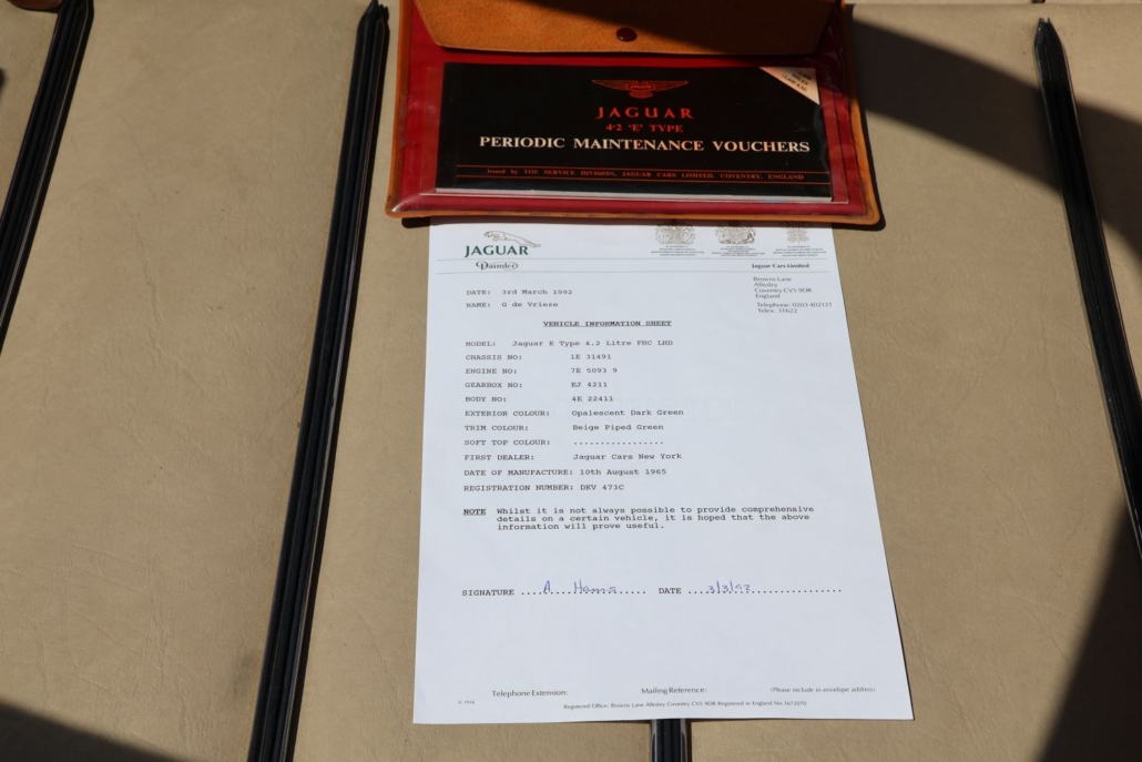 Nieuw geleverd in de Verenigde Staten en al ruim 30 jaar in het bezit van dezelfde toegewijde eigenaar. In het verleden is de auto grondig gerestaureerd, waarbij het originele karakter en de authentieke specificaties volledig zijn gerespecteerd. De E-Type verkeert nog altijd in een bijzonder verzorgde staat en is klaar voor een volgende liefhebber.
