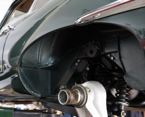 De 4.2 liter zescilinder in lijn beschikt over het originele, matching-numbers motorblok. In het verleden werd de cilinderkop vervangen — een veelvoorkomend en technisch verklaarbaar feit bij dit type motor. De auto rijdt en schakelt uitstekend, met het typerende E-Type karakter: krachtig, soepel en met die heerlijke mechanische beleving die alleen een klassieke Jaguar biedt.