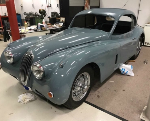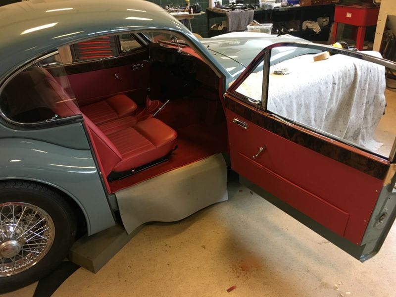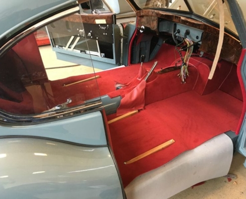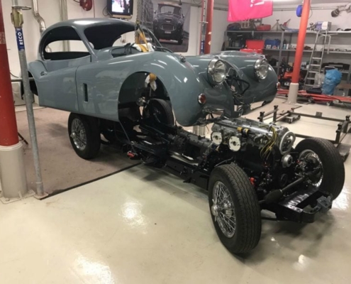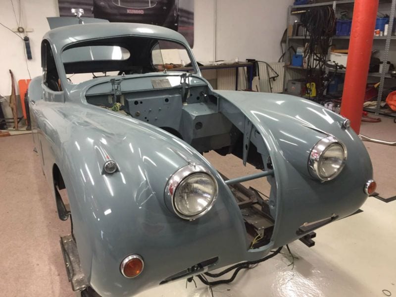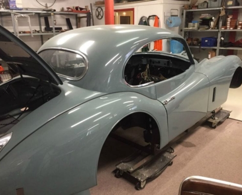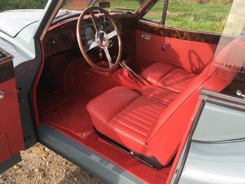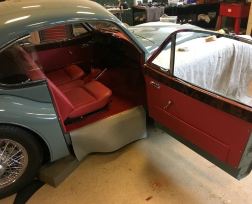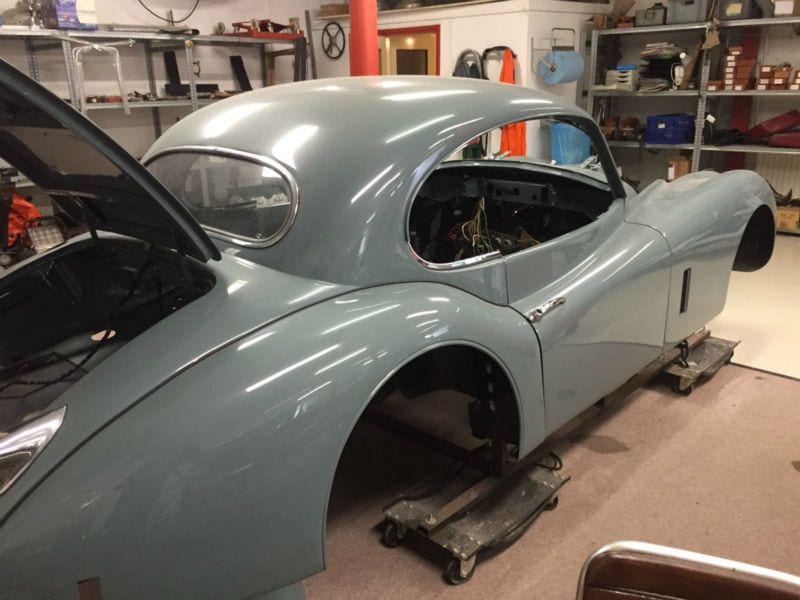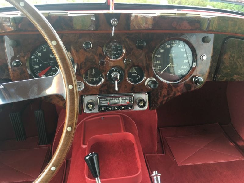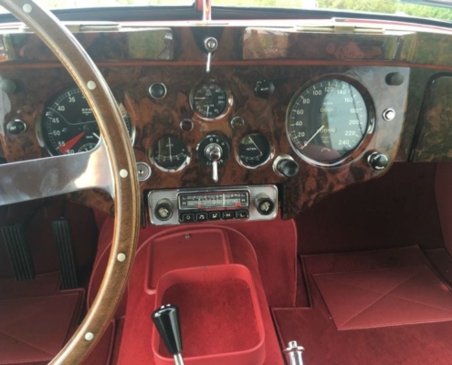 Volledig body-off gerestaureerde XK. Werkelijk niets is overgeslagen bij de restauratie van deze Jaguar. Chassis in nieuwstaat, gestraald en gepoedercoat en voorzien van alle denkbare upgrades, waaronder gescheiden remsysteem met rondom schijfremmen, Koni schokdempers, pu ophangbussen, aluminium brandstoftank en BF Goodrich remleidingen. De motor is volledig gereviseerd door Ruud Sikking, gereviseerde versnellingsbak met overdrive, 123 elektronische ontsteking, wisselstroom dynamo, spinn-off oliefilter, high torque starter etc. De body is volledig gerestaureerd en in topkwaliteit gespoten. Alle chroomdelen zijn opnieuw verchroomd, het houtwerk opnieuw gefineerd, etc. De auto is door ons verder afgebouwd en voorzien van een “tailormade” interieur en Hollands kenteken.