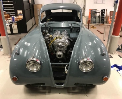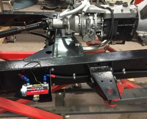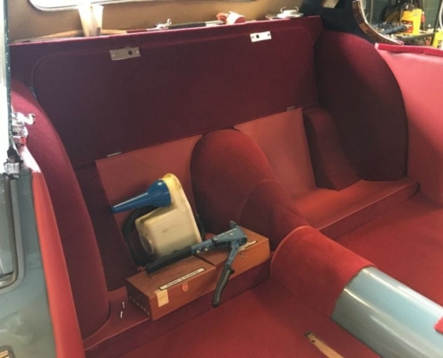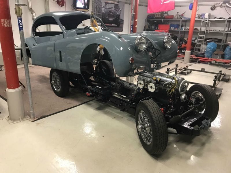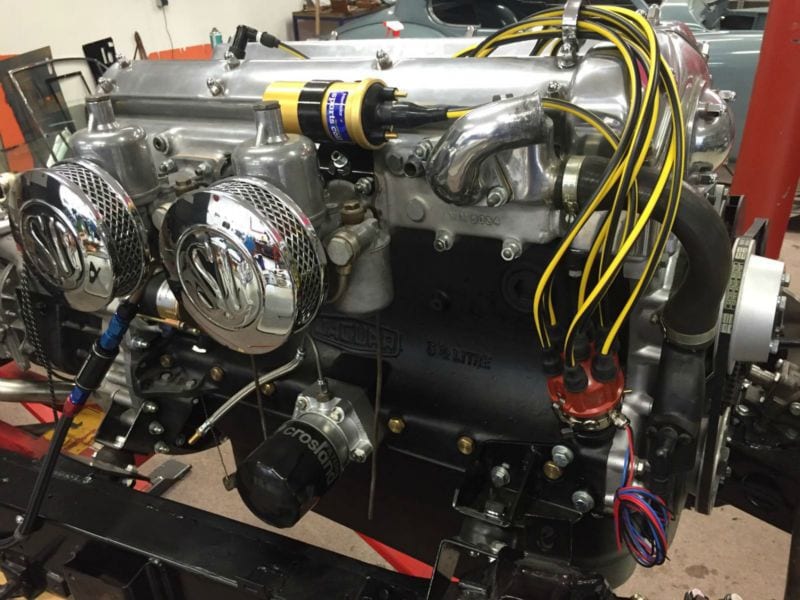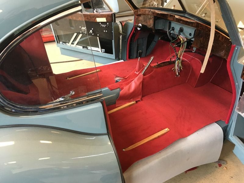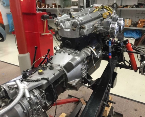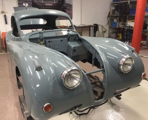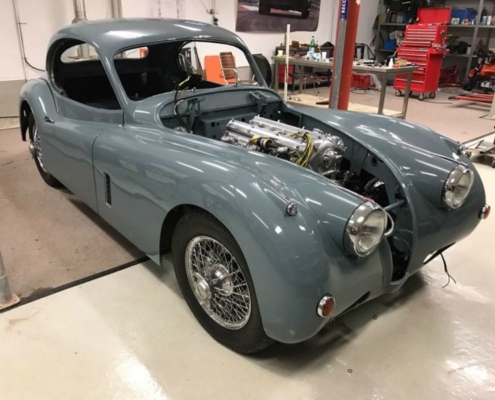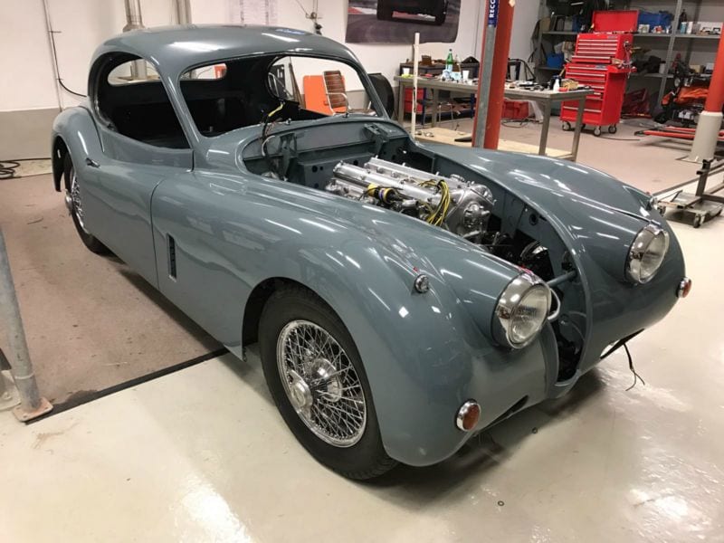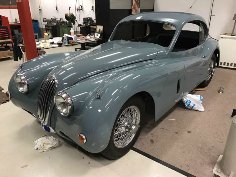Volledig body-off gerestaureerde XK. Werkelijk niets is overgeslagen bij de restauratie van deze Jaguar. Chassis in nieuwstaat, gestraald en gepoedercoat en voorzien van alle denkbare upgrades, waaronder gescheiden remsysteem met rondom schijfremmen, Koni schokdempers, pu ophangbussen, aluminium brandstoftank en BF Goodrich remleidingen. De motor is volledig gereviseerd door Ruud Sikking, gereviseerde versnellingsbak met overdrive, 123 elektronische ontsteking, wisselstroom dynamo, spinn-off oliefilter, high torque starter etc. De body is volledig gerestaureerd en in topkwaliteit gespoten. Alle chroomdelen zijn opnieuw verchroomd, het houtwerk opnieuw gefineerd, etc. De auto is door ons verder afgebouwd en voorzien van een “tailormade” interieur en Hollands kenteken.