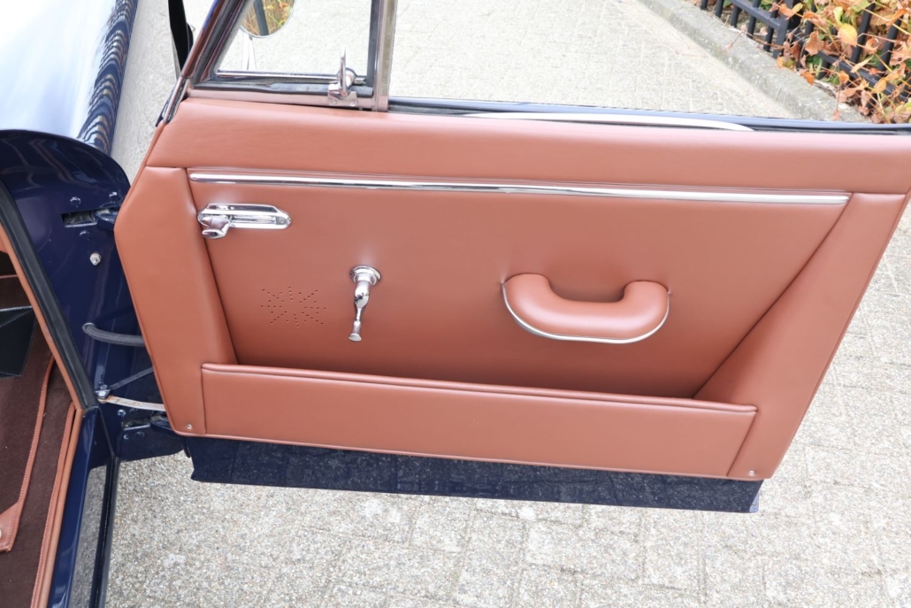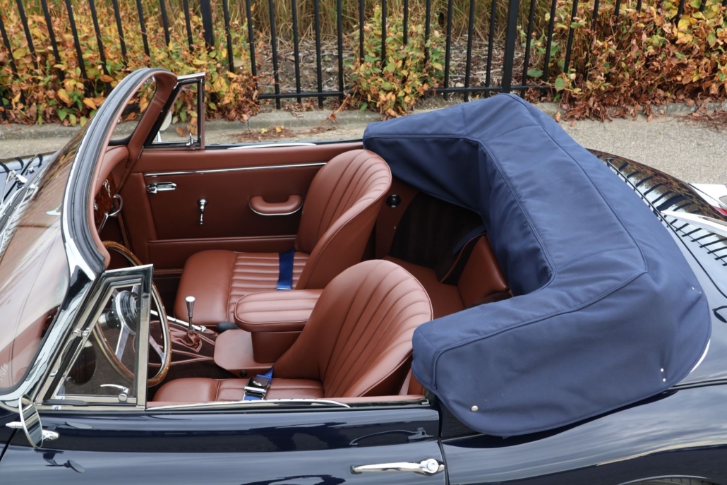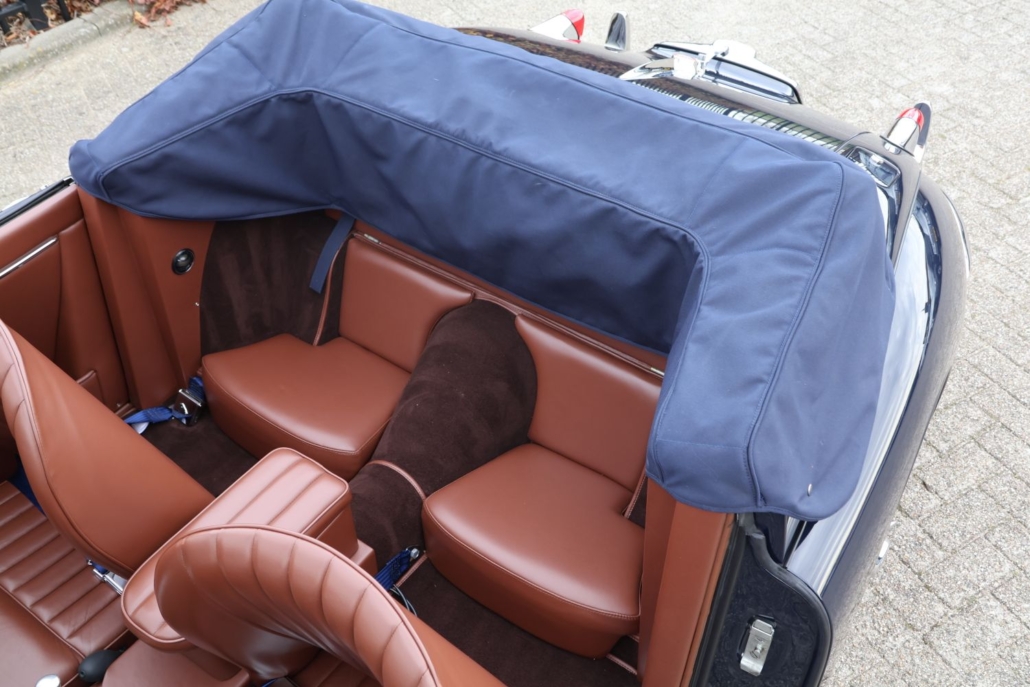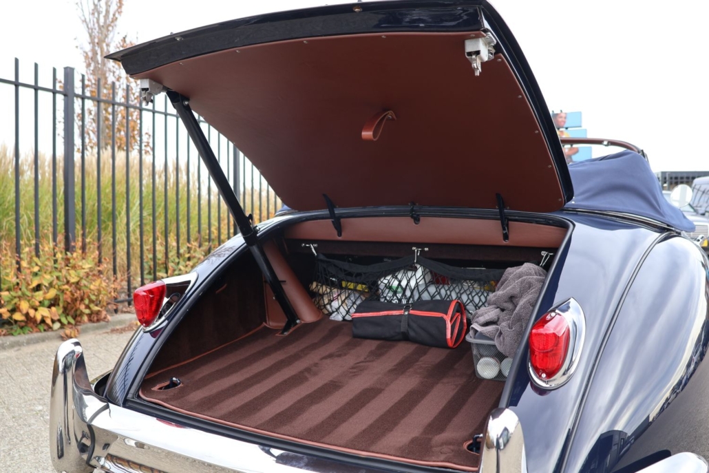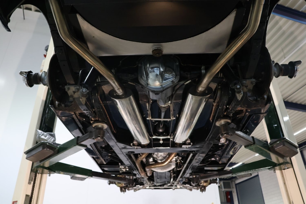 Een aantal jaar geleden kregen wij van een opdrachtgever de vraag of we voor hem zo’n auto wilden opzoeken en vervolgens naar zijn wensen in topstaat konden restaureren. Uiteraard hebben we deze opdracht met beide handen aangegrepen. In Duitsland werd een geschikte kandidaat gevonden en aangeschaft waarna met de restauratie werd begonnen. Vanaf een kaal chassis werd een perfecte aandrijflijn gerealiseerd voorzien van alle denkbare opties. Een getrag vijfversnellingsbak, zwaardere coopercraft remmen, en volledig RVS spaakwielen zijn maar een greep uit de lijst. Alles werd ook nog eens verzinkt, gestraald, gepoedercoat en tot in perfectie afgewerkt. Bij van Giersbergen motorrevisie werd een licht getunede motor gebouwd welke uiteraard ook werd voorzien van alle upgrades. Een 2 inch volledig RVS uitlaatsysteem van Classic Fabs UK zorgt vervolgens voor de mooist denkbare sound. Nadat de body door ons werd geplaatwerkt is deze bij Classic&exclusive autospuiterij compleet gespoten en geheel gepolijst. Nadat door ons de body en chassis weer compleet was opgebouwd werd deze aangeboden bij een van de beste bekleders in Nederland waar in overleg met de eigenaar een enorme lijst upgrades werd doorgevoerd in het met het beste leer beklede interieur. Wat dacht u van kuipstoelen, stoelverwarming, lendensteunen, wortelnoten dashboard, een state of the art audiosysteem, volledig gestoffeerde kofferruimte, opberg vak met usb aansluiting etc. Verdere opties welke wij hebben geïnstalleerd zijn oa elektrische stuurbekrachtiging, moto-lita houten stuurwiel, olietemperatuur meter, high torque startmotor, aluminium remvloeistof reservoirs, wisselstroom dynamo, elektrische koelfan etc.
