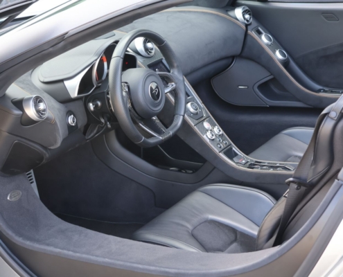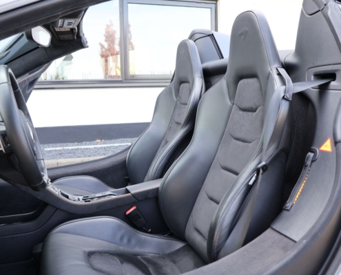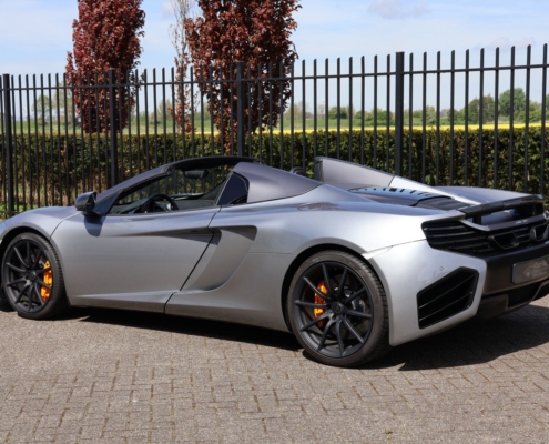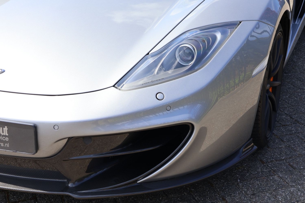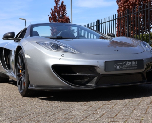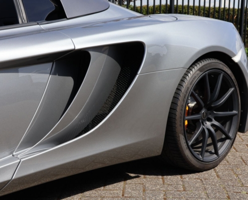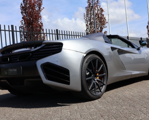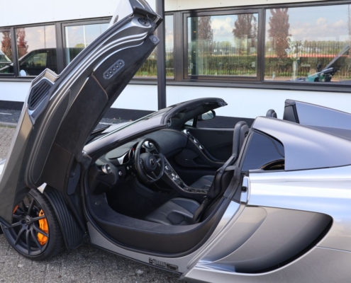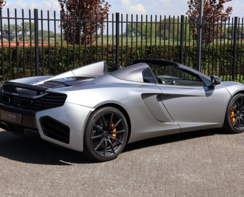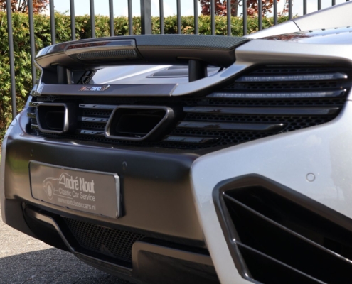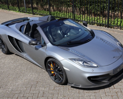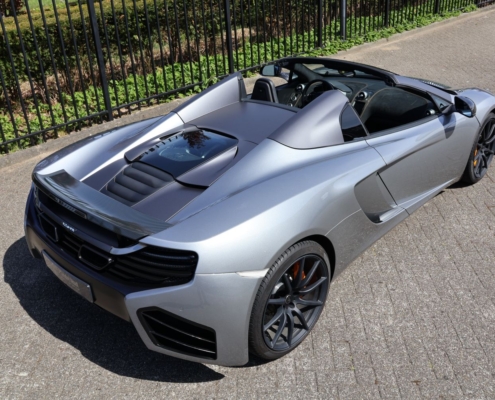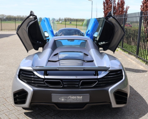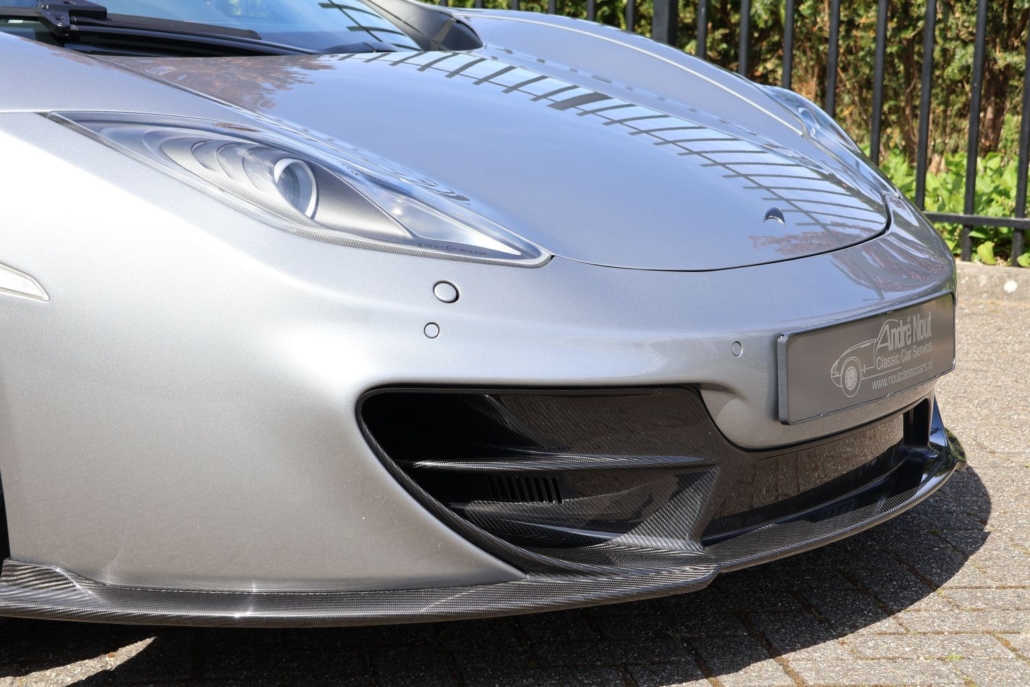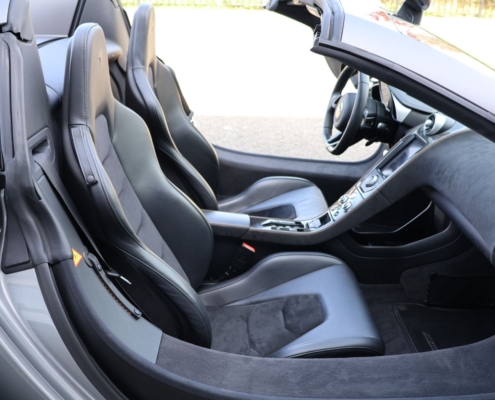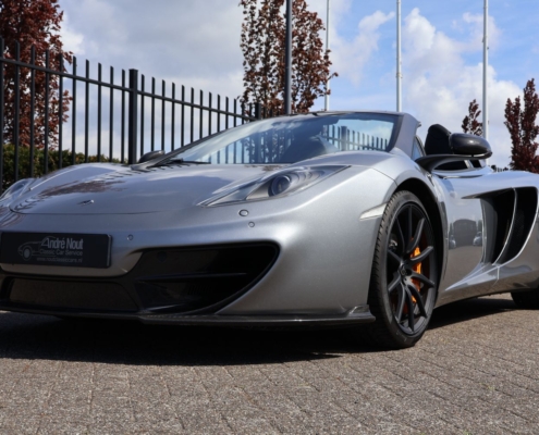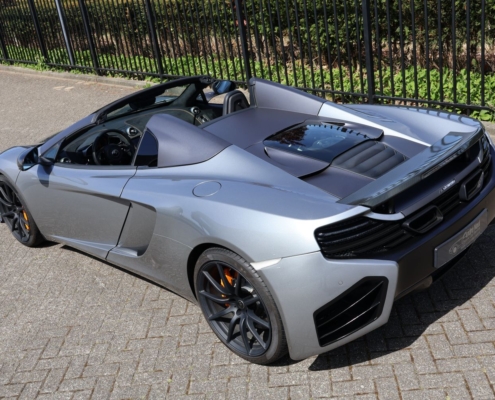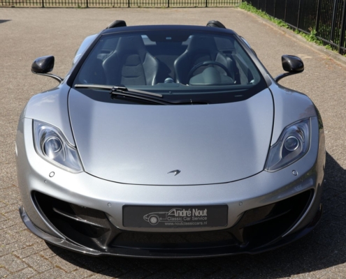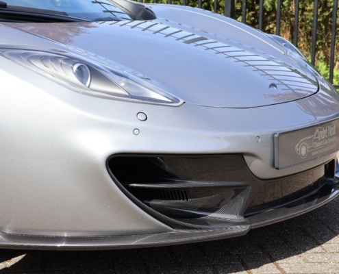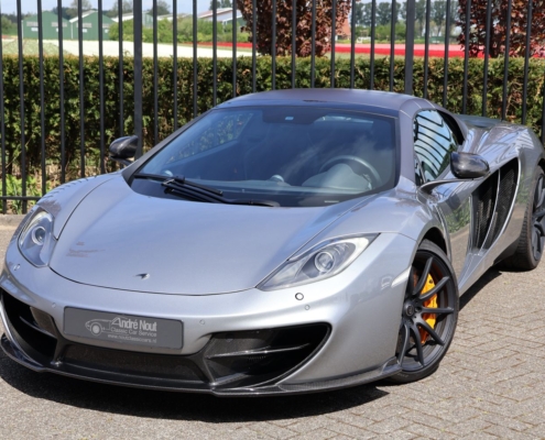 Wij kennen deze MP4 al een tijdje. We kochten hem rechtstreeks aan van de eerste eigenaresse, de Belgische tennis speelster Yanina Wickmayer die hem nieuw kocht in Monaco. De auto is destijds bij ons voorzien van een Nederlands kenteken en nu mogen we hem opnieuw aanbieden. Wat direct opvalt is de bijzondere uitstraling en kleurstelling. De spider is door de MSO afdeling van McLaren voorzien van een flink aantal opties waardoor deze zich onderscheidt van de andere auto’s. Andere bumpers, wielen, sportuitlaat, keramische remmen en het nodige carbon werden gekozen en eveneens minder zichtbare opties zoals een nose-lift systeem op de vooras, en een uitgebreid audio pakket. Daarnaast is de auto uiteraard ook voorzien van alle andere opties die je bij een supercar van dit kaliber mag verwachten.