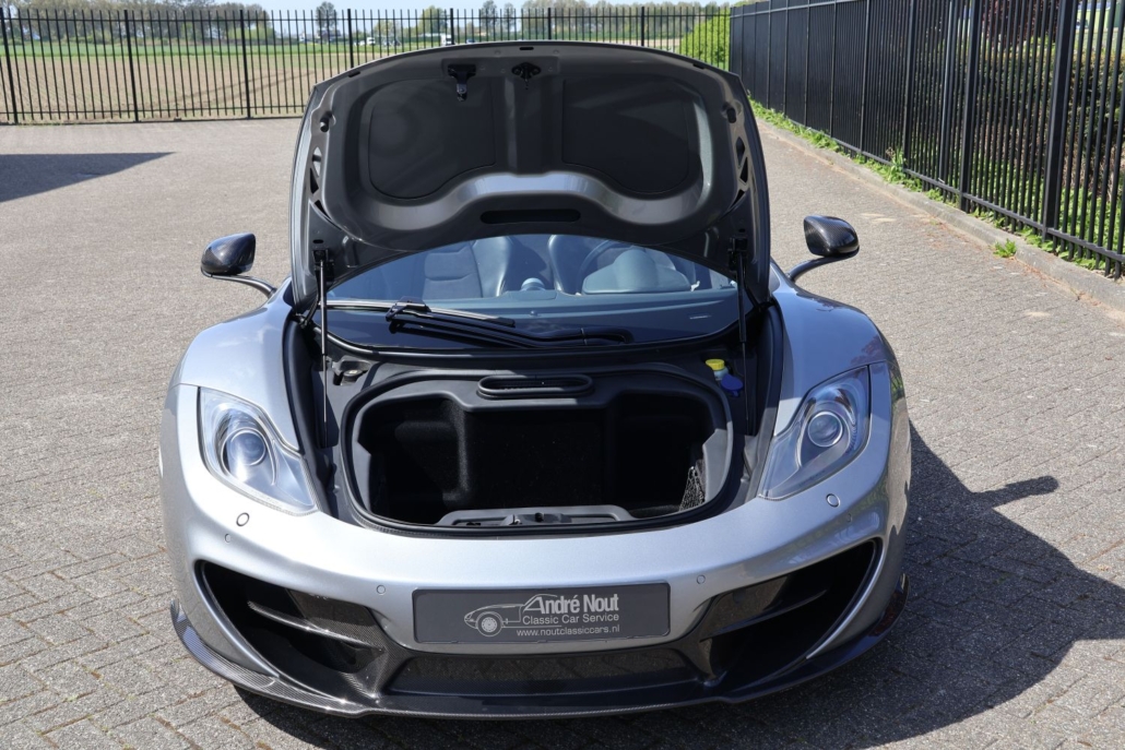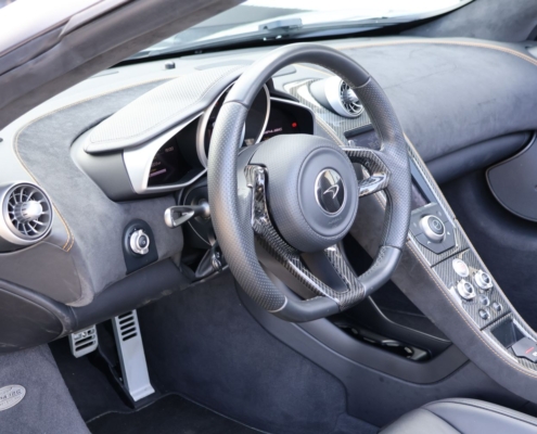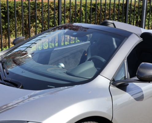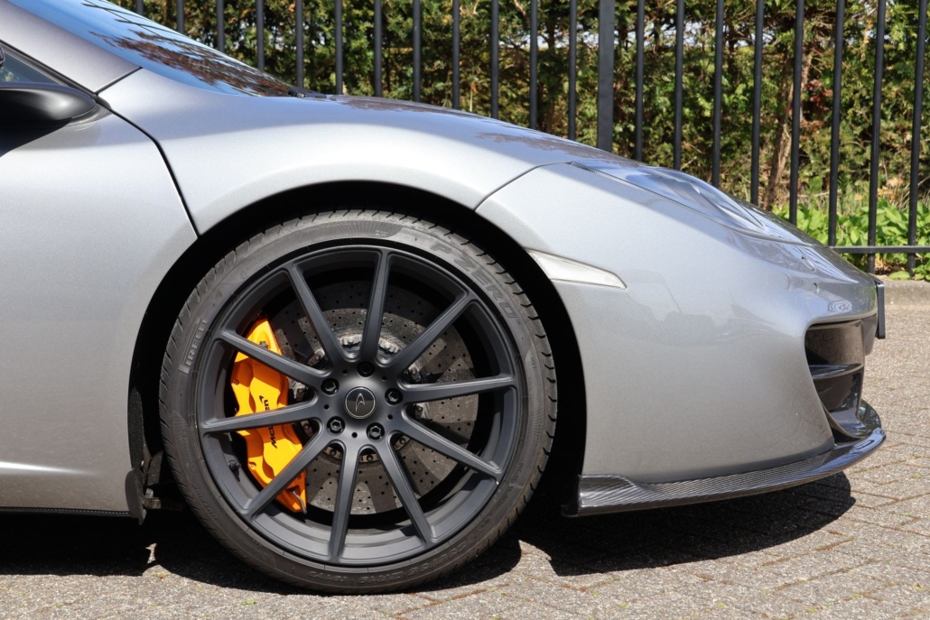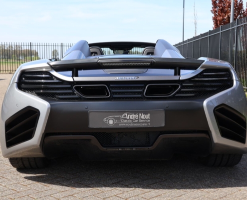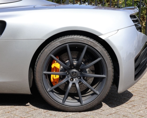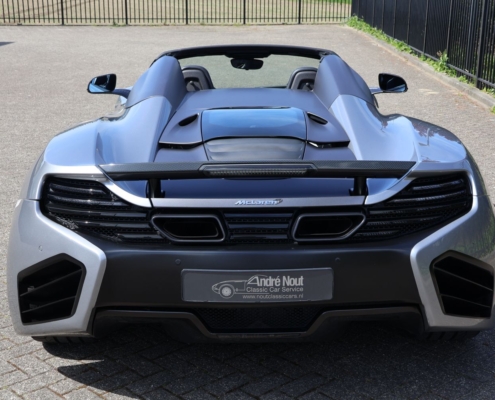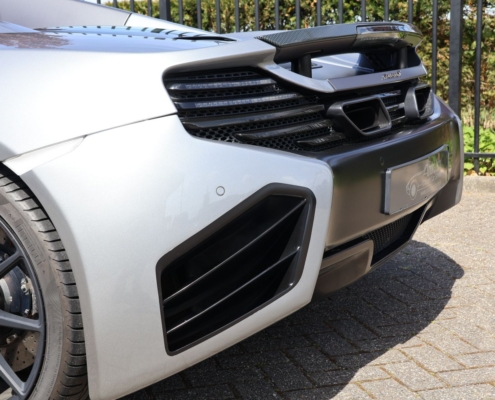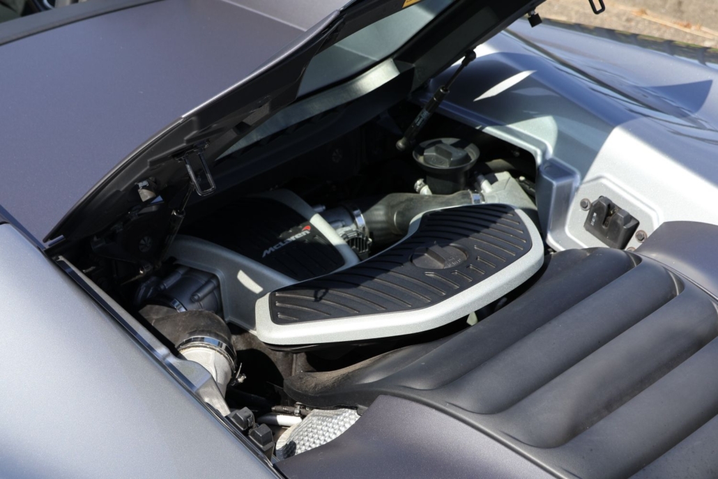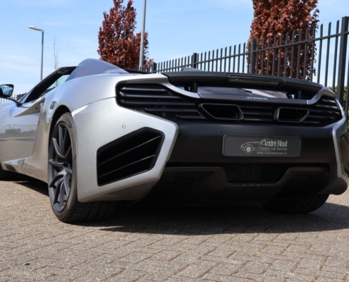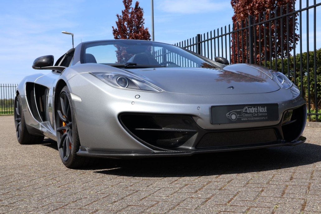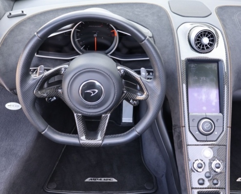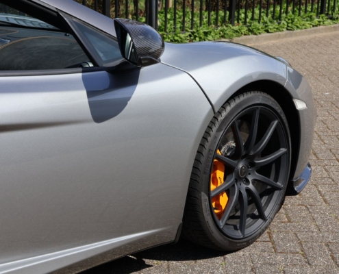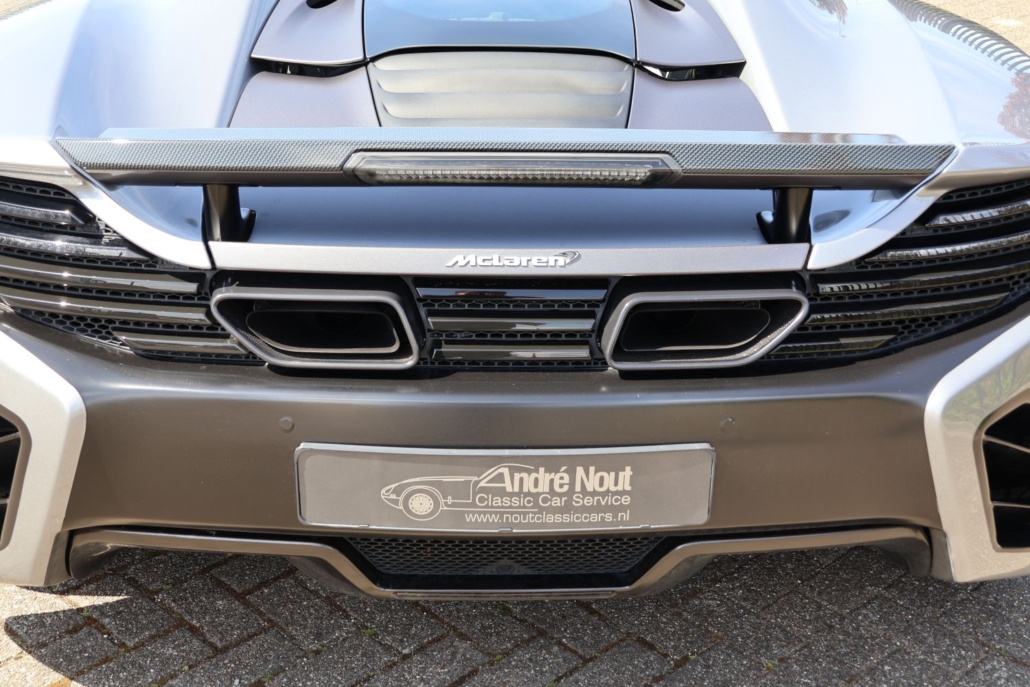 Wij kennen deze MP4 al een tijdje. We kochten hem rechtstreeks aan van de eerste eigenaresse, de Belgische tennis speelster Yanina Wickmayer die hem nieuw kocht in Monaco. De auto is destijds bij ons voorzien van een Nederlands kenteken en nu mogen we hem opnieuw aanbieden. Wat direct opvalt is de bijzondere uitstraling en kleurstelling. De spider is door de MSO afdeling van McLaren voorzien van een flink aantal opties waardoor deze zich onderscheidt van de andere auto’s. Andere bumpers, wielen, sportuitlaat, keramische remmen en het nodige carbon werden gekozen en eveneens minder zichtbare opties zoals een nose-lift systeem op de vooras, en een uitgebreid audio pakket. Daarnaast is de auto uiteraard ook voorzien van alle andere opties die je bij een supercar van dit kaliber mag verwachten.