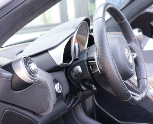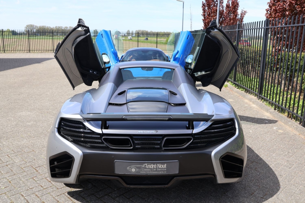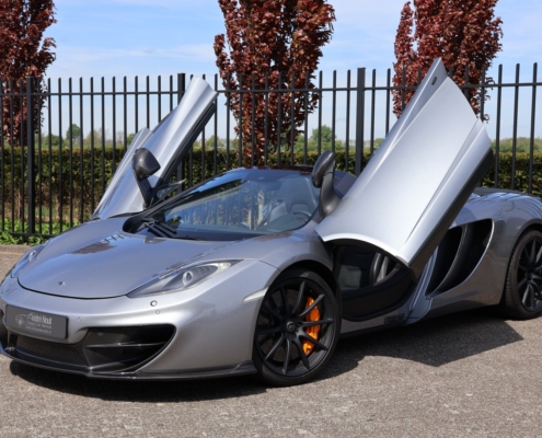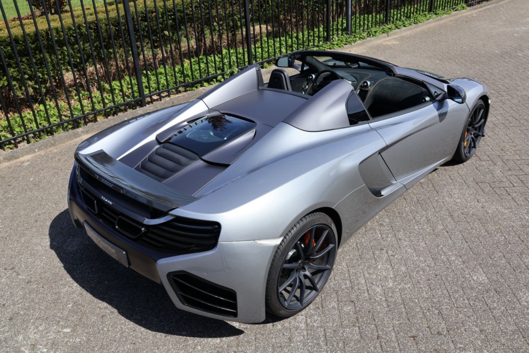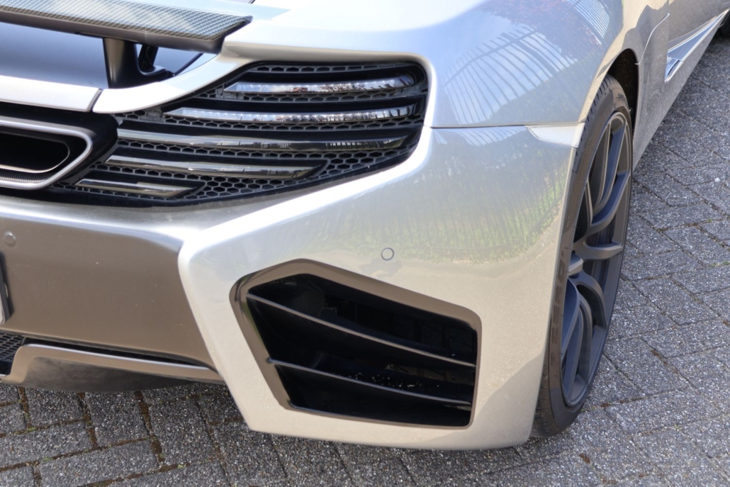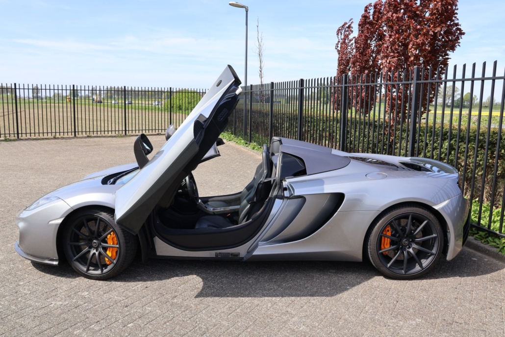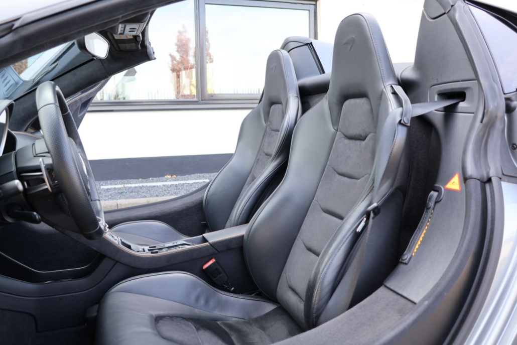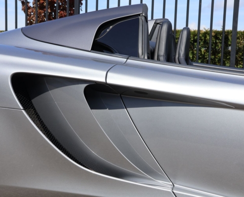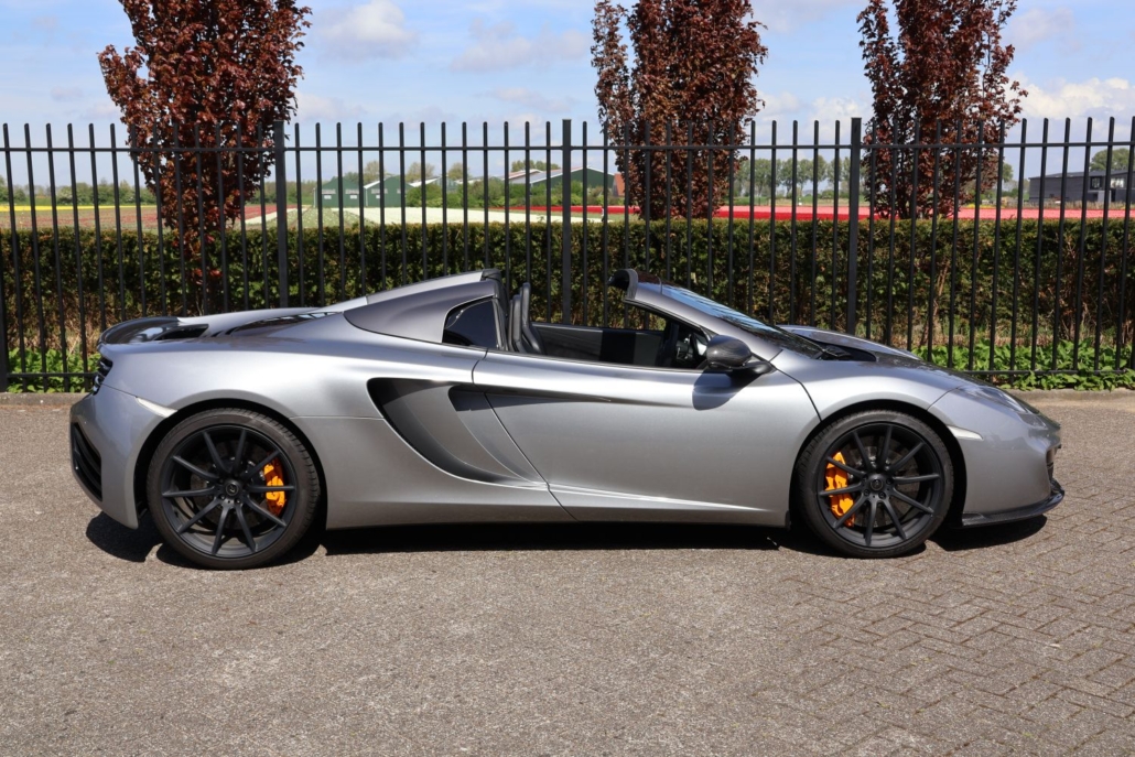 Wij kennen deze MP4 al een tijdje. We kochten hem rechtstreeks aan van de eerste eigenaresse, de Belgische tennis speelster Yanina Wickmayer die hem nieuw kocht in Monaco. De auto is destijds bij ons voorzien van een Nederlands kenteken en nu mogen we hem opnieuw aanbieden. Wat direct opvalt is de bijzondere uitstraling en kleurstelling. De spider is door de MSO afdeling van McLaren voorzien van een flink aantal opties waardoor deze zich onderscheidt van de andere auto’s. Andere bumpers, wielen, sportuitlaat, keramische remmen en het nodige carbon werden gekozen en eveneens minder zichtbare opties zoals een nose-lift systeem op de vooras, en een uitgebreid audio pakket. Daarnaast is de auto uiteraard ook voorzien van alle andere opties die je bij een supercar van dit kaliber mag verwachten.