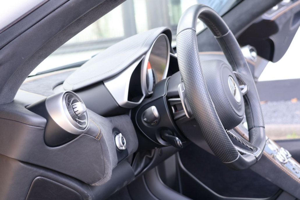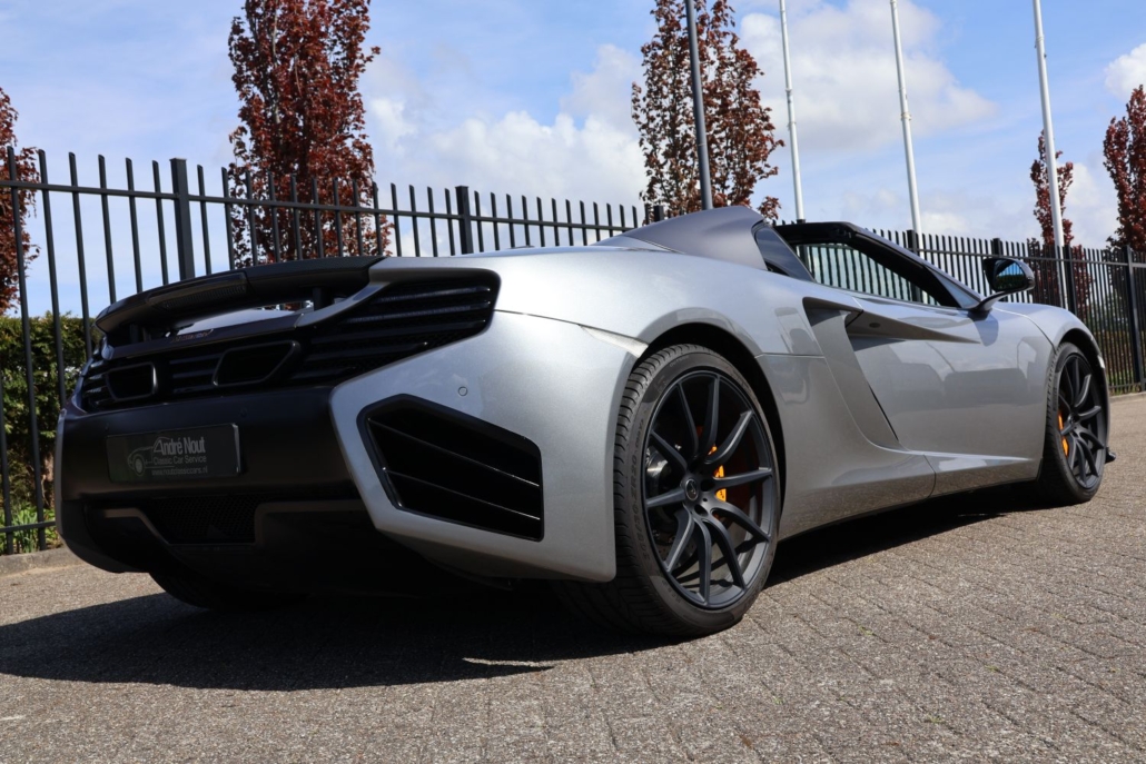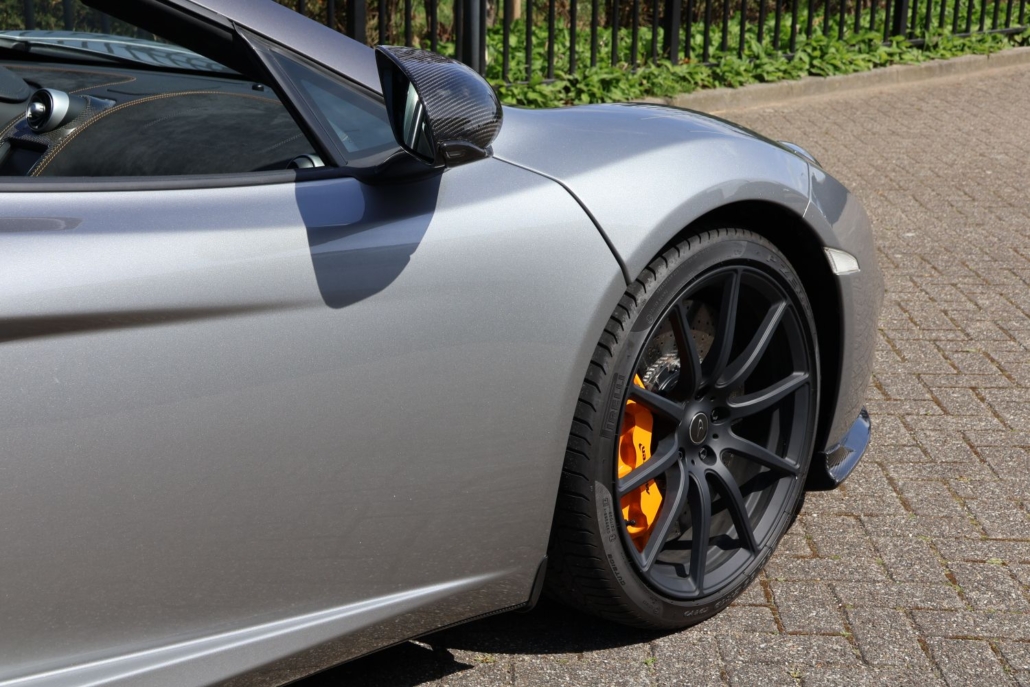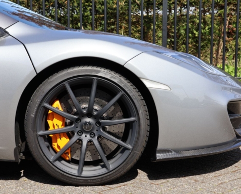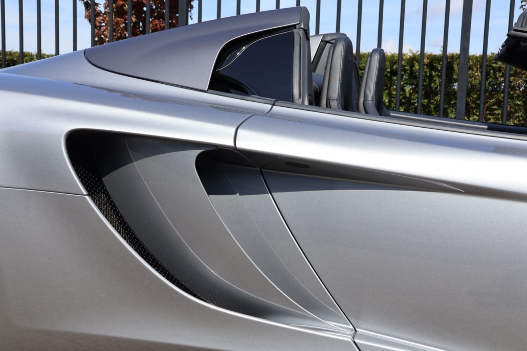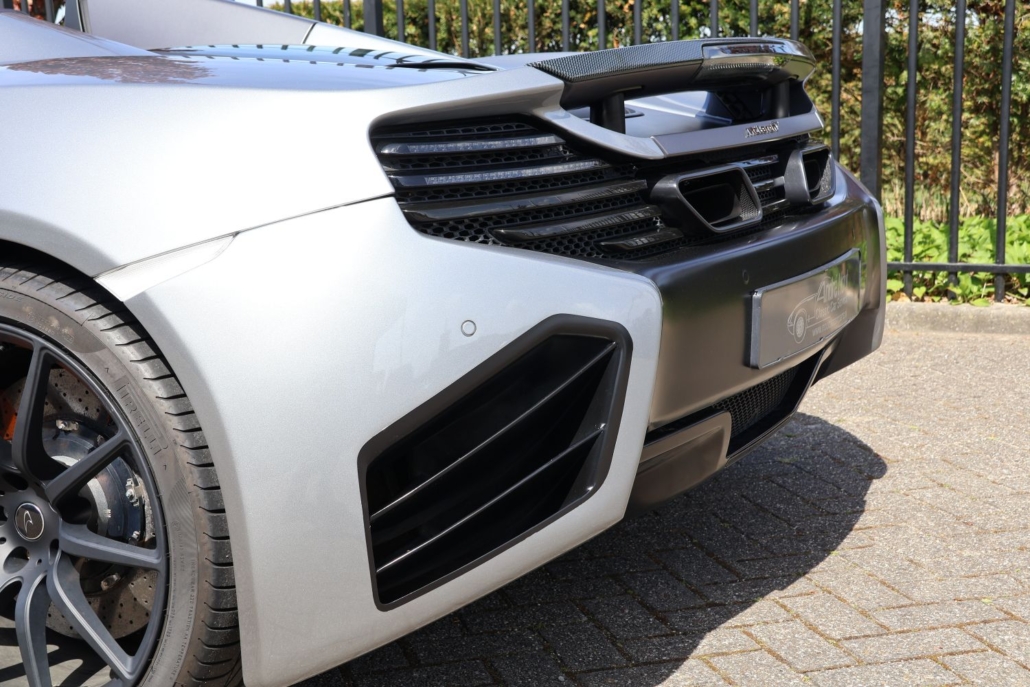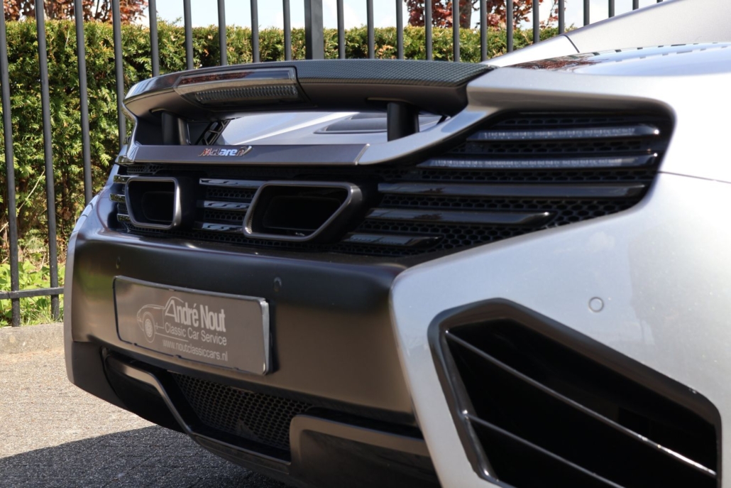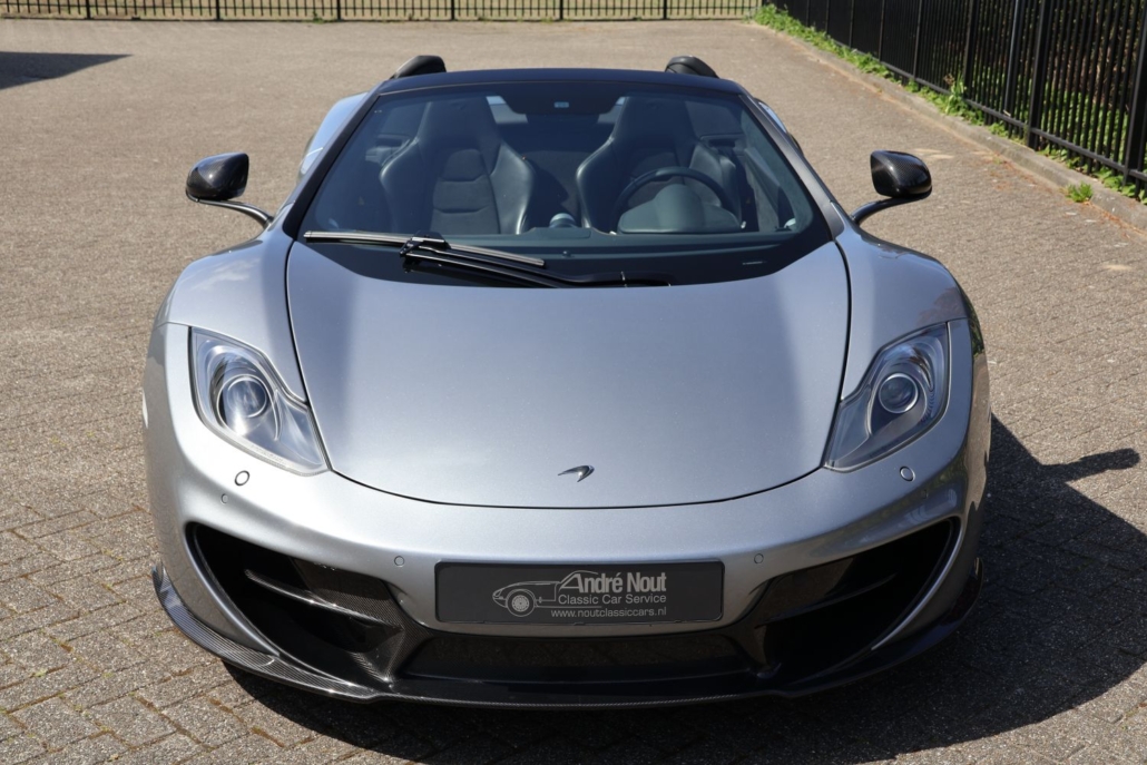 Wij kennen deze MP4 al een tijdje. We kochten hem rechtstreeks aan van de eerste eigenaresse, de Belgische tennis speelster Yanina Wickmayer die hem nieuw kocht in Monaco. De auto is destijds bij ons voorzien van een Nederlands kenteken en nu mogen we hem opnieuw aanbieden. Wat direct opvalt is de bijzondere uitstraling en kleurstelling. De spider is door de MSO afdeling van McLaren voorzien van een flink aantal opties waardoor deze zich onderscheidt van de andere auto’s. Andere bumpers, wielen, sportuitlaat, keramische remmen en het nodige carbon werden gekozen en eveneens minder zichtbare opties zoals een nose-lift systeem op de vooras, en een uitgebreid audio pakket. Daarnaast is de auto uiteraard ook voorzien van alle andere opties die je bij een supercar van dit kaliber mag verwachten.