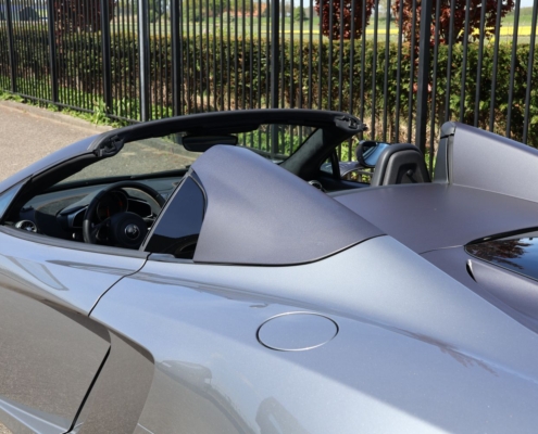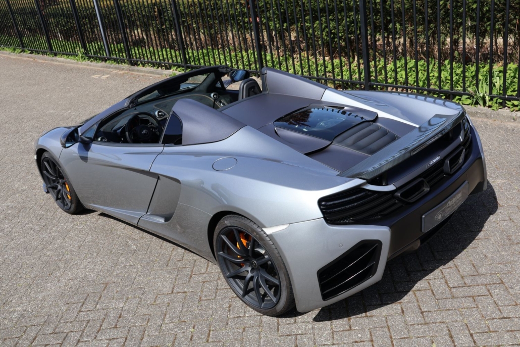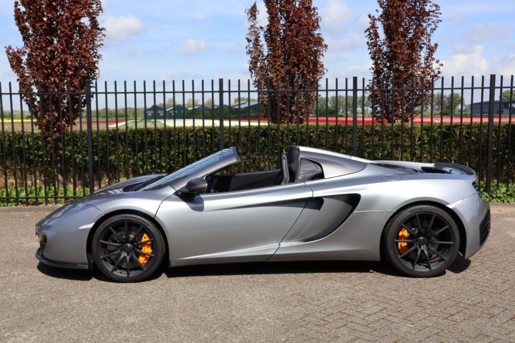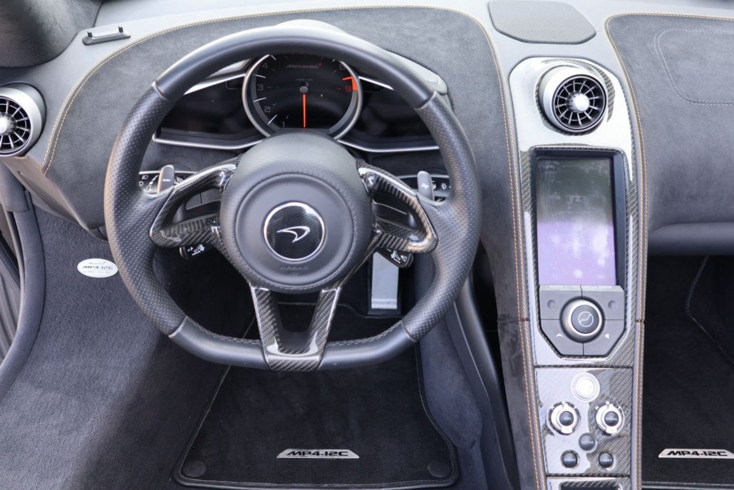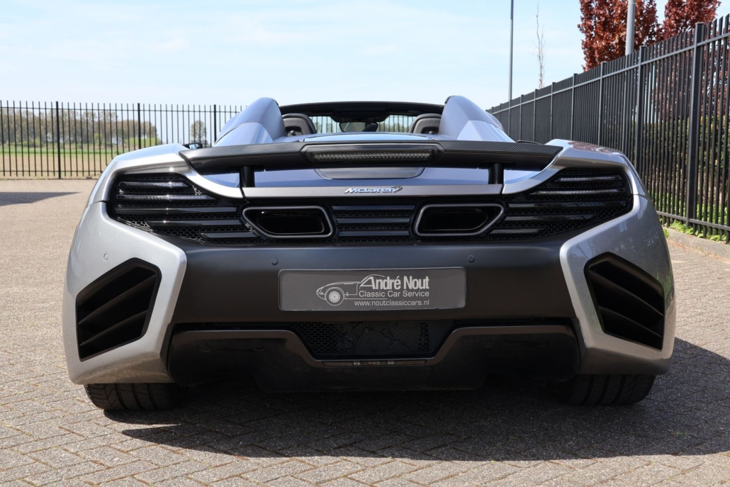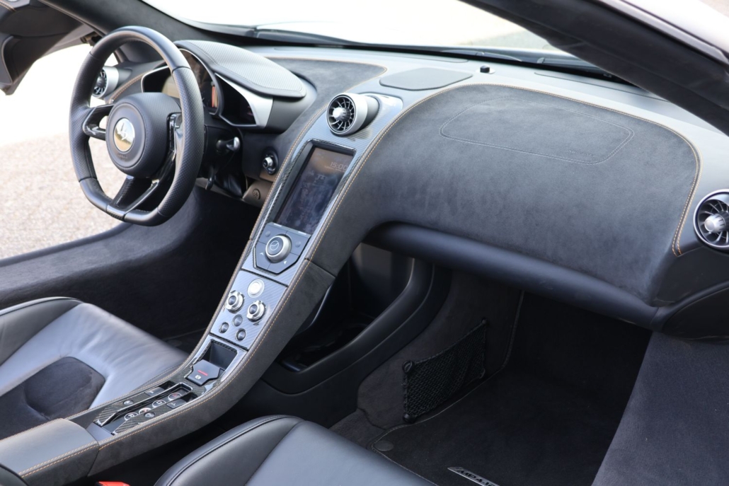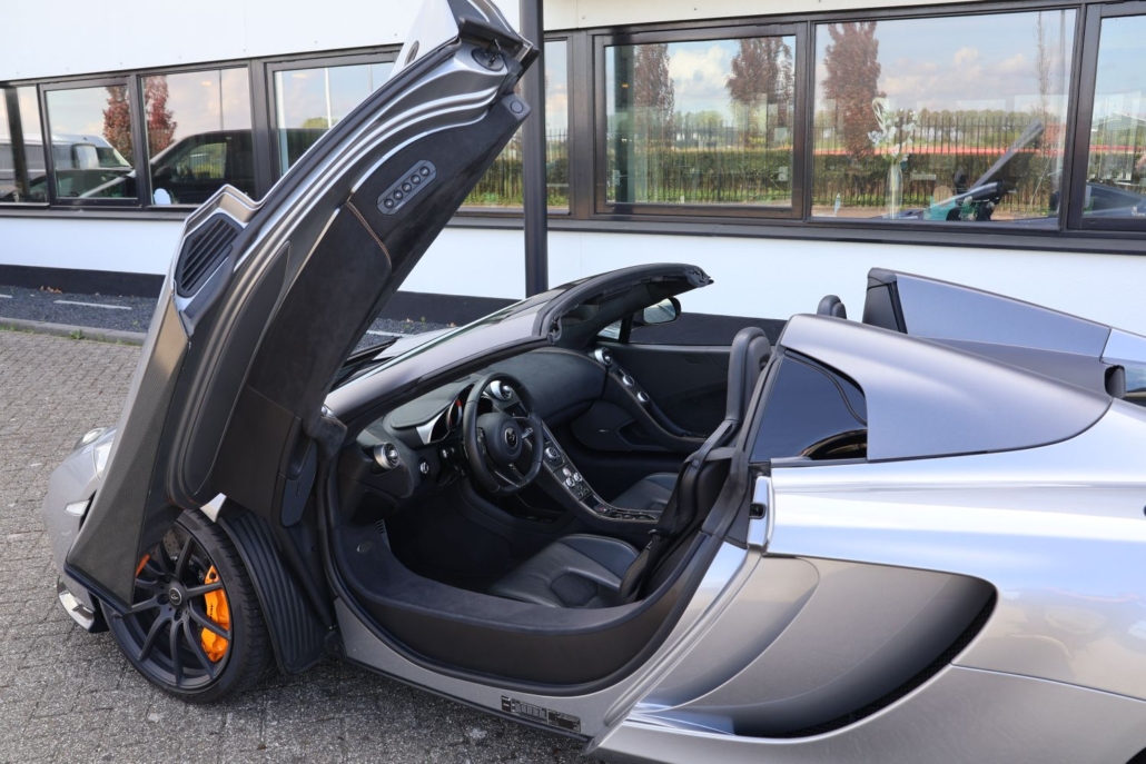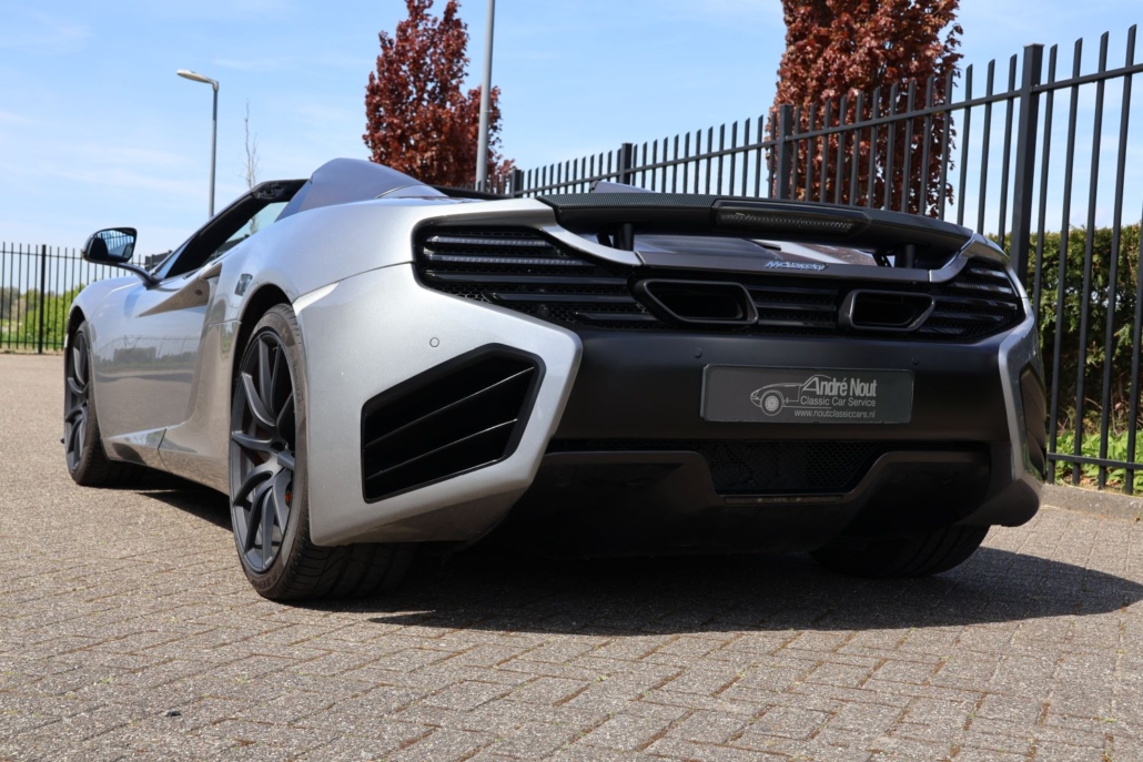 Wij kennen deze MP4 al een tijdje. We kochten hem rechtstreeks aan van de eerste eigenaresse, de Belgische tennis speelster Yanina Wickmayer die hem nieuw kocht in Monaco. De auto is destijds bij ons voorzien van een Nederlands kenteken en nu mogen we hem opnieuw aanbieden. Wat direct opvalt is de bijzondere uitstraling en kleurstelling. De spider is door de MSO afdeling van McLaren voorzien van een flink aantal opties waardoor deze zich onderscheidt van de andere auto’s. Andere bumpers, wielen, sportuitlaat, keramische remmen en het nodige carbon werden gekozen en eveneens minder zichtbare opties zoals een nose-lift systeem op de vooras, en een uitgebreid audio pakket. Daarnaast is de auto uiteraard ook voorzien van alle andere opties die je bij een supercar van dit kaliber mag verwachten.