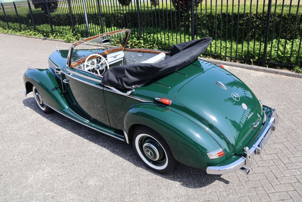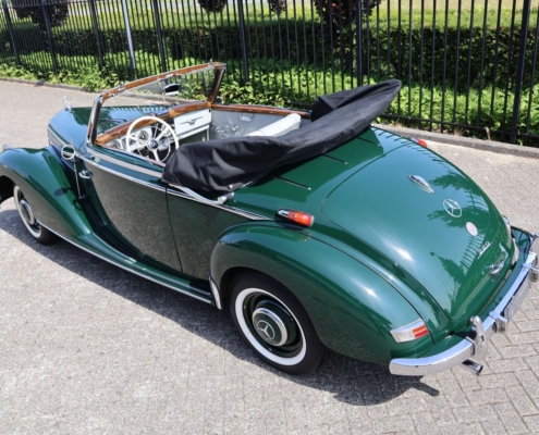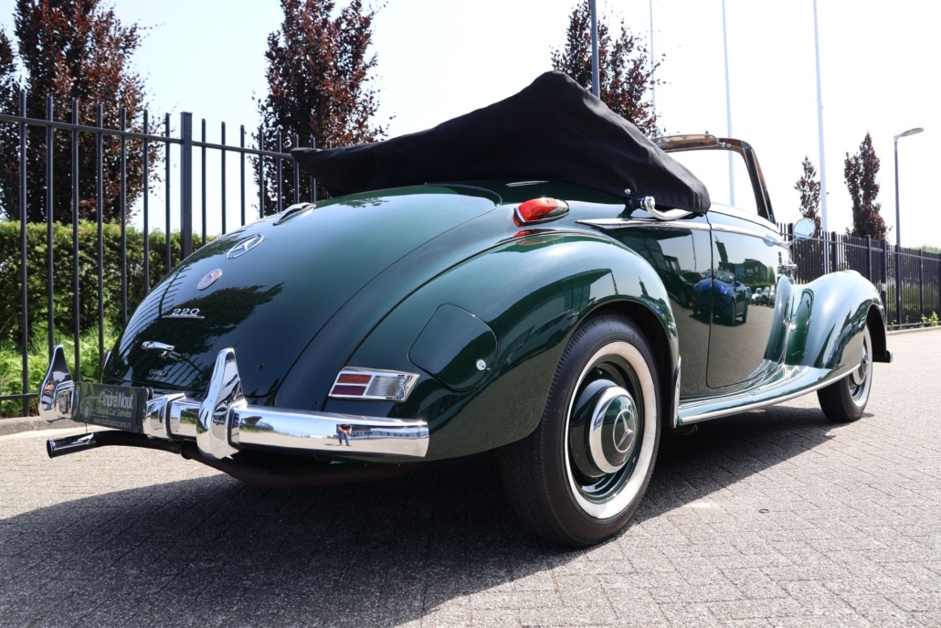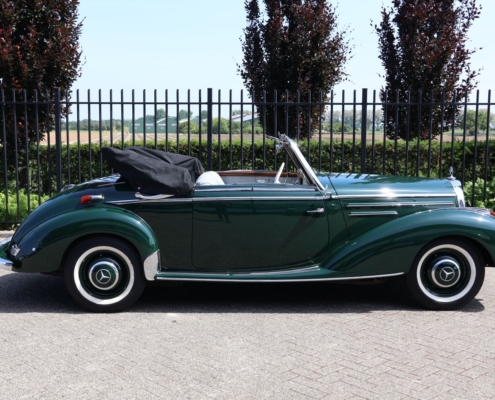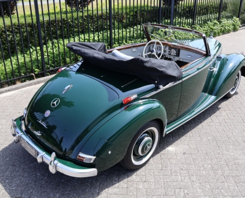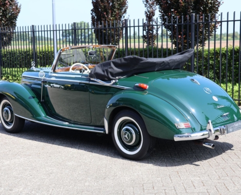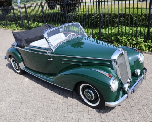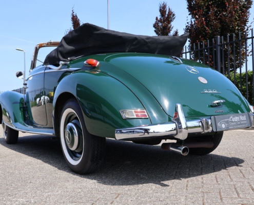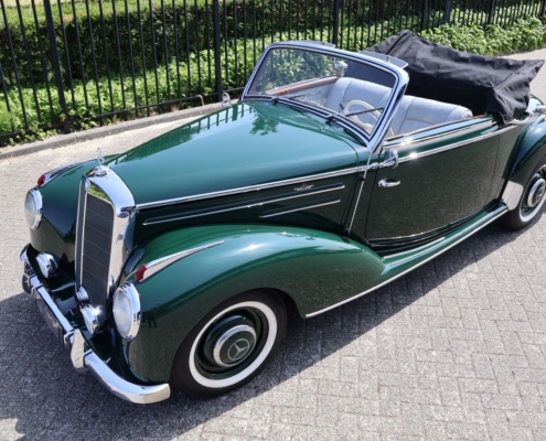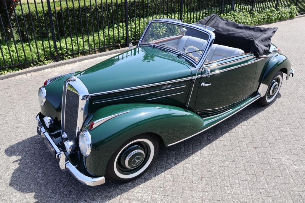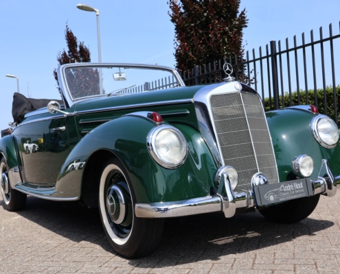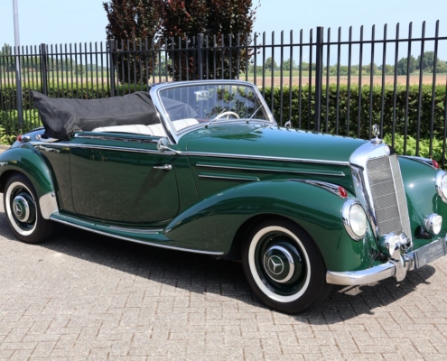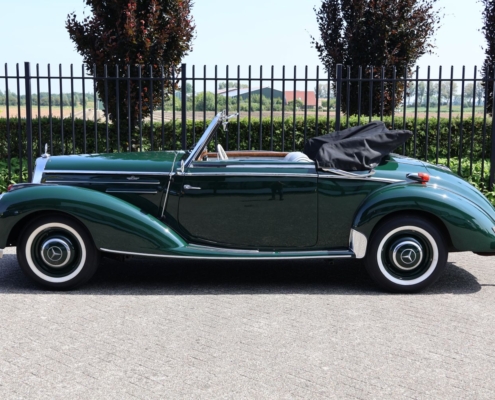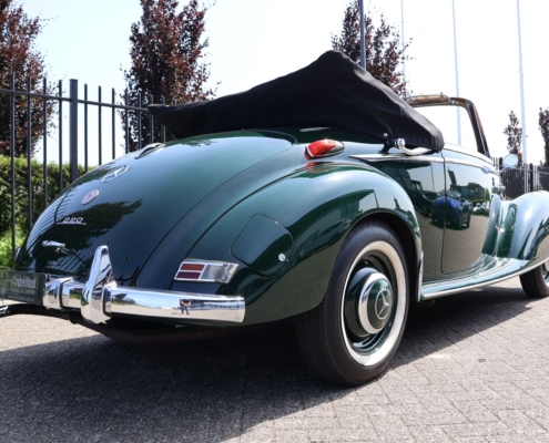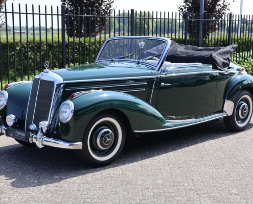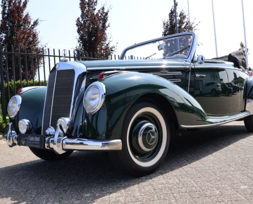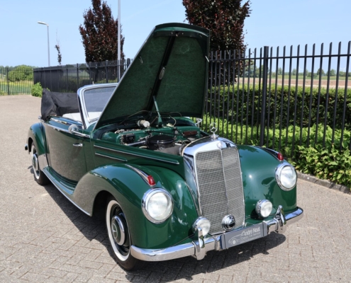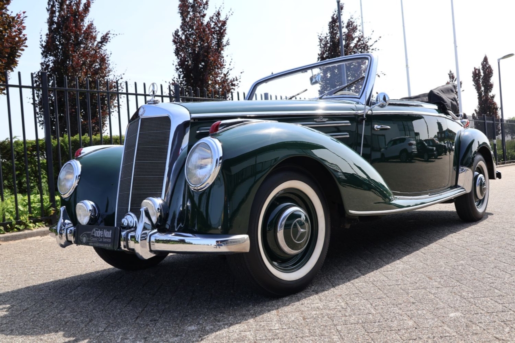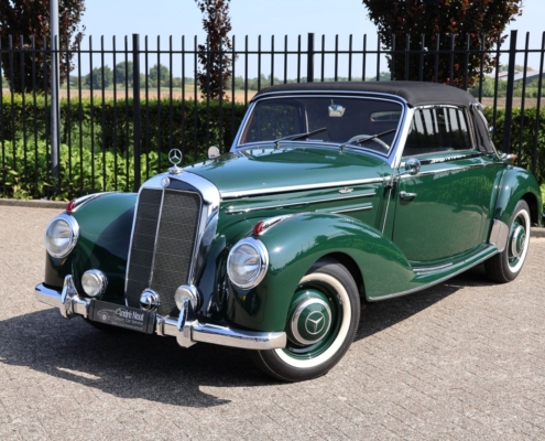 Deze Mercedes 220 A cabriolet is met slechts 1278 gebouwde exemplaren gerust een exclusieve en zeldzame verschijning te noemen. Afkomstig uit 1952 en behorend tot de zogenaamde W187 serie welke is gebouwd van 1951 tot 1955. Uitgerust met een 2.2 liter zescilinder motor, gekoppeld aan een handgeschakelde vierversnellingsbak en een zeer elegant koetswerk spreekt de auto een grote schare Mercedes en andere klassieker liefhebbers aan.