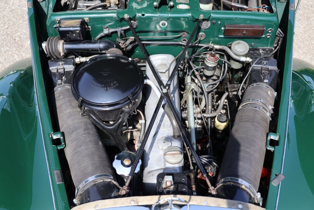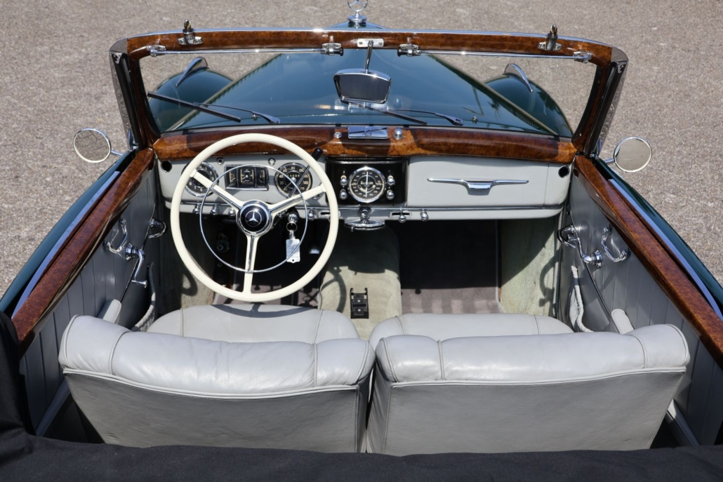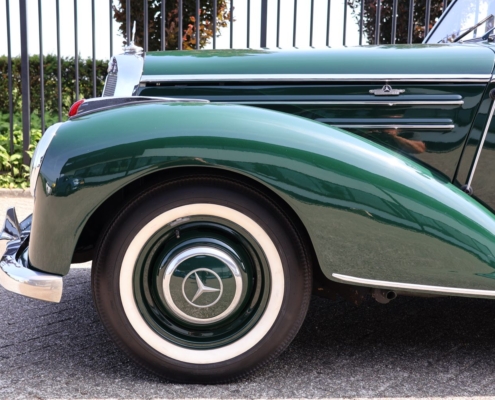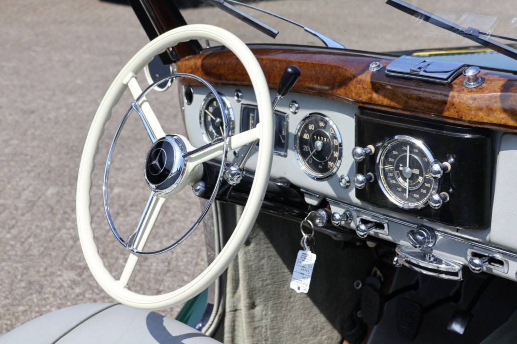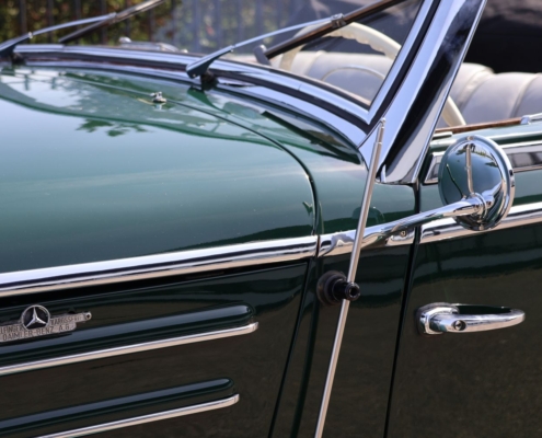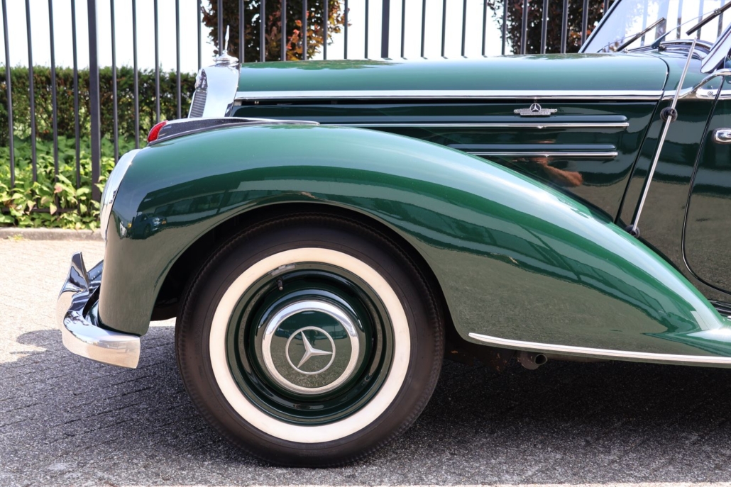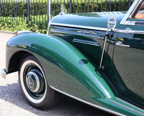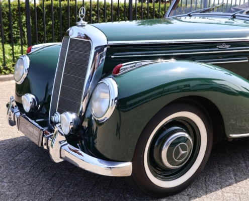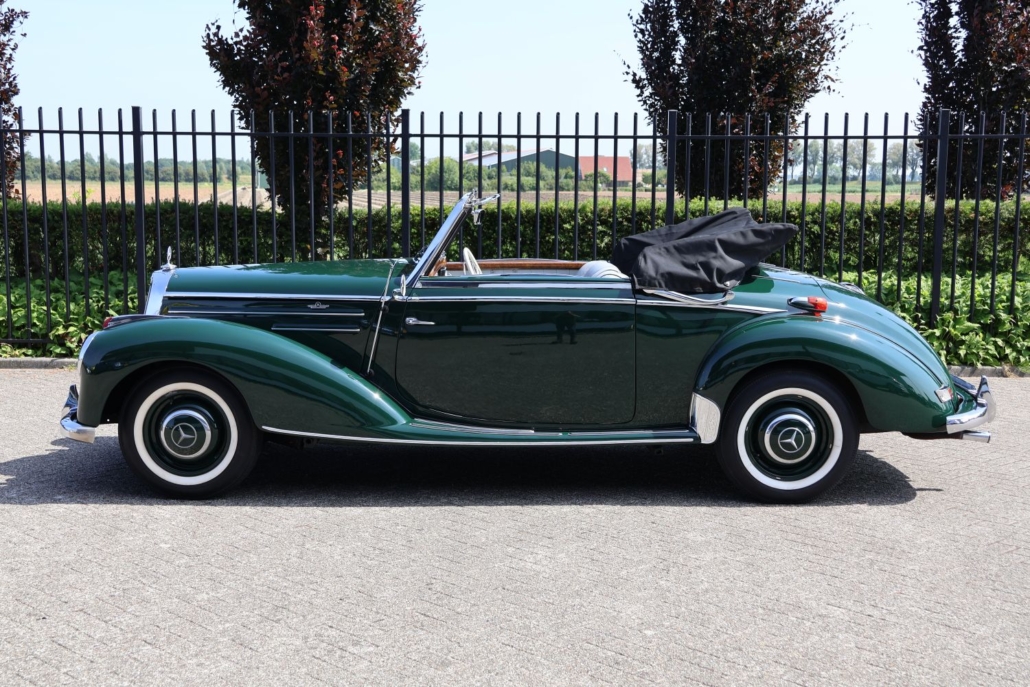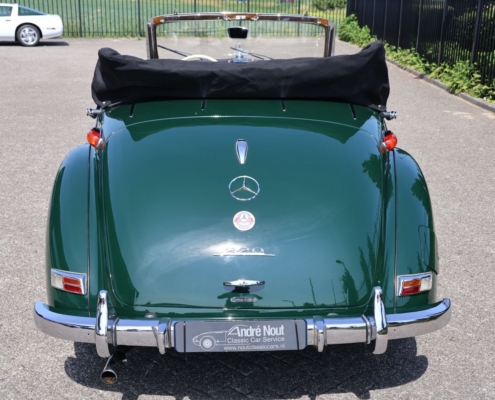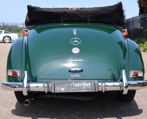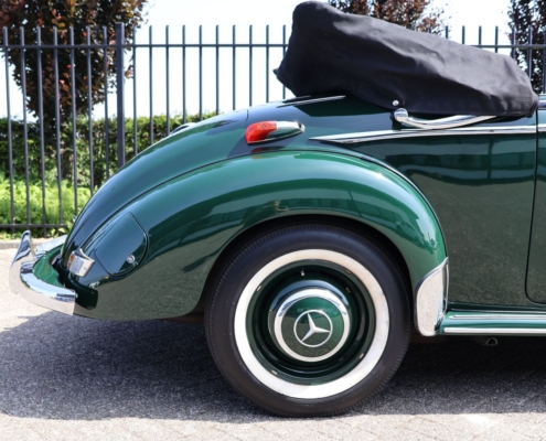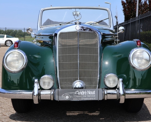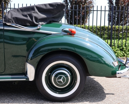 Deze Mercedes 220 A cabriolet is met slechts 1278 gebouwde exemplaren gerust een exclusieve en zeldzame verschijning te noemen. Afkomstig uit 1952 en behorend tot de zogenaamde W187 serie welke is gebouwd van 1951 tot 1955. Uitgerust met een 2.2 liter zescilinder motor, gekoppeld aan een handgeschakelde vierversnellingsbak en een zeer elegant koetswerk spreekt de auto een grote schare Mercedes en andere klassieker liefhebbers aan.