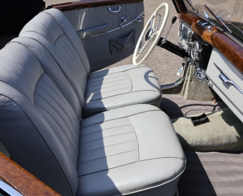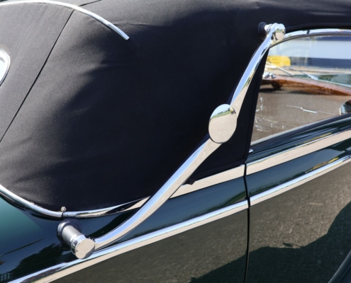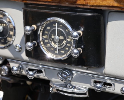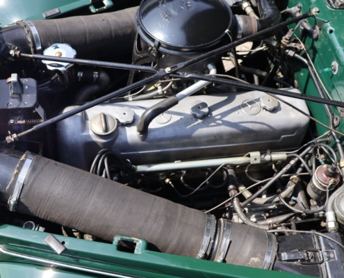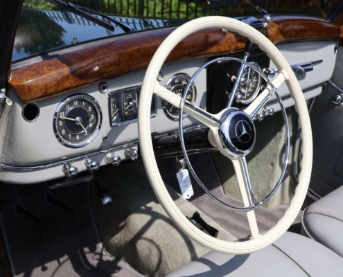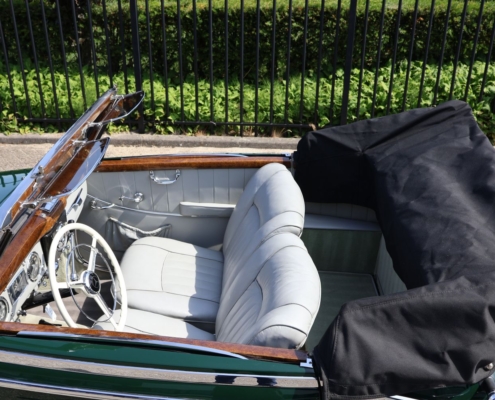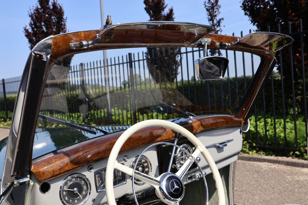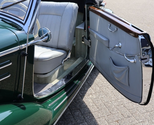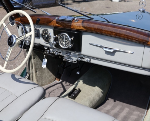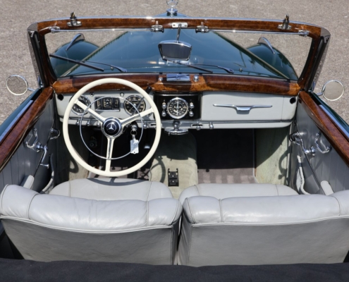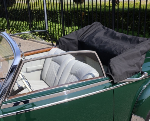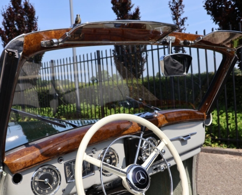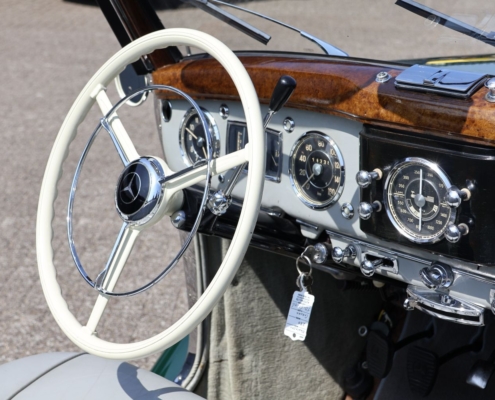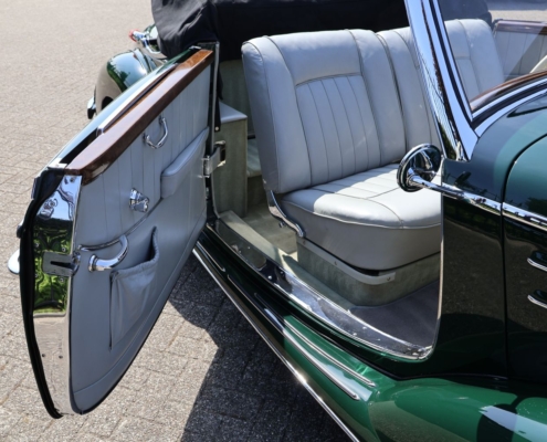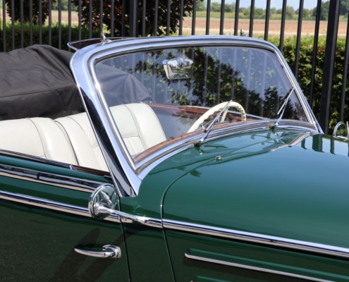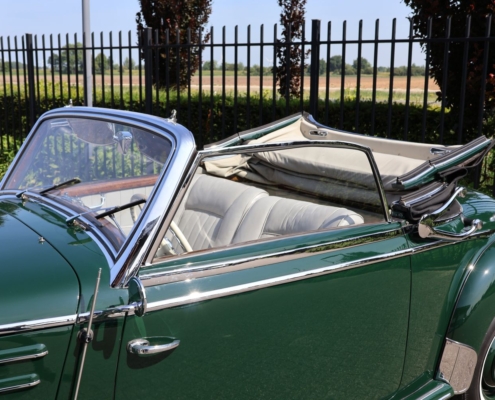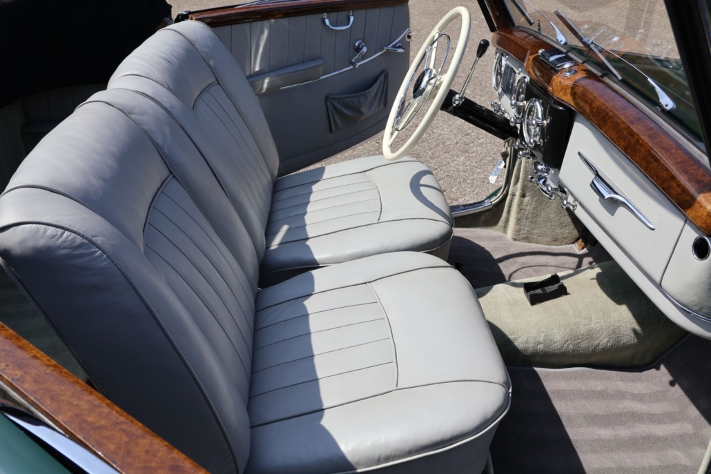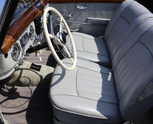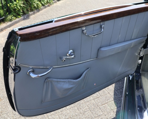 In deze donkergroene kleur, gecombineerd met het grijze leer presenteert deze 220 zich perfect. De auto is in het verleden grondig gerestaureerd en is na een lange periode in bezit te zijn geweest door dezelfde eigenaar nu door ons uitgebreid geserviced. Rijden met deze auto is echt als reizen in een tijdscapsule. De zescilinder motor produceert een mooi geluid, typerend voor Mercedes en zorgt ervoor dat de auto in het hedendaagse verkeer nog altijd goed mee kan komen. Het best voelt hij zich thuis op de mooie binnendoor wegen, lekker met de cabrioletkap geopend en de ramen naar beneden zorgt hij ervoor dat u als vanzelf onthaast.