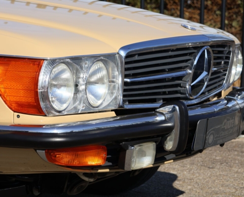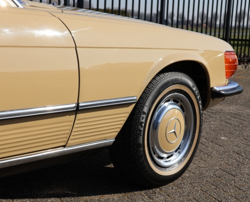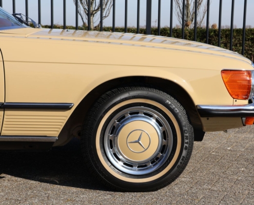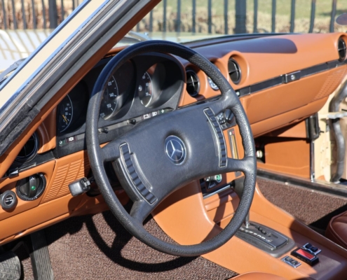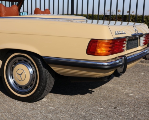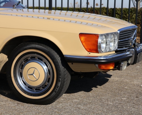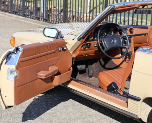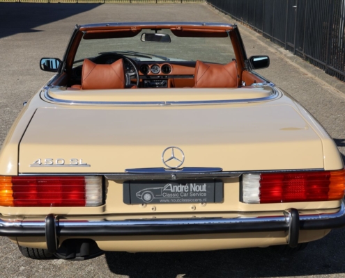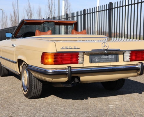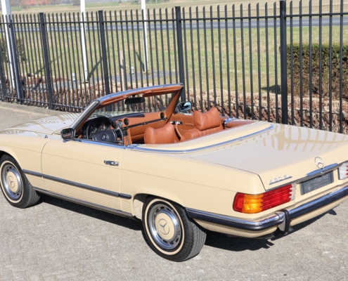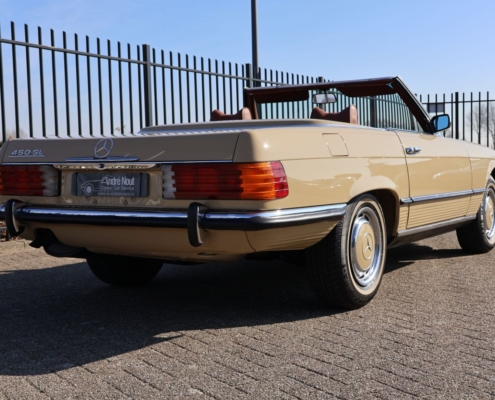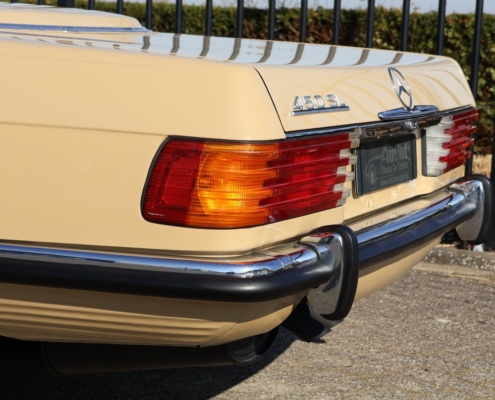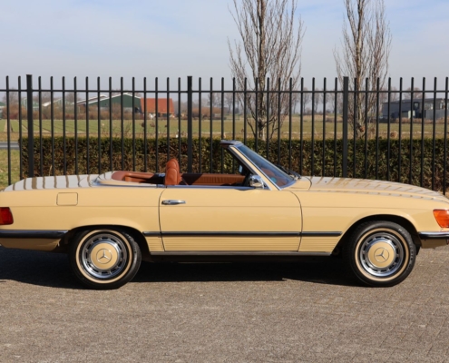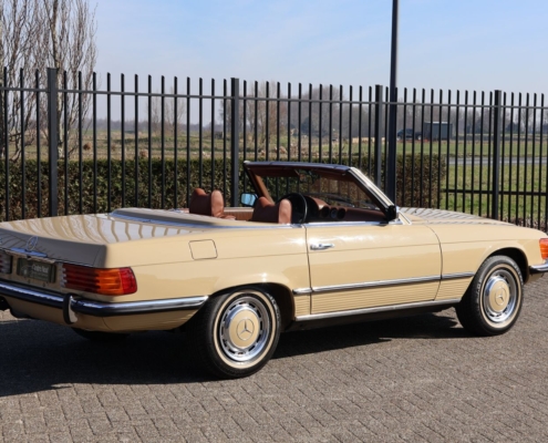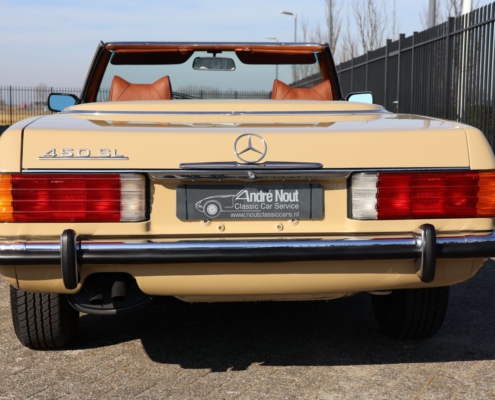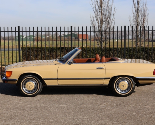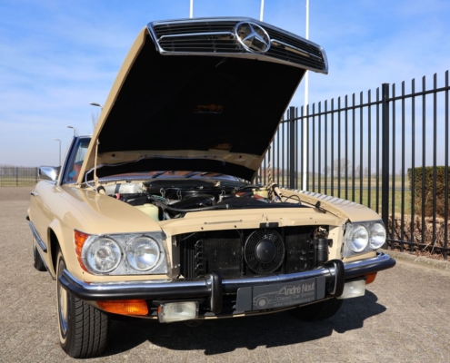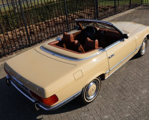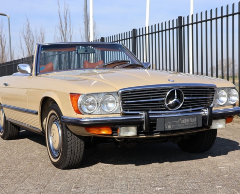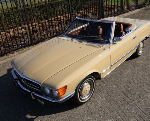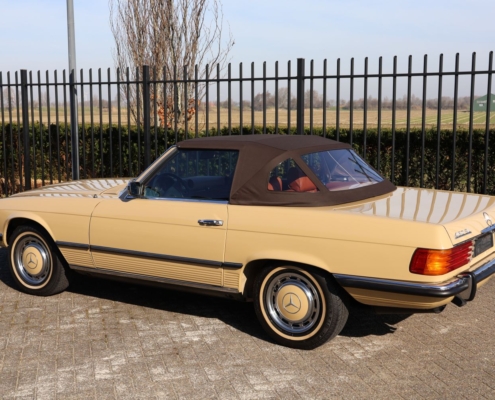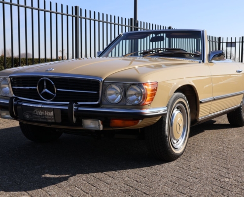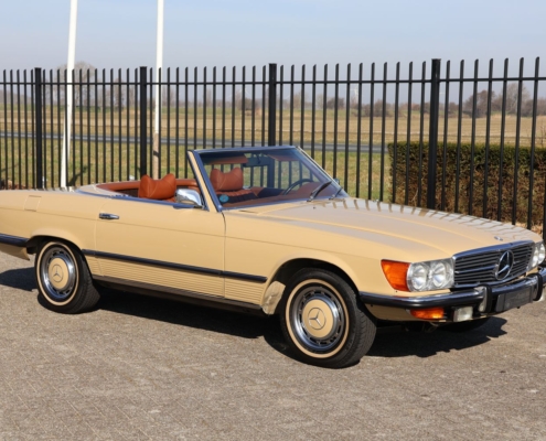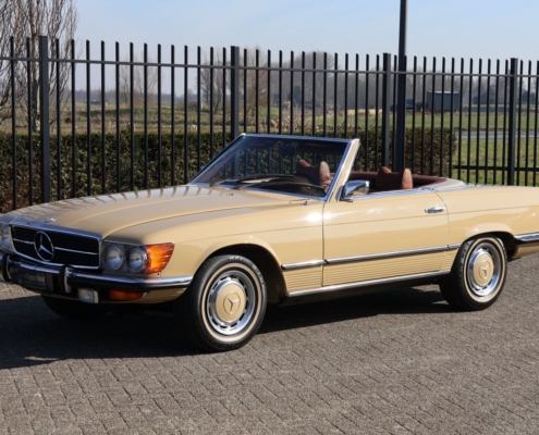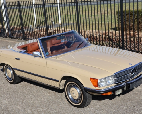 De Mercedes-Benz 450 SL, geïntroduceerd in 1972, is een iconisch model uit de R107 reeks, een serie die door Mercedes-Benz werd geproduceerd van 1971 tot 1989. Deze reeks was een opvolger van de W113 (Pagode). De 450 SL was ontworpen als een luxueuze roadster met een verwijderbare hardtop en een stoffen soft-top, waardoor bestuurders het beste van twee werelden kregen: een gesloten coupé en een open cabriolet. De 450 SL werd aangedreven door een 4.5-liter V8-motor, die bekend stond om zijn krachtige prestaties en soepele rijervaring. De motor was gekoppeld aan een automatische versnellingsbak, wat bijdroeg aan het comfortabele en moeiteloze rijgedrag dat men van een luxe roadster verwacht. Deze V8-motor was in staat om de auto een goede acceleratie en een respectabele topsnelheid te geven voor die tijd. De 450SL W107 was destijds in de soap serie “Dallas “ te zien waarin deze werd gereden door acteur Patrick Duffy in de rol van Bobby Ewing. Door de enorme populariteit van deze serie stegen ook de verkoopcijfers van dit model aanzienlijk.