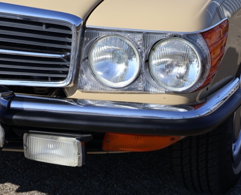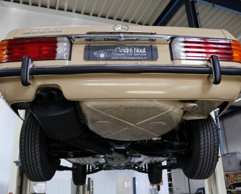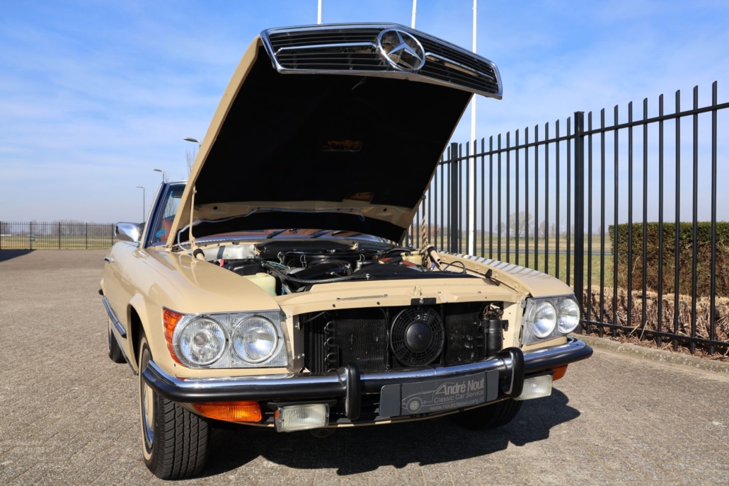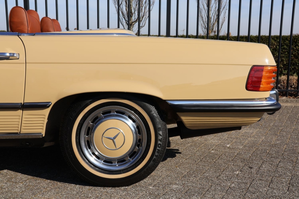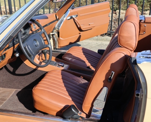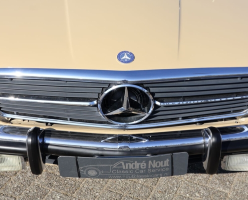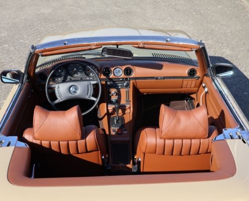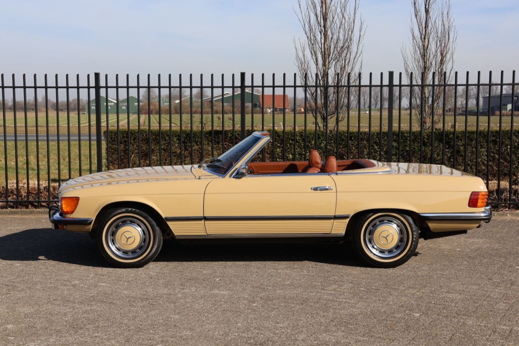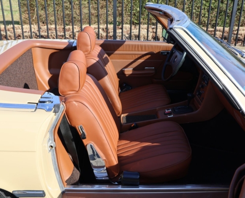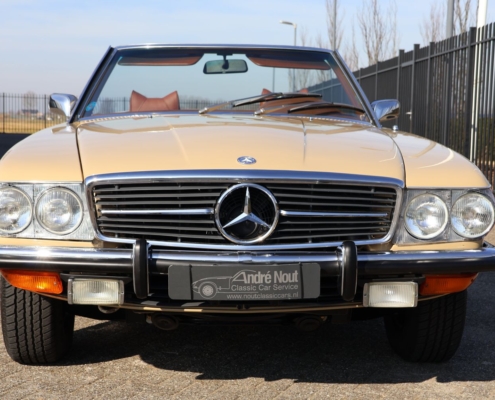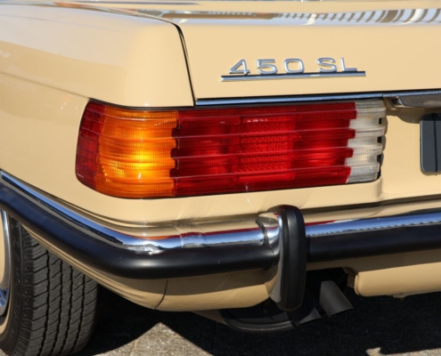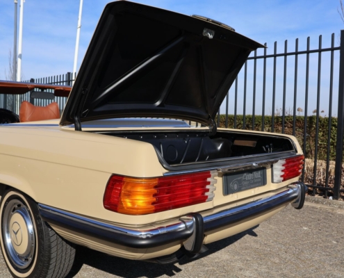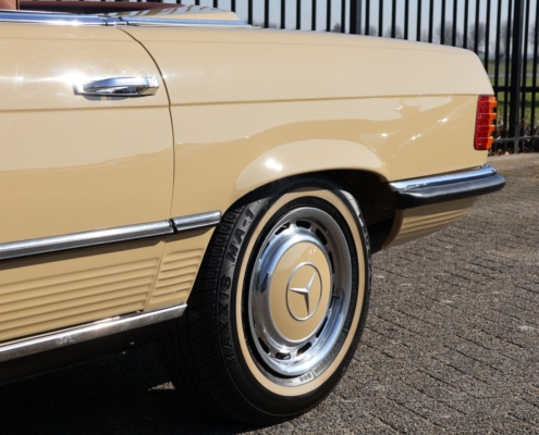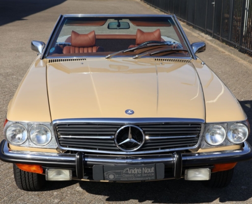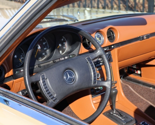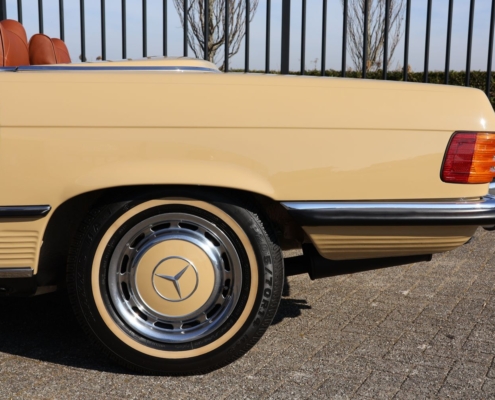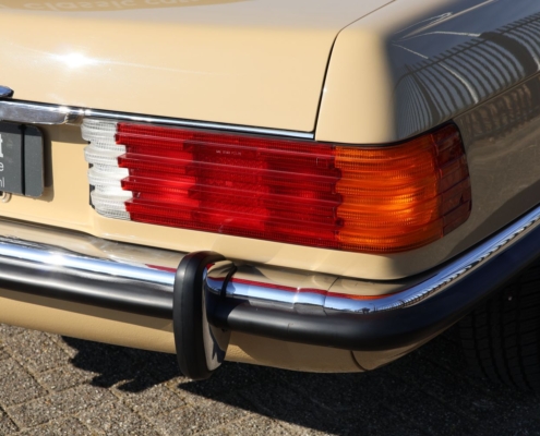 De Mercedes-Benz 450 SL, geïntroduceerd in 1972, is een iconisch model uit de R107 reeks, een serie die door Mercedes-Benz werd geproduceerd van 1971 tot 1989. Deze reeks was een opvolger van de W113 (Pagode). De 450 SL was ontworpen als een luxueuze roadster met een verwijderbare hardtop en een stoffen soft-top, waardoor bestuurders het beste van twee werelden kregen: een gesloten coupé en een open cabriolet. De 450 SL werd aangedreven door een 4.5-liter V8-motor, die bekend stond om zijn krachtige prestaties en soepele rijervaring. De motor was gekoppeld aan een automatische versnellingsbak, wat bijdroeg aan het comfortabele en moeiteloze rijgedrag dat men van een luxe roadster verwacht. Deze V8-motor was in staat om de auto een goede acceleratie en een respectabele topsnelheid te geven voor die tijd. De 450SL W107 was destijds in de soap serie “Dallas “ te zien waarin deze werd gereden door acteur Patrick Duffy in de rol van Bobby Ewing. Door de enorme populariteit van deze serie stegen ook de verkoopcijfers van dit model aanzienlijk.