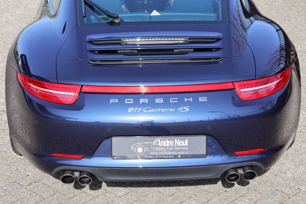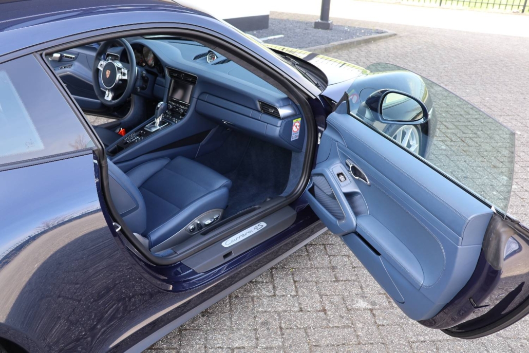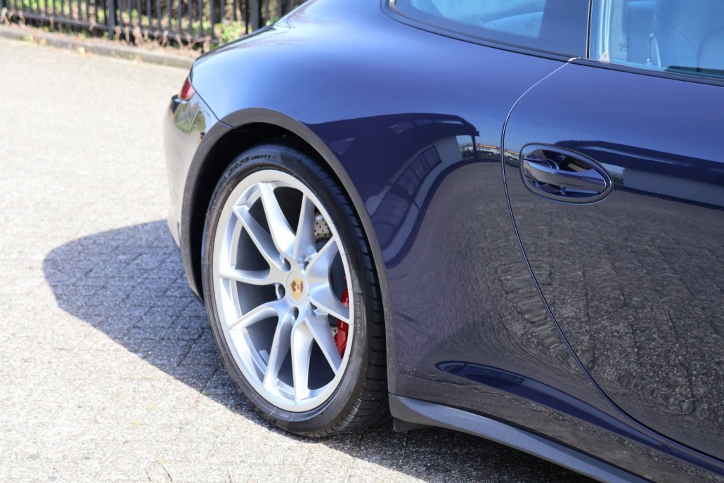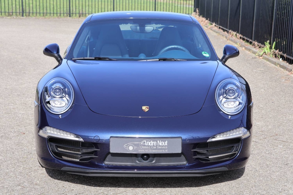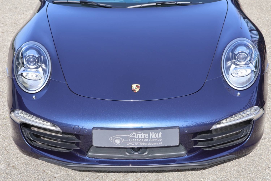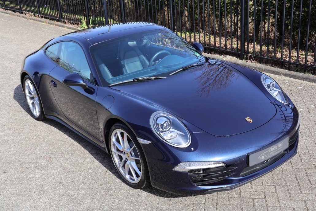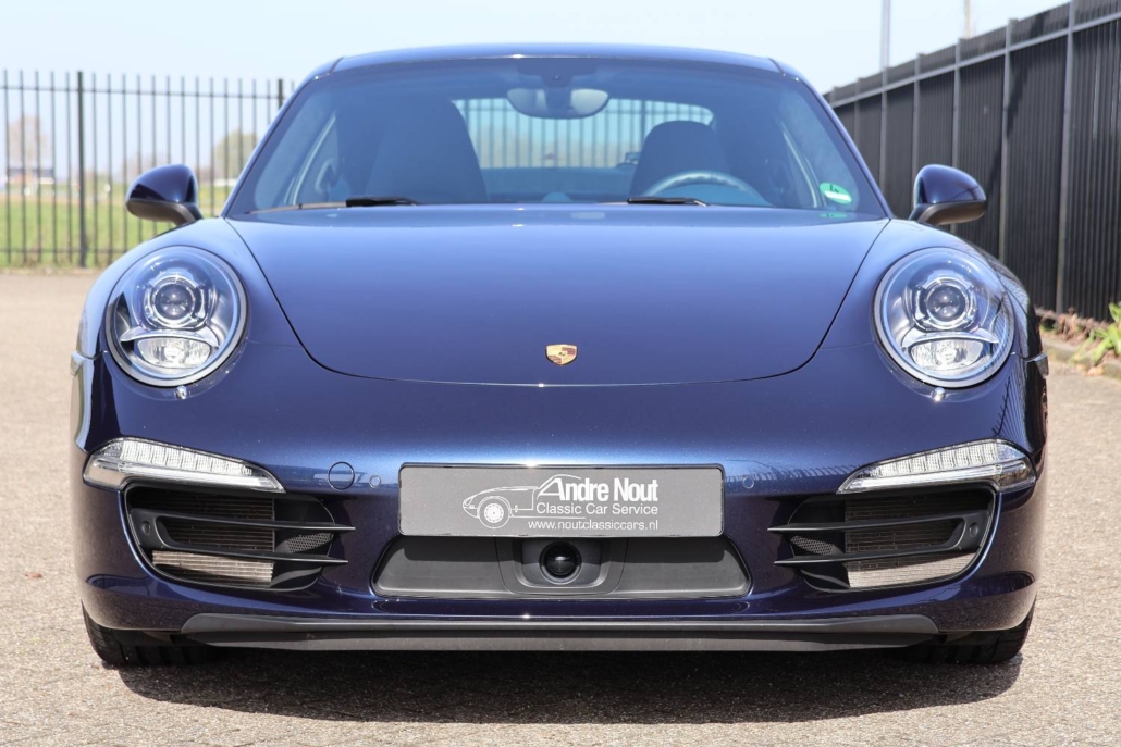 Wat een pareltje hebben we weten te bemachtigen in de vorm van deze Porsche 991 Carrera 4S! toen we deze auto zagen in deze kleurencombinatie waren we direct enthousiast. Een donkere kleur lijkt het brede bodywork nog wel breder te maken en in donkerblauw metallic is het ook nog eens super chique. Behalve zijn verschijning zijn ook de specificaties en prestaties uitzonderlijk te noemen. De zescylinder boxermotor met een inhoud van 3.8 liter levert liefst 400 pk en 440 Nm koppel, dit wordt doorgegeven aan alle vier de wielen middels Porsches fantastische PDK versnellingsbak. In alle weertypen is grip verzekerd en zelfs bij verwoede pogingen is de auto niet van zijn stuk te brengen.