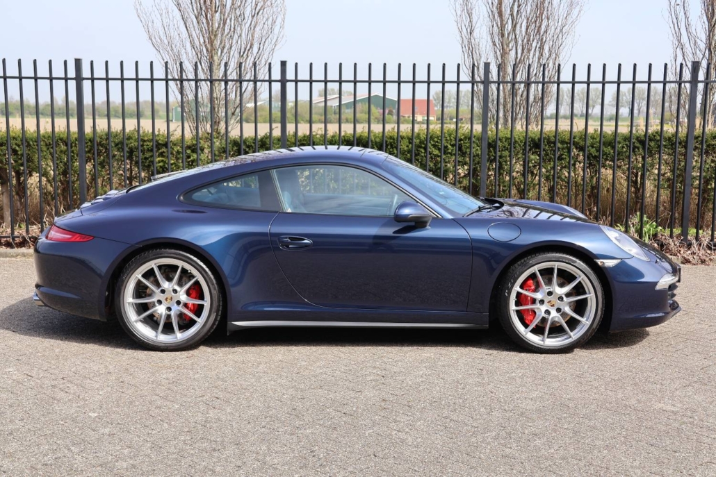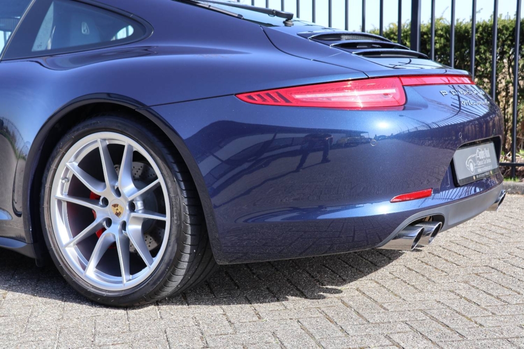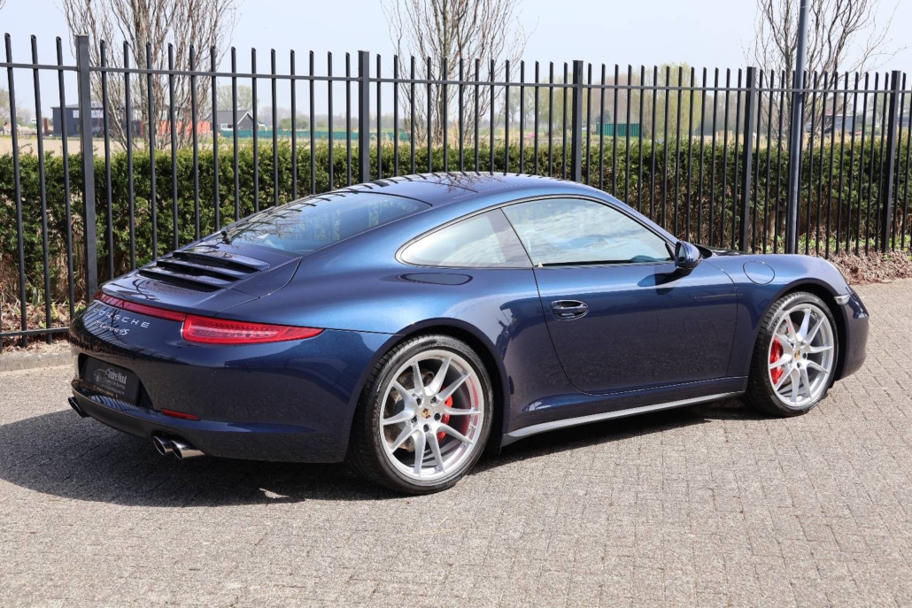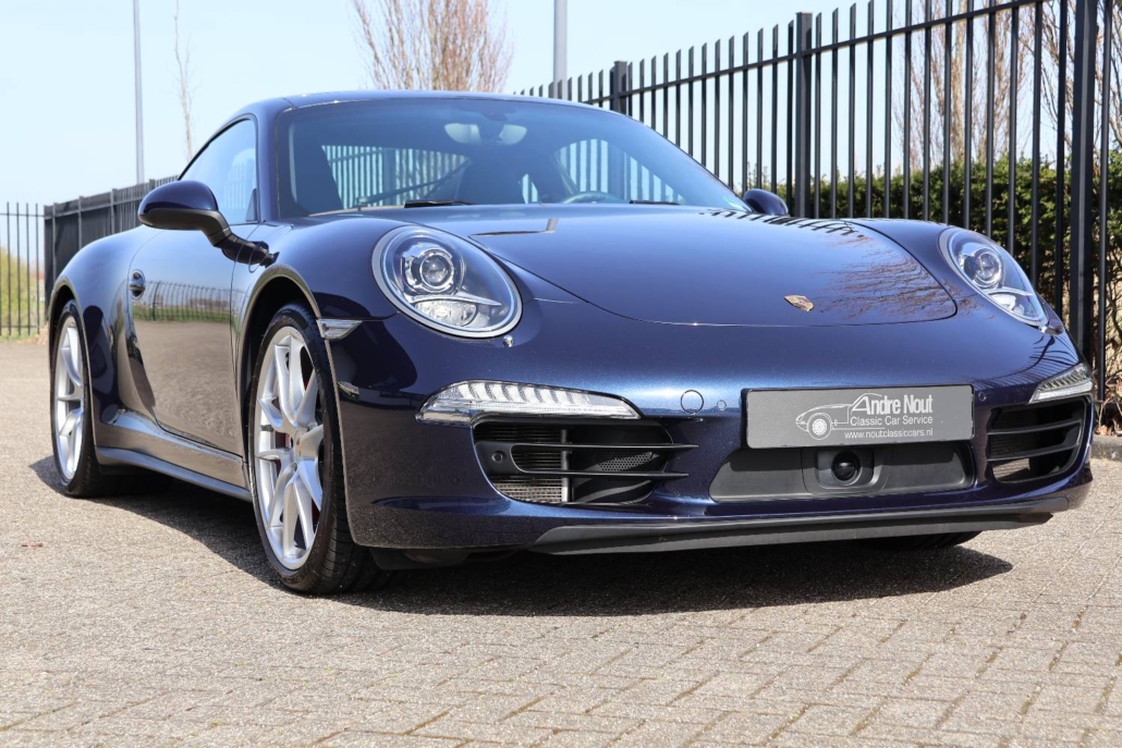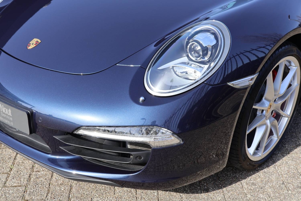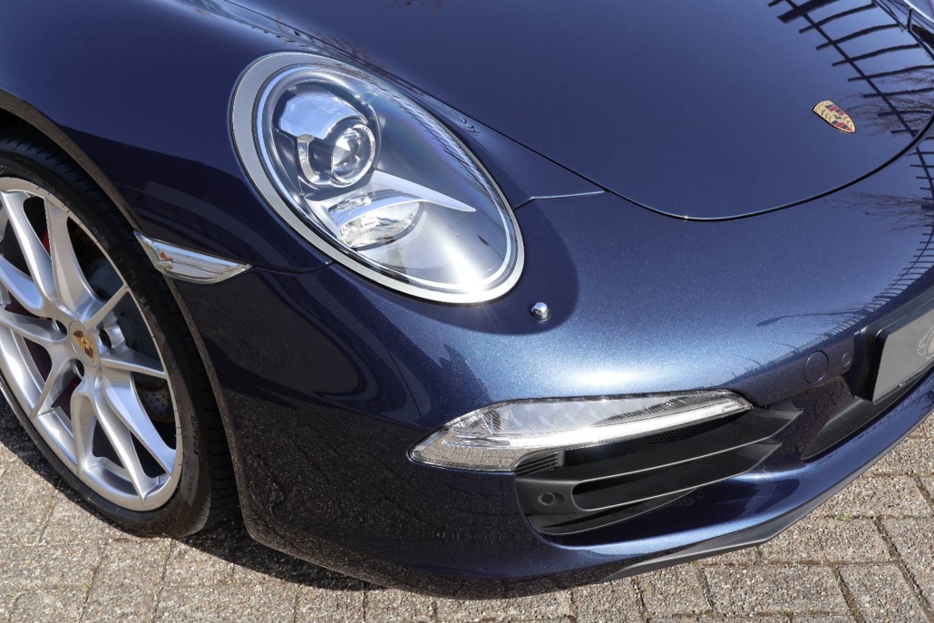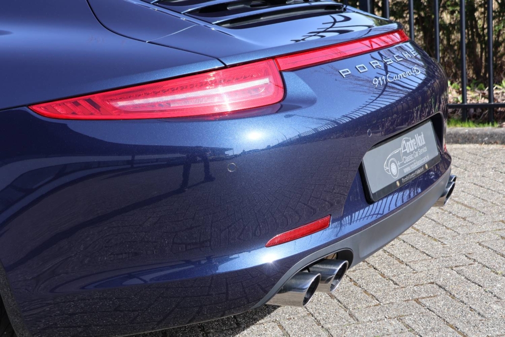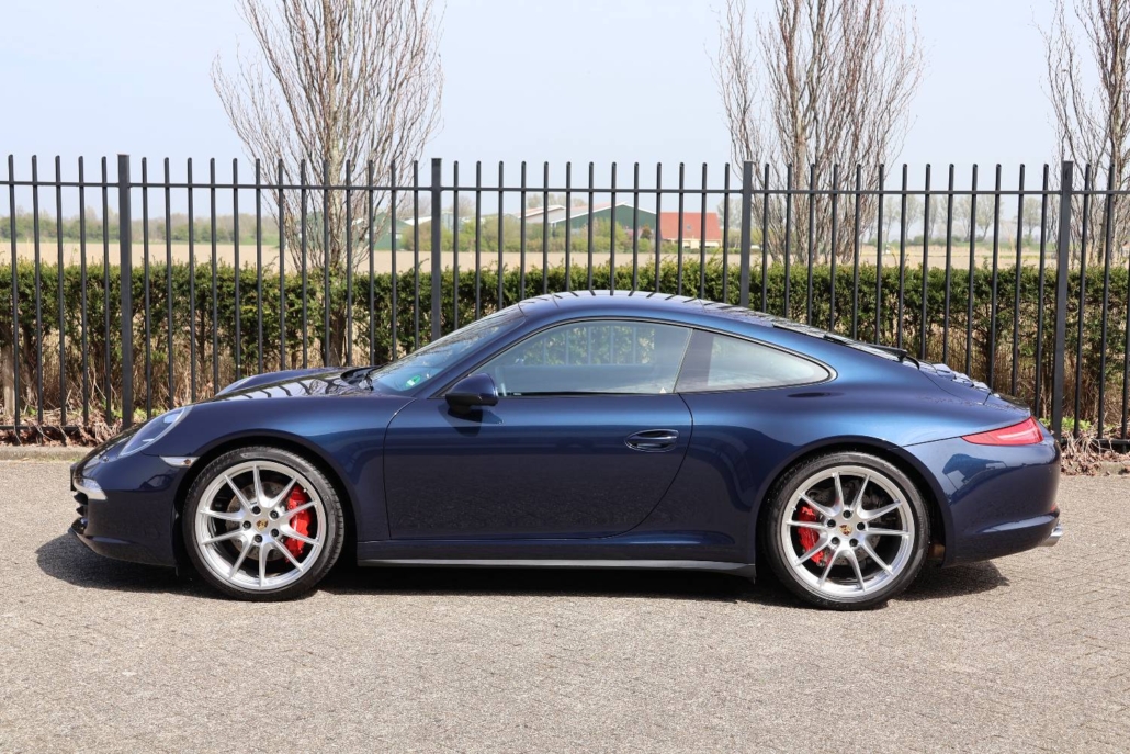 Wat een pareltje hebben we weten te bemachtigen in de vorm van deze Porsche 991 Carrera 4S! toen we deze auto zagen in deze kleurencombinatie waren we direct enthousiast. Een donkere kleur lijkt het brede bodywork nog wel breder te maken en in donkerblauw metallic is het ook nog eens super chique. Behalve zijn verschijning zijn ook de specificaties en prestaties uitzonderlijk te noemen. De zescylinder boxermotor met een inhoud van 3.8 liter levert liefst 400 pk en 440 Nm koppel, dit wordt doorgegeven aan alle vier de wielen middels Porsches fantastische PDK versnellingsbak. In alle weertypen is grip verzekerd en zelfs bij verwoede pogingen is de auto niet van zijn stuk te brengen.