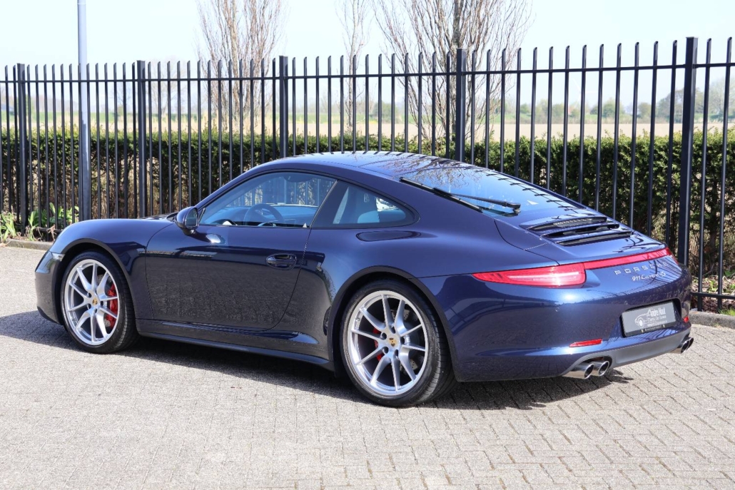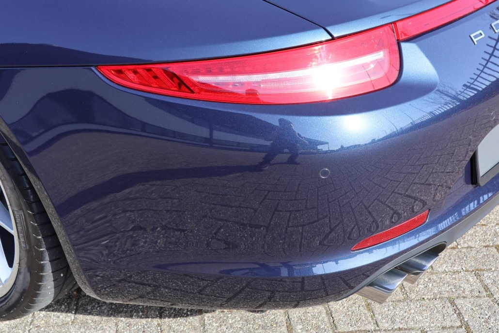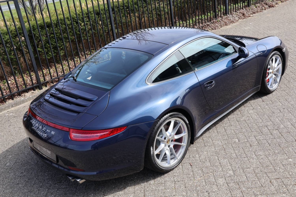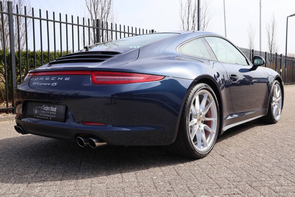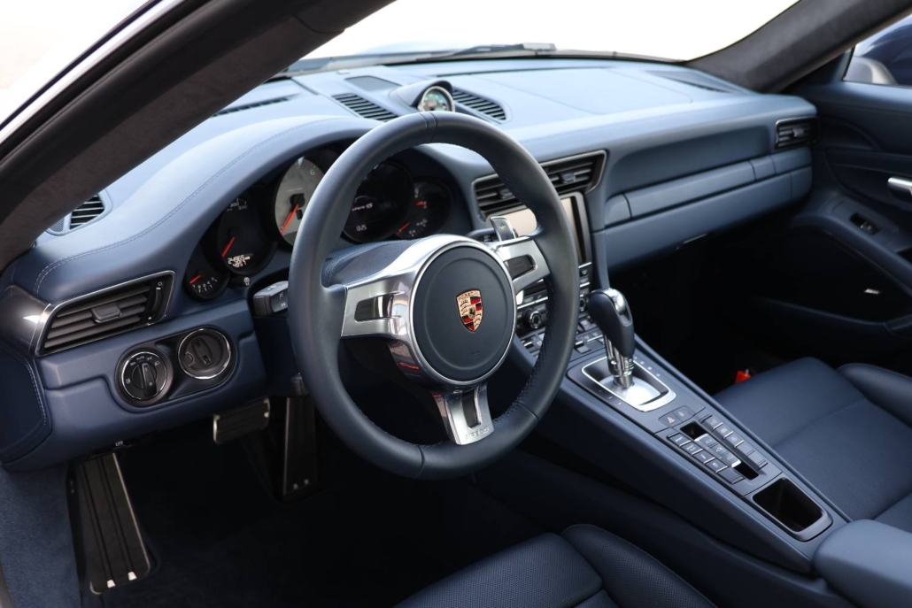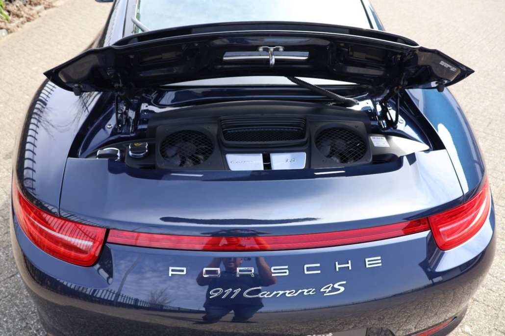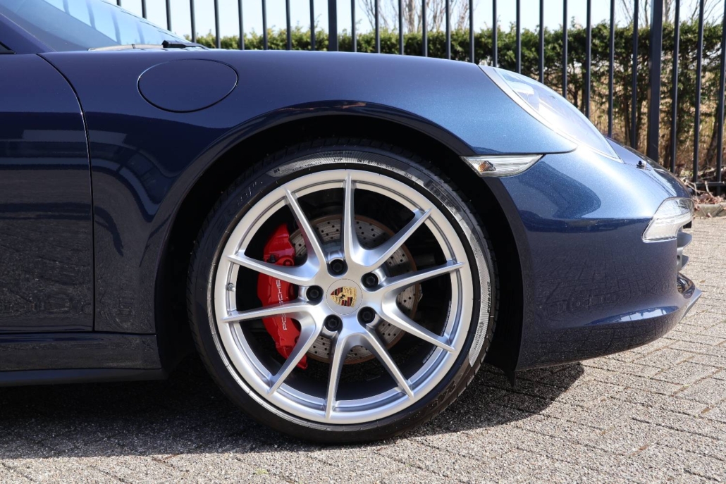 Wat een pareltje hebben we weten te bemachtigen in de vorm van deze Porsche 991 Carrera 4S! toen we deze auto zagen in deze kleurencombinatie waren we direct enthousiast. Een donkere kleur lijkt het brede bodywork nog wel breder te maken en in donkerblauw metallic is het ook nog eens super chique. Behalve zijn verschijning zijn ook de specificaties en prestaties uitzonderlijk te noemen. De zescylinder boxermotor met een inhoud van 3.8 liter levert liefst 400 pk en 440 Nm koppel, dit wordt doorgegeven aan alle vier de wielen middels Porsches fantastische PDK versnellingsbak. In alle weertypen is grip verzekerd en zelfs bij verwoede pogingen is de auto niet van zijn stuk te brengen.