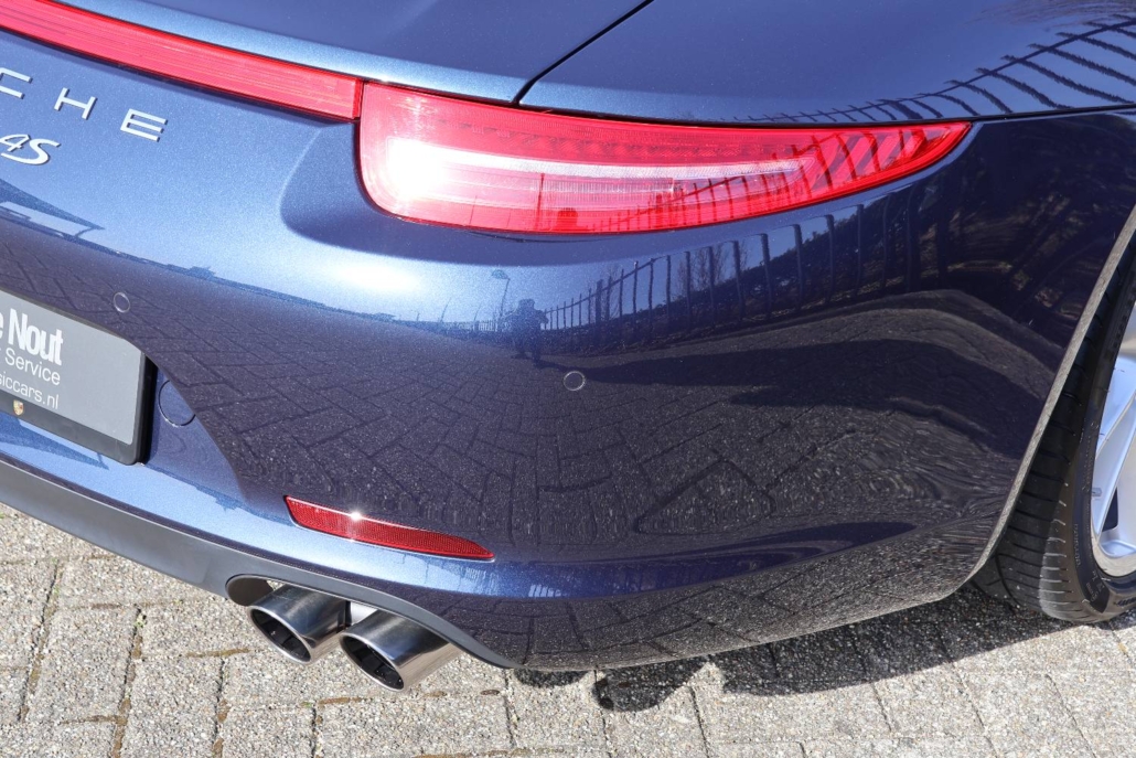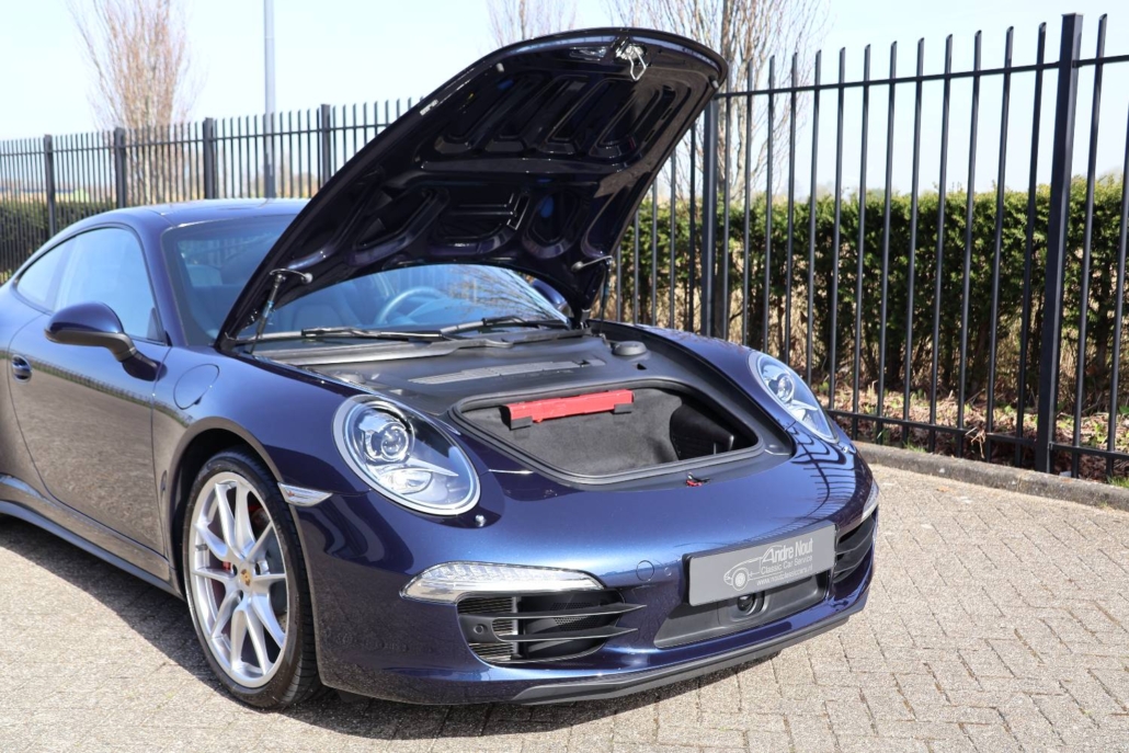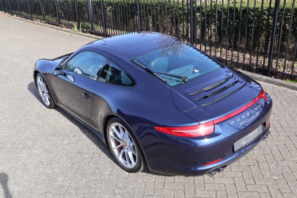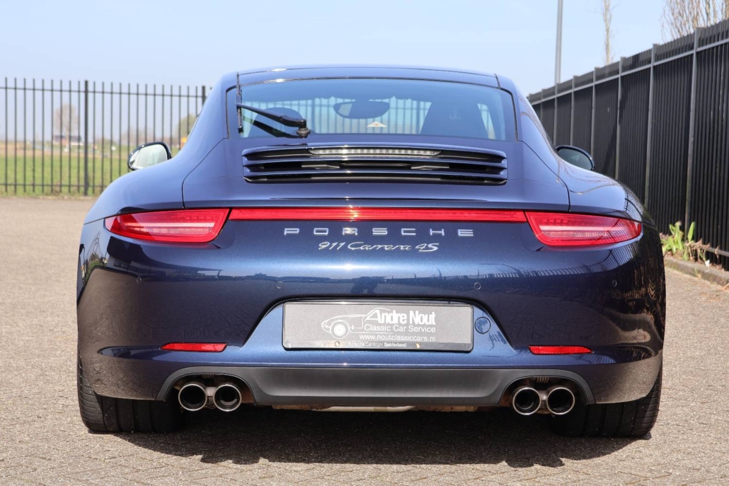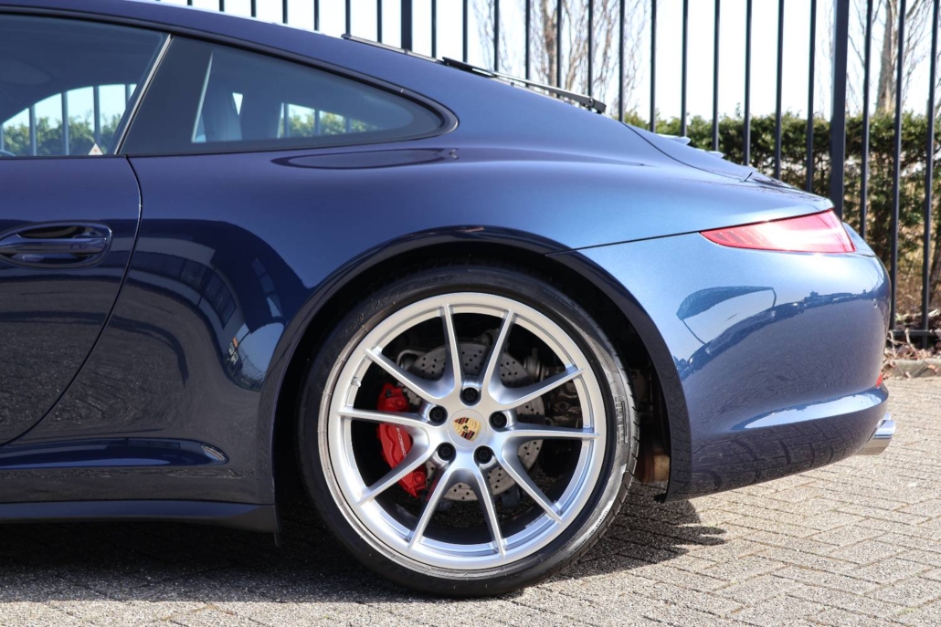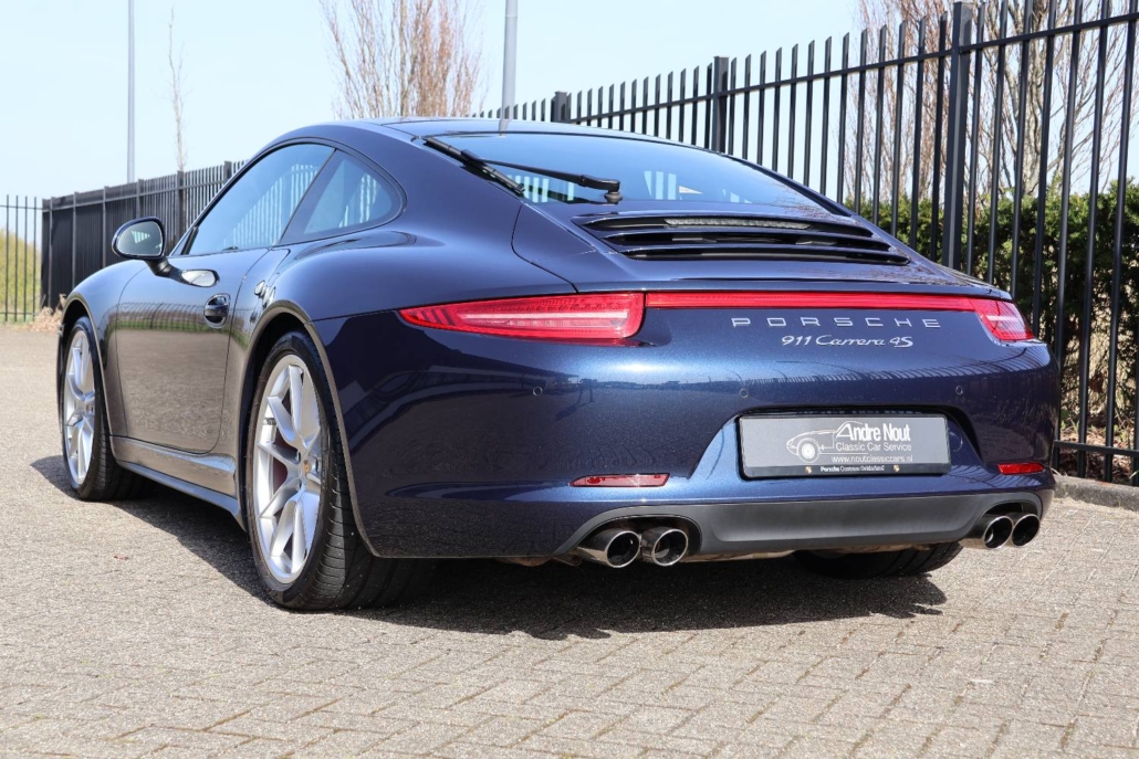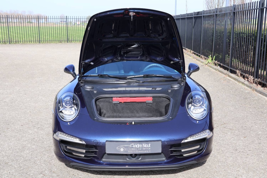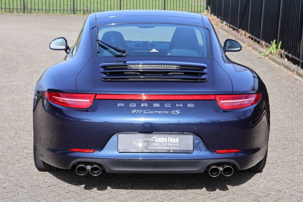 Wat een pareltje hebben we weten te bemachtigen in de vorm van deze Porsche 991 Carrera 4S! toen we deze auto zagen in deze kleurencombinatie waren we direct enthousiast. Een donkere kleur lijkt het brede bodywork nog wel breder te maken en in donkerblauw metallic is het ook nog eens super chique. Behalve zijn verschijning zijn ook de specificaties en prestaties uitzonderlijk te noemen. De zescylinder boxermotor met een inhoud van 3.8 liter levert liefst 400 pk en 440 Nm koppel, dit wordt doorgegeven aan alle vier de wielen middels Porsches fantastische PDK versnellingsbak. In alle weertypen is grip verzekerd en zelfs bij verwoede pogingen is de auto niet van zijn stuk te brengen.