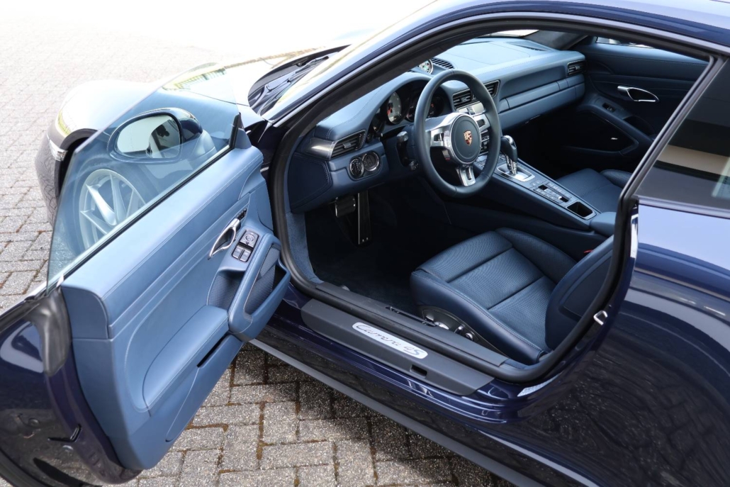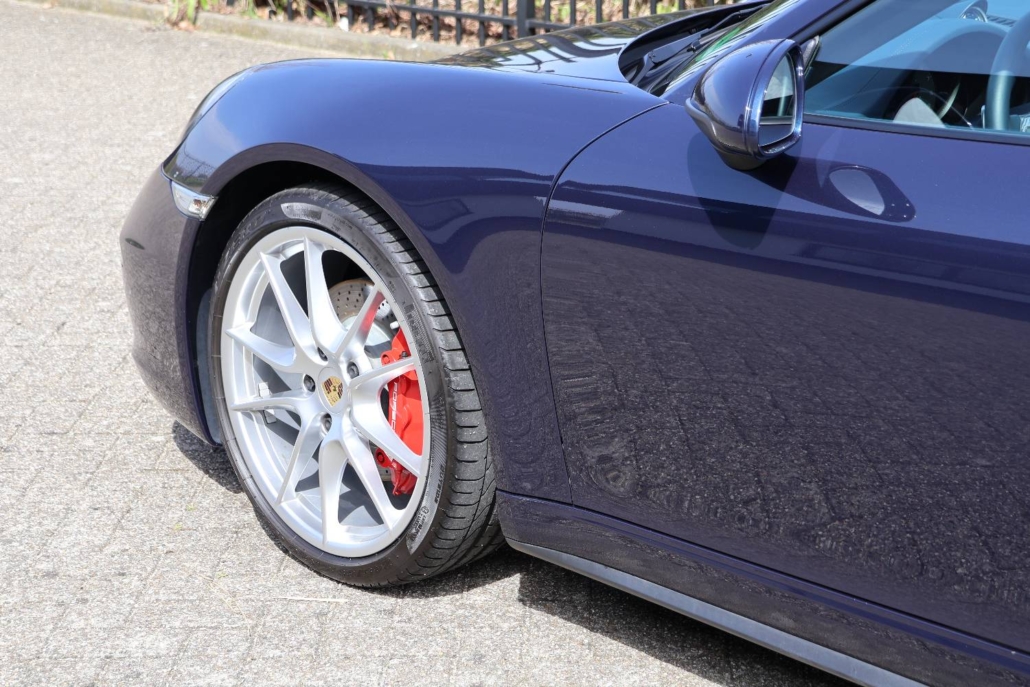 Wat onderscheidt deze 991 nog meer van het andere aanbod, wat dacht u van zijn zeer lage kilometerstand van 24965 km. Een ander positief detail is dat hij nieuw werd geleverd door Porsche centrum Rotterdam en daar ook altijd in onderhoud is geweest. Slechts de laatste beurt in 2025 is gedaan bij Porsche centrum Gelderland. Deze auto heeft absoluut een zeer zorgvuldige eigenaar gehad. Schadevrij, rondom eerste lak en voorzien van Full PPF folie waardoor het originele lakwerk in nieuwstaat is gebleven. Van binnen is het al niet anders, een smetteloos en compleet schadevrij interieur in prachtig blauw leer. De optielijst is bij dit exemplaar ook flink aangevinkt met oa sport chrono, stoelverwarming en ventilatie, 20 inch lichtmetalen wielen, sportuitlaat, open dak etc. wij nodigen u graag uit om deze 911 in het echt te komen bekijken en nemen u graag mee op een proefrit.