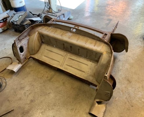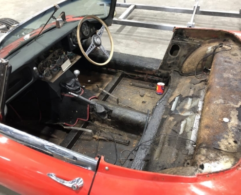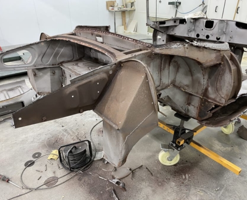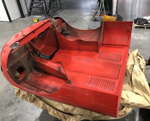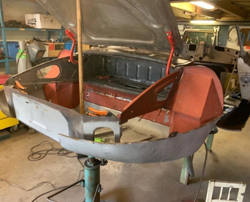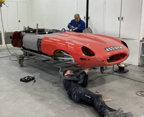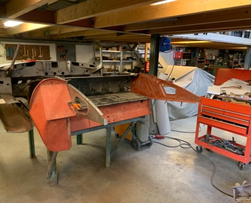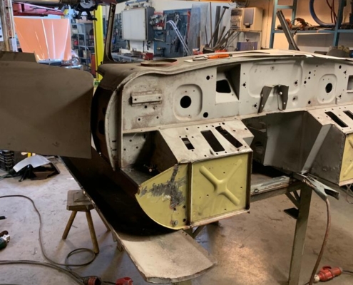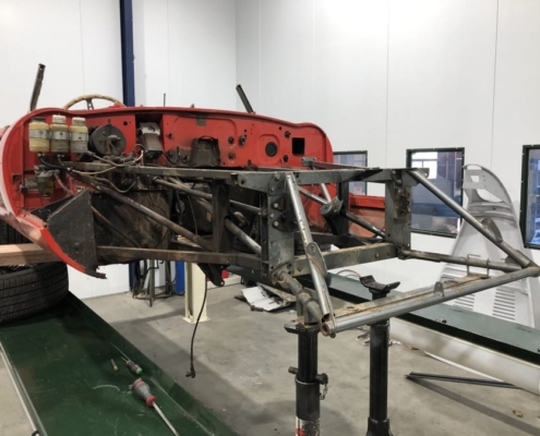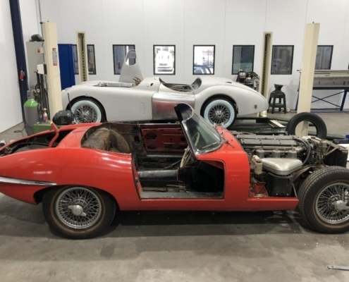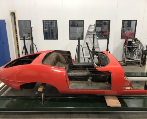 Voor een Engelse klant zijn wij momenteel deze E-Type volledig body-off aan het restaureren. We hebben de auto in Engeland opgehaald en zal weer in topstaat bij hem voor de deur worden afgeleverd. Vanwege talloze oudere “reparaties” bouwen wij de body compleet opnieuw op evenals alle techniek.
