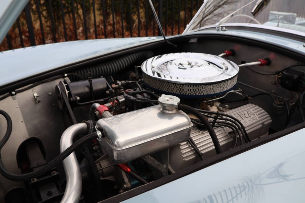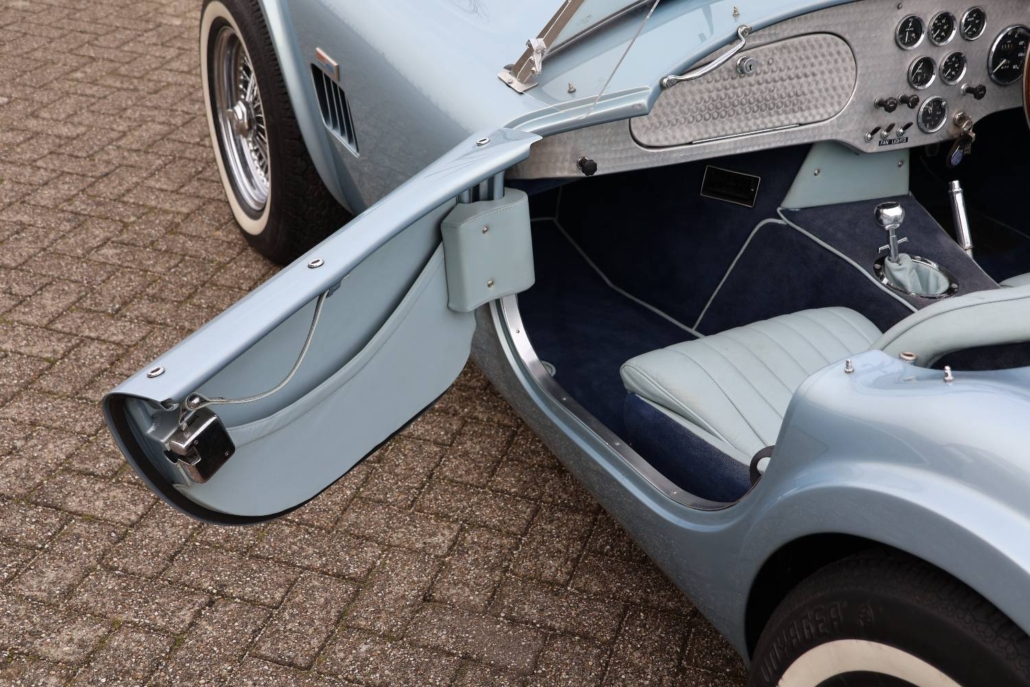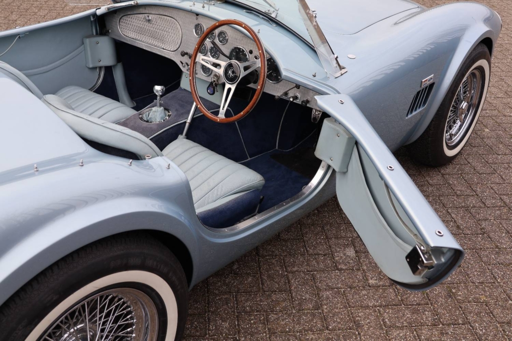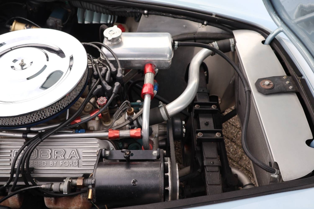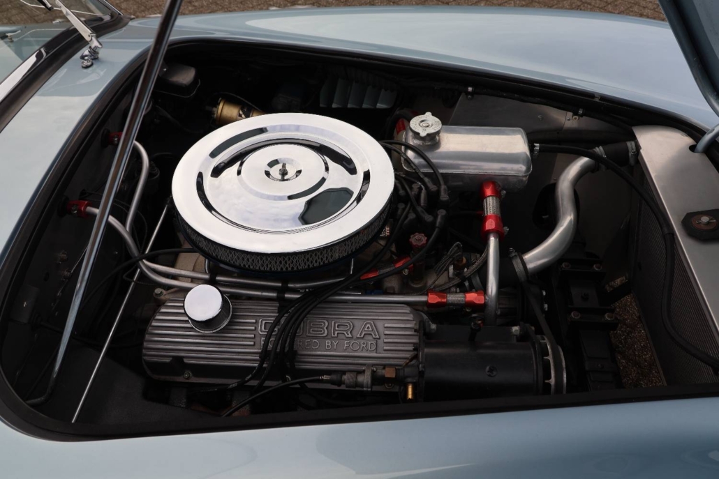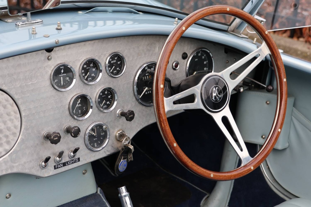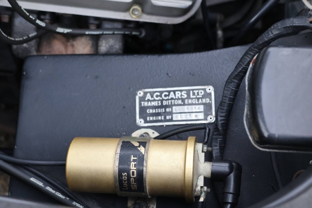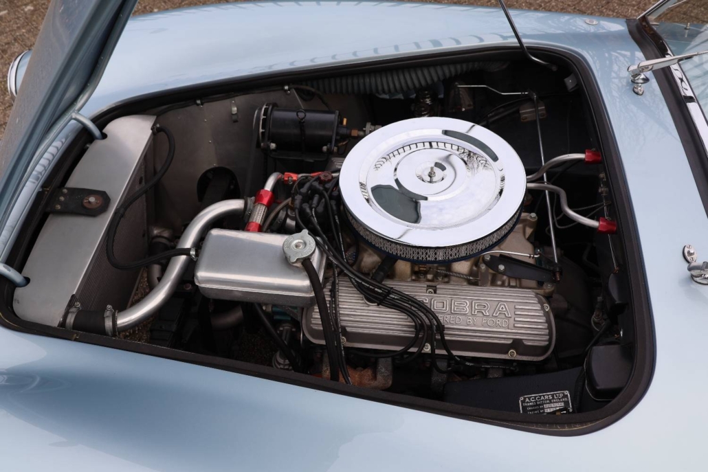 First registered on 7th December 1964, the Cobra roadster offered here was first owned by Dr Norman Gay, of Beaconsfield, Buckinghamshire and comes with its original registration document. AC Cars Ltd has confirmed that chassis number ‘COB6034’, fitted with engine number ‘5185’, was delivered to its agent M J Hughes Ltd, of Station Road, Beaconsfield on 2nd December 1964. On 30th November 1966 the car passed into the ownership of Transocean Photographic Services Ltd, of Esher, Surrey. Shortly after acquisition from Dr Gay, the Cobra was kept in storage while the owner travelled abroad and the car was not registered in his name until the 3rd of May 1974.
