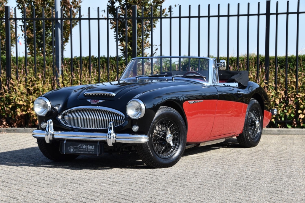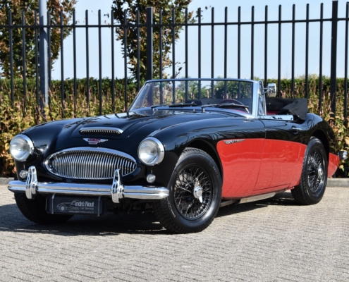 According to many, this is the ultimate combination. A real Big healey with the 6 cylinder engine and the classic dashboard layout, but then combined with the convenience of the fixed convertible top and the winding side windows. This time not in Healey blue but in beautiful and stylish black with a burgundy red side and black hood in mohair.