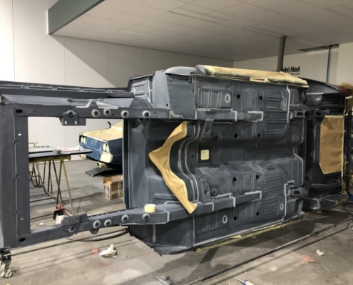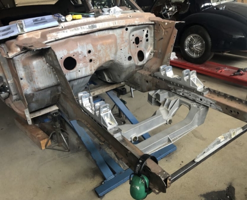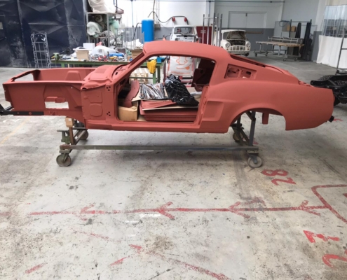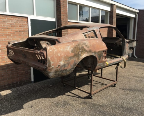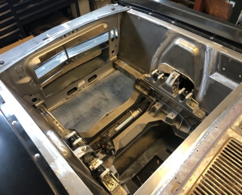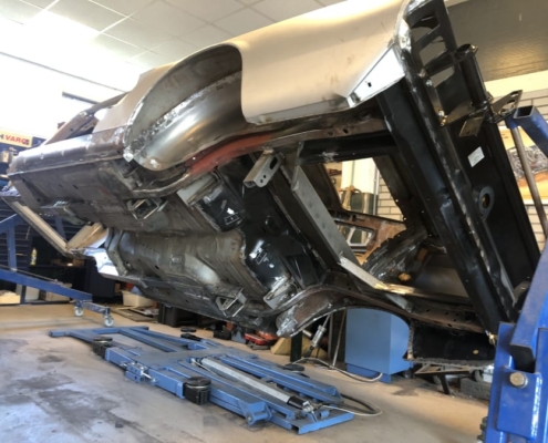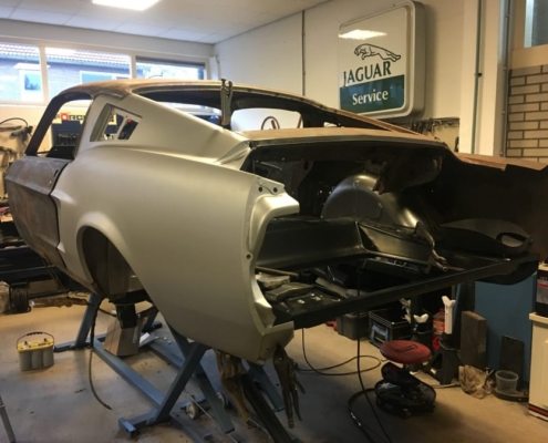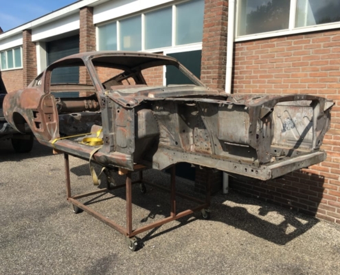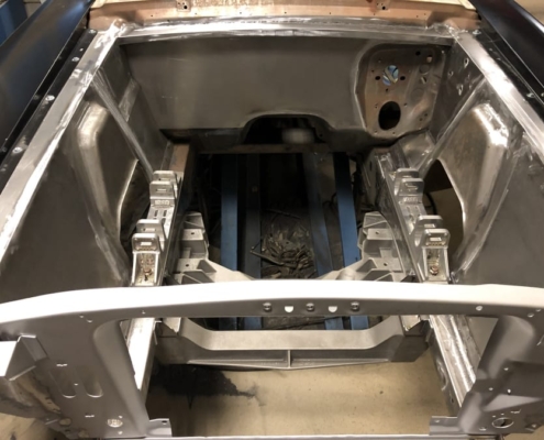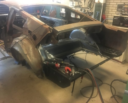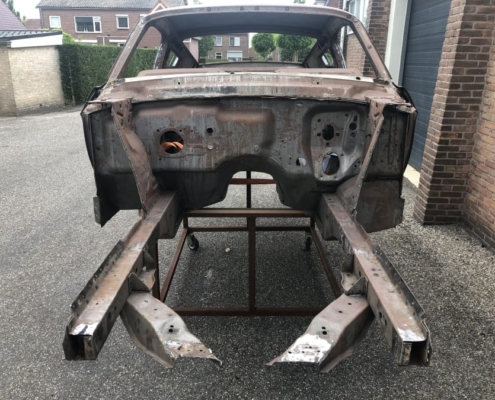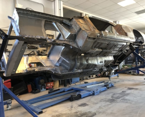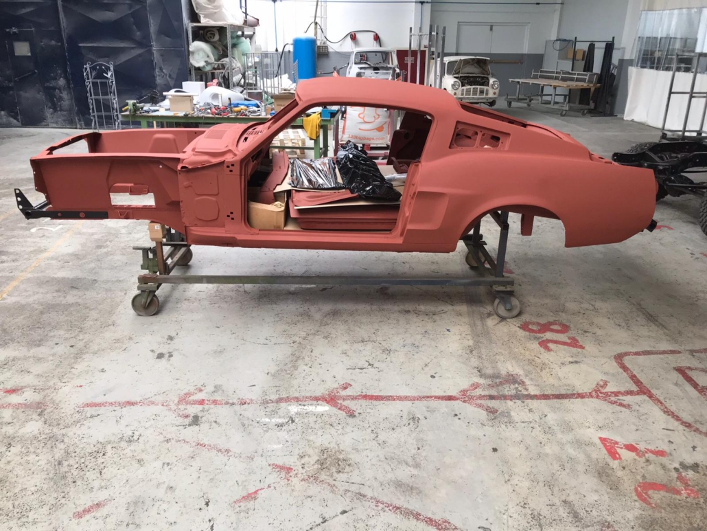 The front and rear suspension have been completely removed and replaced with a “Detroit speed” conversion kit with independent suspension. The original engine will be replaced with a brand- new Ford Coyote V8 with Tremec six-speed gearbox and the body will be modified to the owner’s wishes.