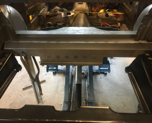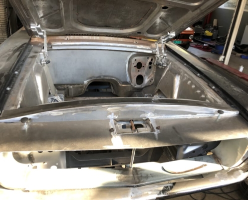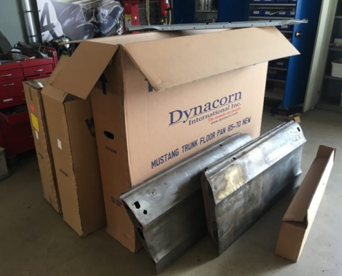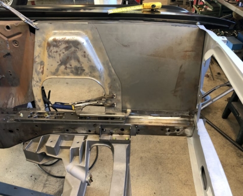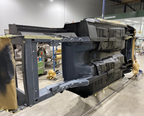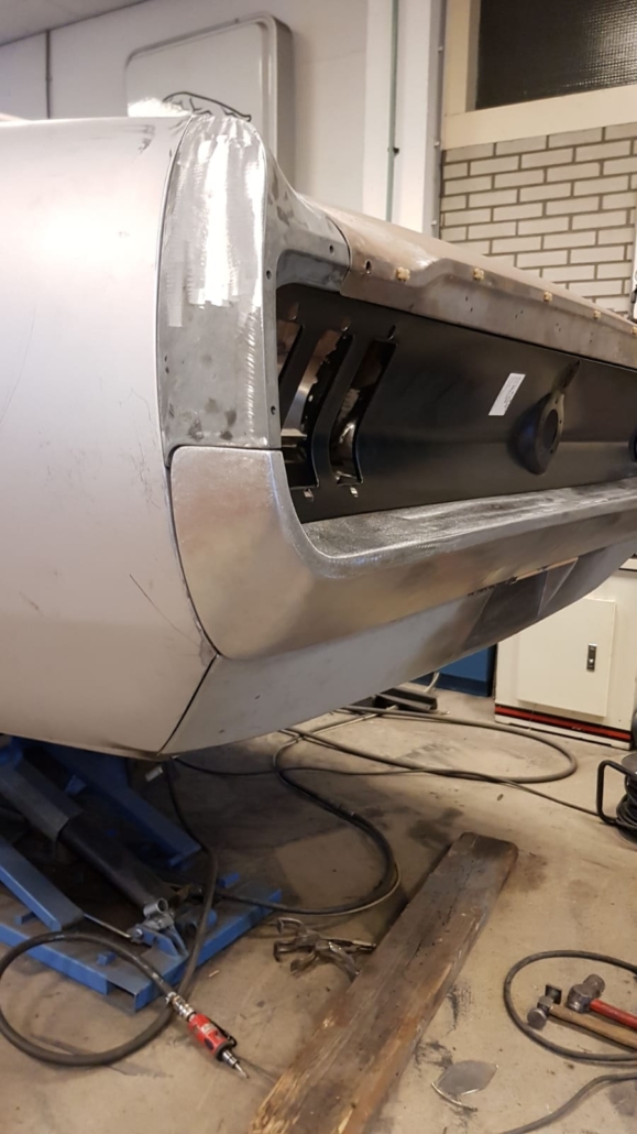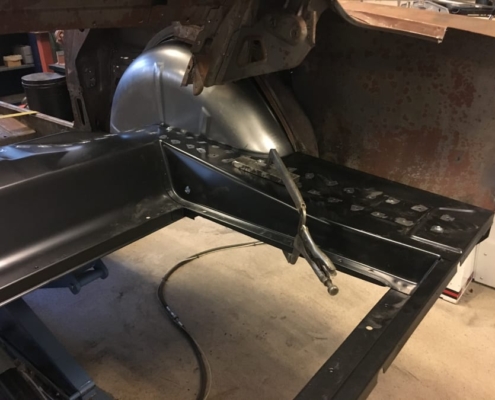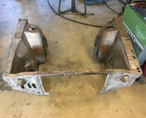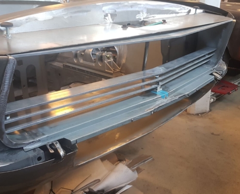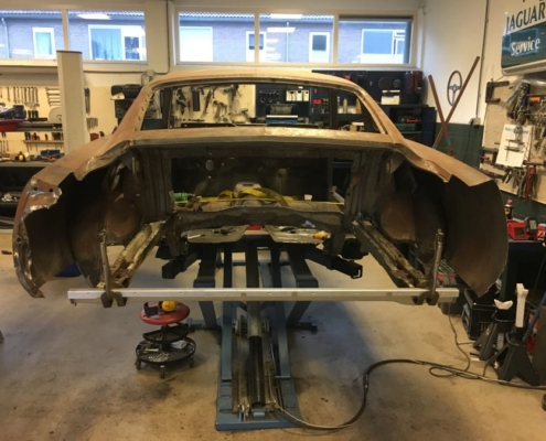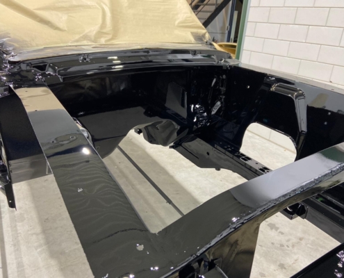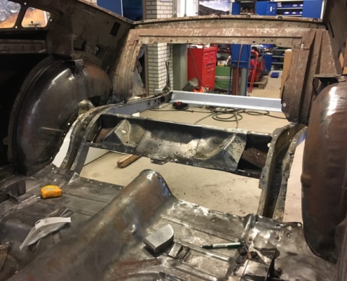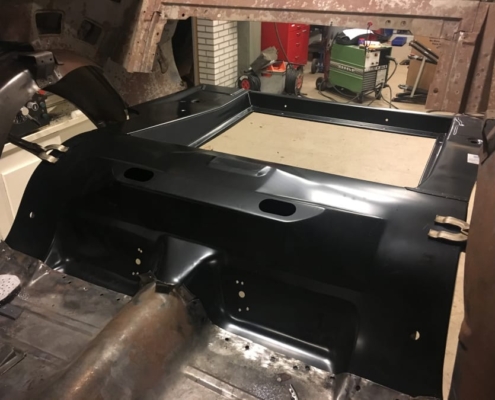 The front and rear suspension have been completely removed and replaced with a “Detroit speed” conversion kit with independent suspension. The original engine will be replaced with a brand- new Ford Coyote V8 with Tremec six-speed gearbox and the body will be modified to the owner’s wishes.