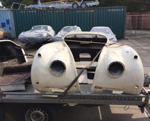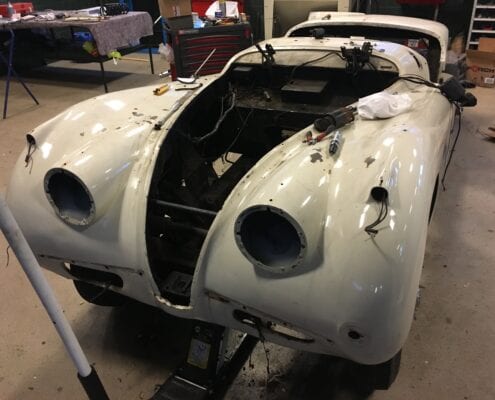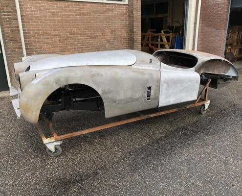 It is getting more difficult to find XKs of this quality. We purchased this Jaguar in the best possible specification. With C-Type cylinder head (210 hp), factory overdrive and close-ratio gearbox. In the SE version with wire wheels and fog lights. This car of course is matching numbers and comes with a heritage certificate. The body is in excellent condition with minimal rust and also the engine runs perfectly. An excellent basis for a restoration to concours condition.