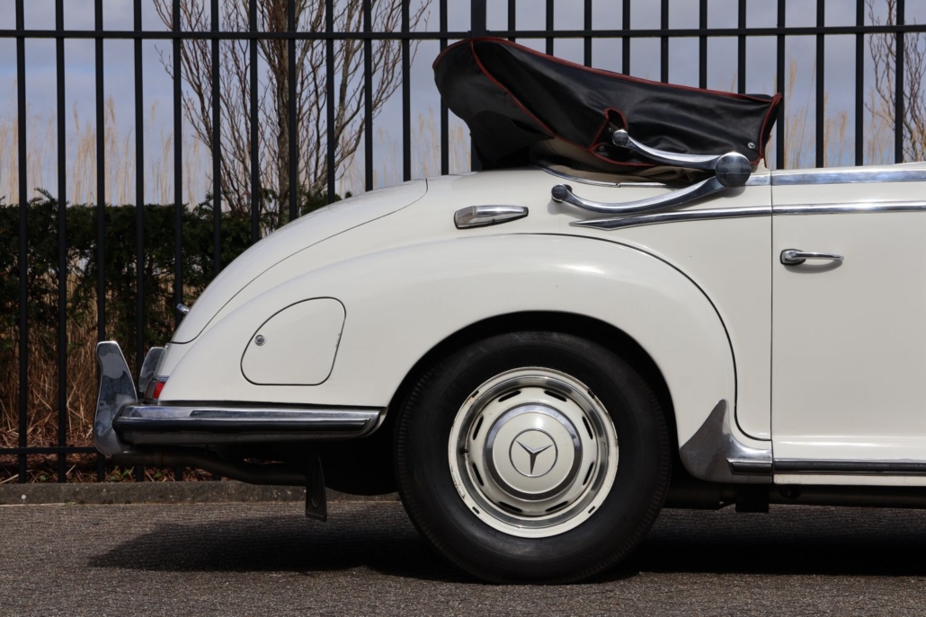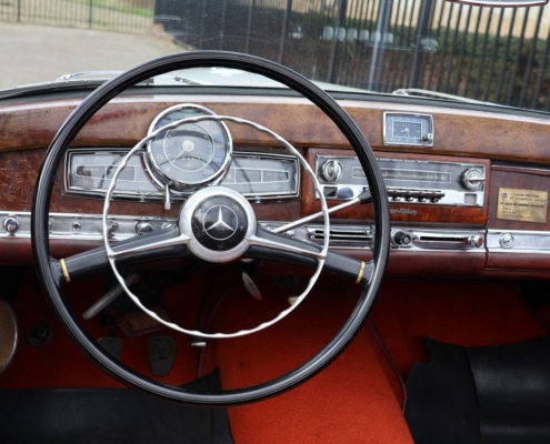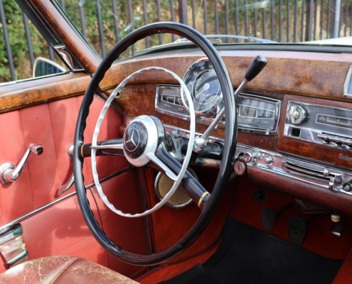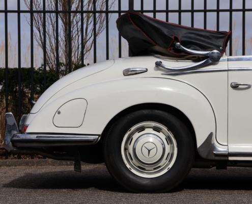 Elegantly styled in the pre-war manner yet technologically bang up to date, the 300 S was built to the Stuttgart firm’s uncompromising quality standards. Inevitably, production was limited, only 760 examples of the 300 S/Sc (560/200) leaving the factory between 1951 and 1958, of which only 203/49 were 300 S/Sc cabriolets. Ownership of such an exclusive automobile was necessarily restricted to a wealthy few, among them film stars Cary Grant and Gary Cooper, and the Aga Khan. Prohibitively expensive when new, these cars have a dedicated following and, being much rarer than both the 300 SL Gullwing and Roadster, represent a potentially sound investment as well as affording their fortunate owners enjoyable motoring in matchless style.
