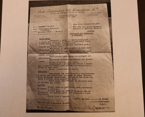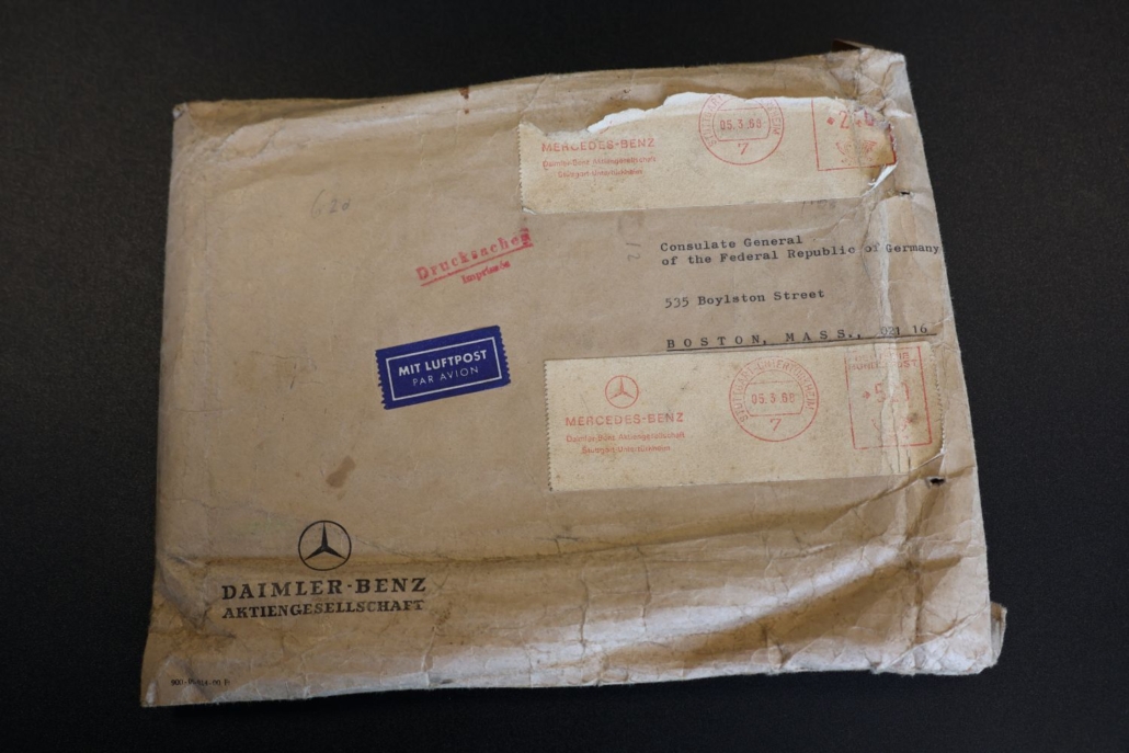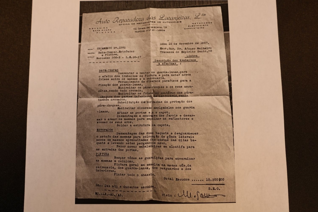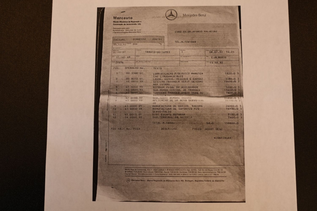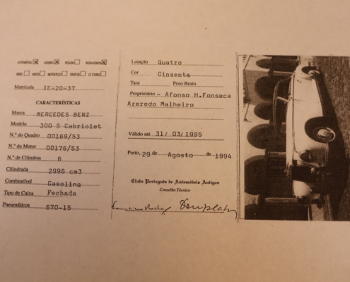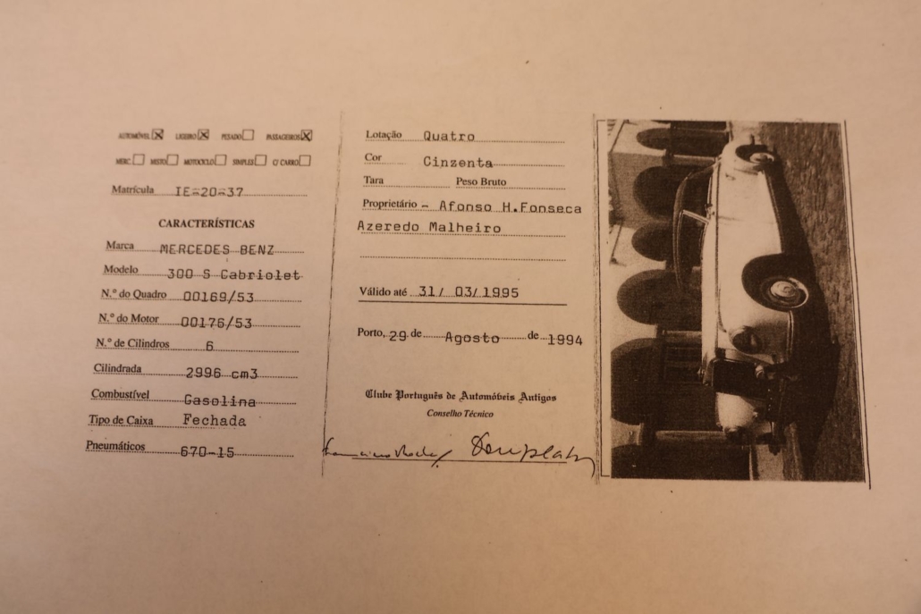 The Ambassador bought the Mercedes from a friend of his in Portugal on 27th October 1967, the friend being its first owner. Sadly, there is little by way of documentation with the car, consisting of a service bill; some letters in Portuguese; Portuguese registration papers; and what appears to be either an estimate or a bill for restoration work. Regarding events attended, the Mercedes was exhibited in January 2006 during the opening of the new Mercedes-Benz Portugal dealership in Sintra. Photos of that event are on file.