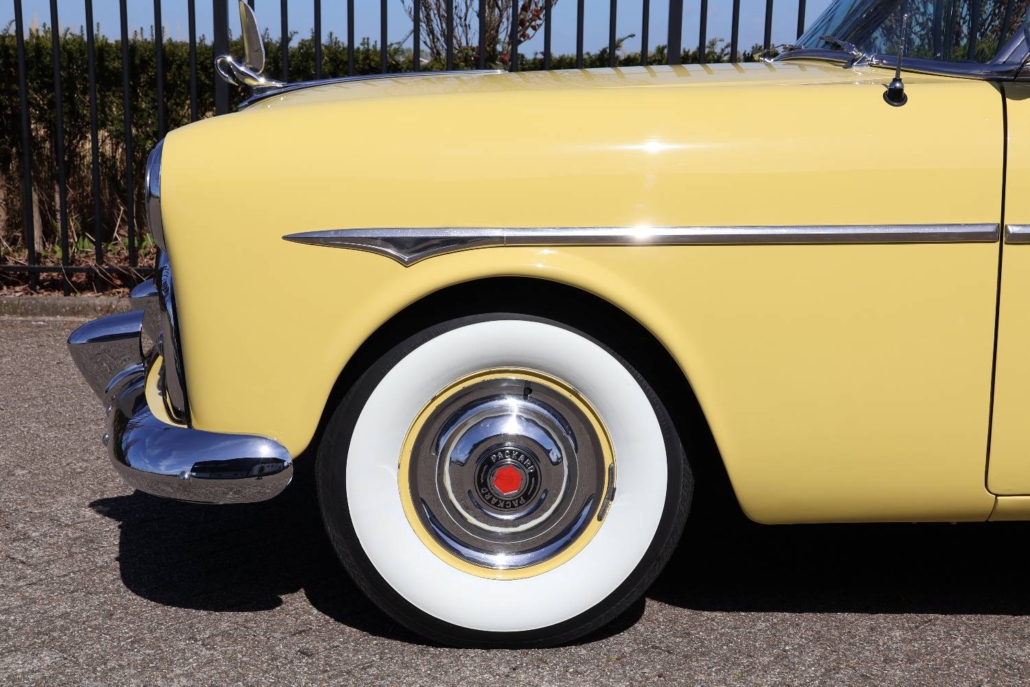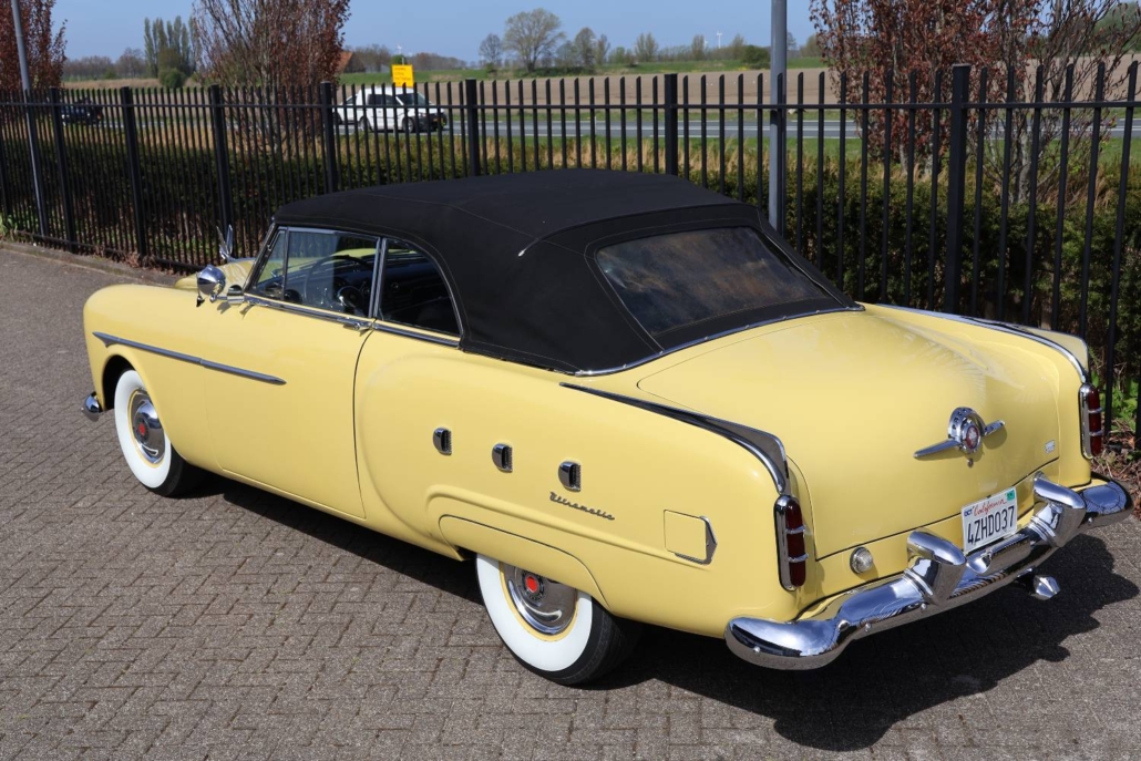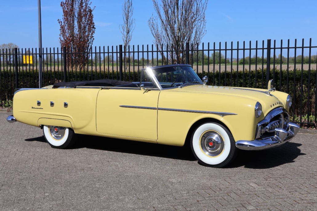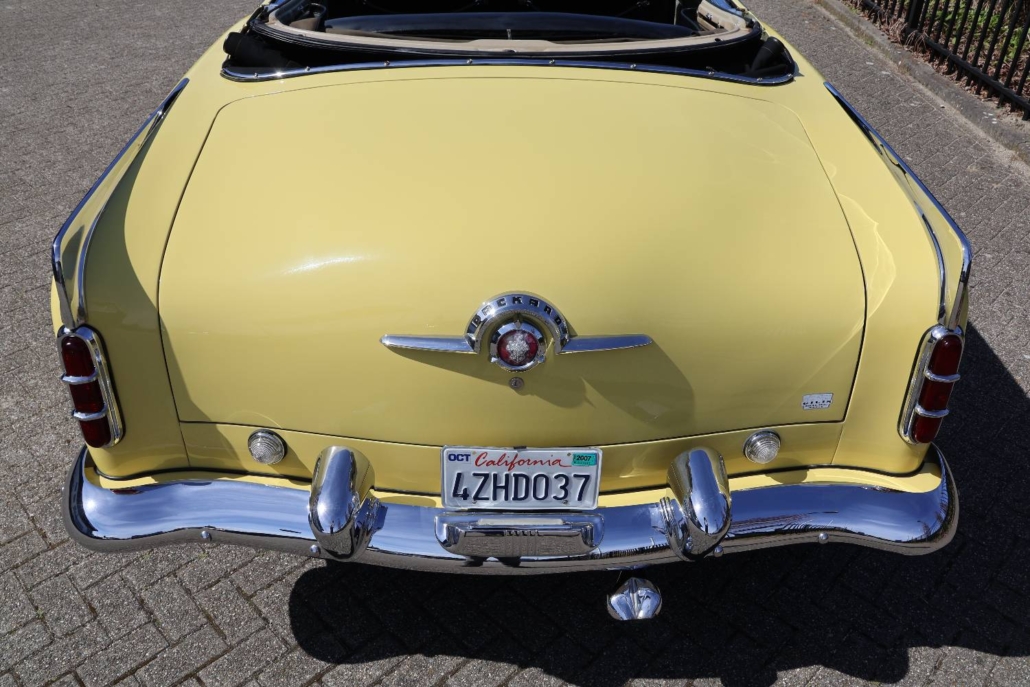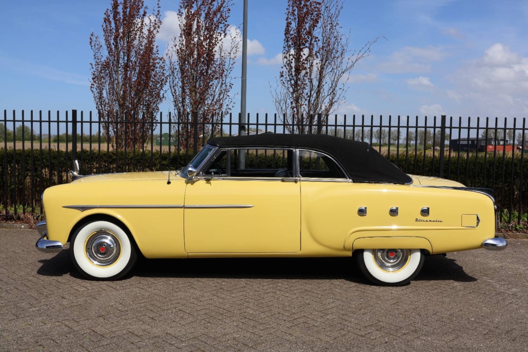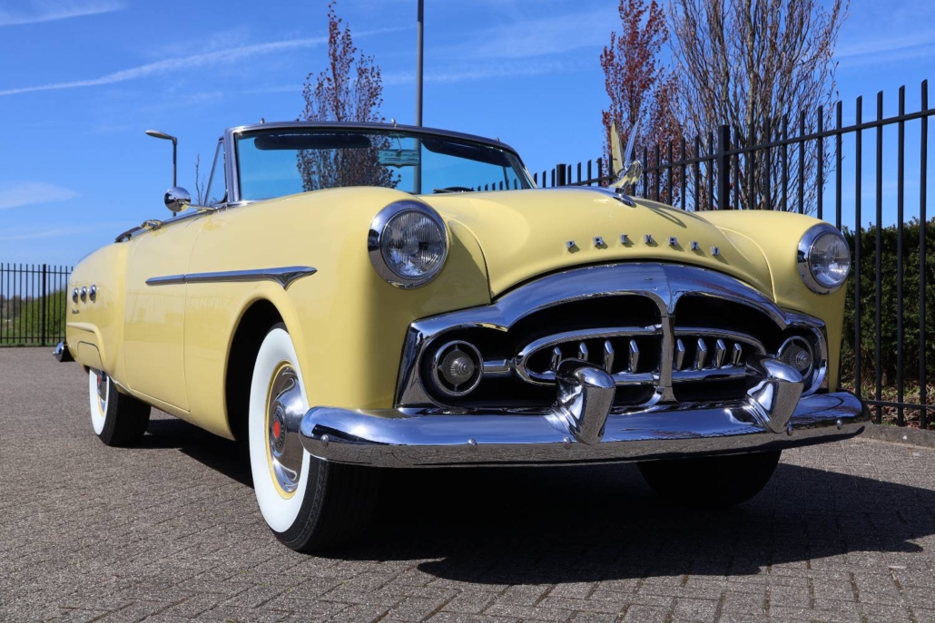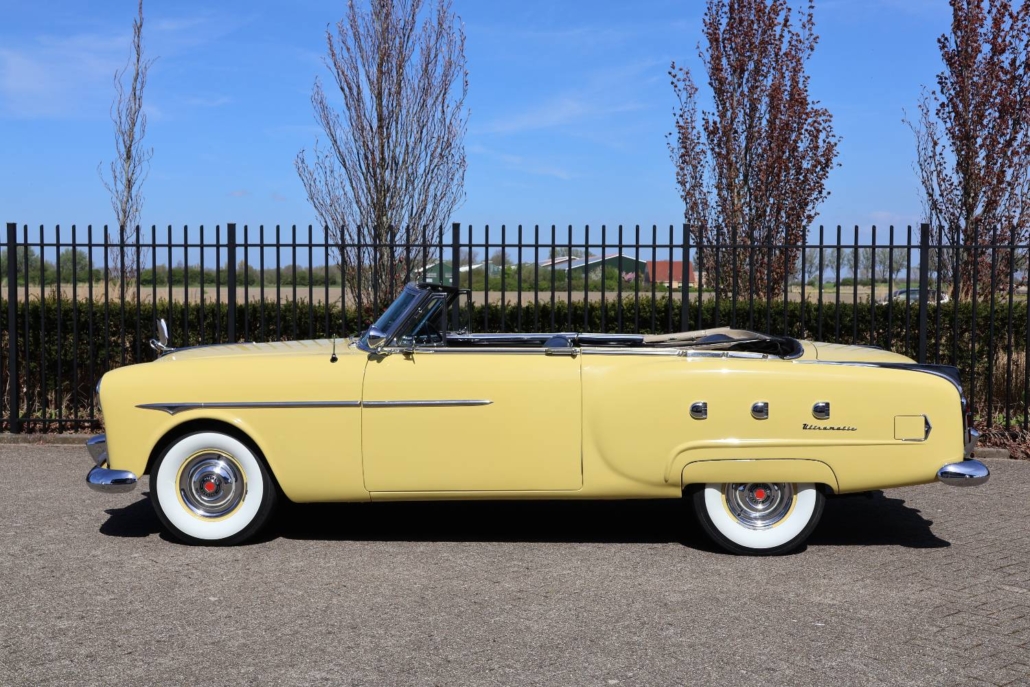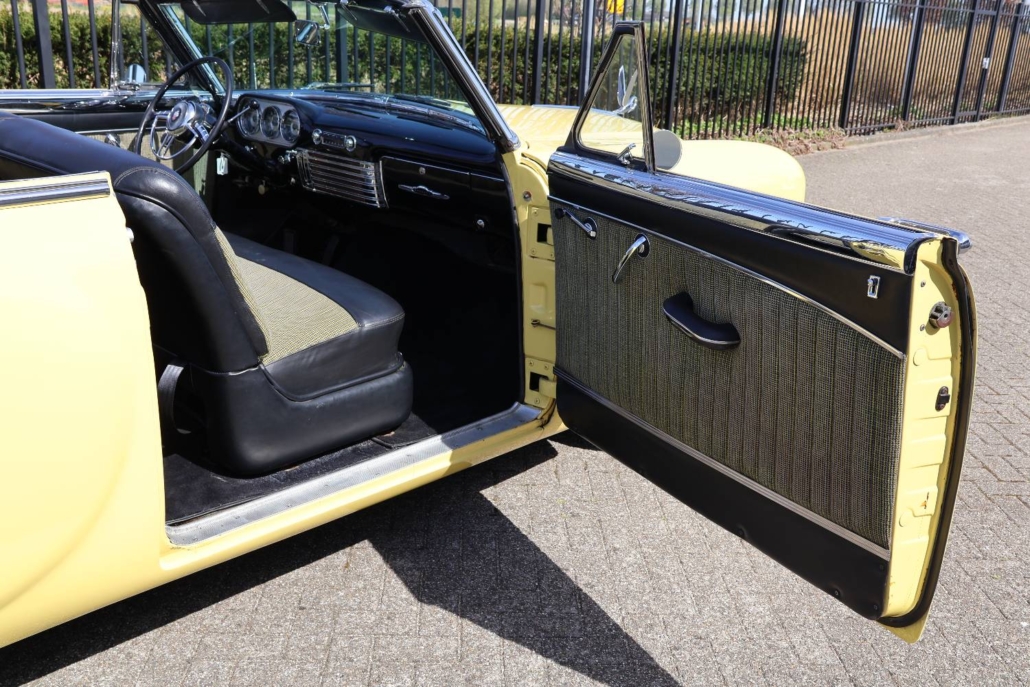 The Packard we are offering here is from 1951 and is equipped with the Ultramatic automatic transmission, a fantastic feature on this car that shifts with silky smoothness. This pairs perfectly with the quietly running inline-eight-cylinder engine. A beautiful, fresh color scheme where the yellow of the exterior is subtly echoed in the fabric of the interior upholstery. Another nice detail is the stunning ornament on the dashboard—very elegant and a challenge to point the wings of this swan upon the horizon. American driving at its best, then, and guaranteed to turn heads wherever you take this convertible. A fill-up typically takes at least half an hour. The car spent a long time in the collection of a Dutch collector, and we were commissioned to give it a thorough service and maintenance check before offering it for sale. The car is on display in our showroom in Dirksland, where we’d be happy to tell you more about it and let you experience for yourself what a thrill it is to drive this American classic.