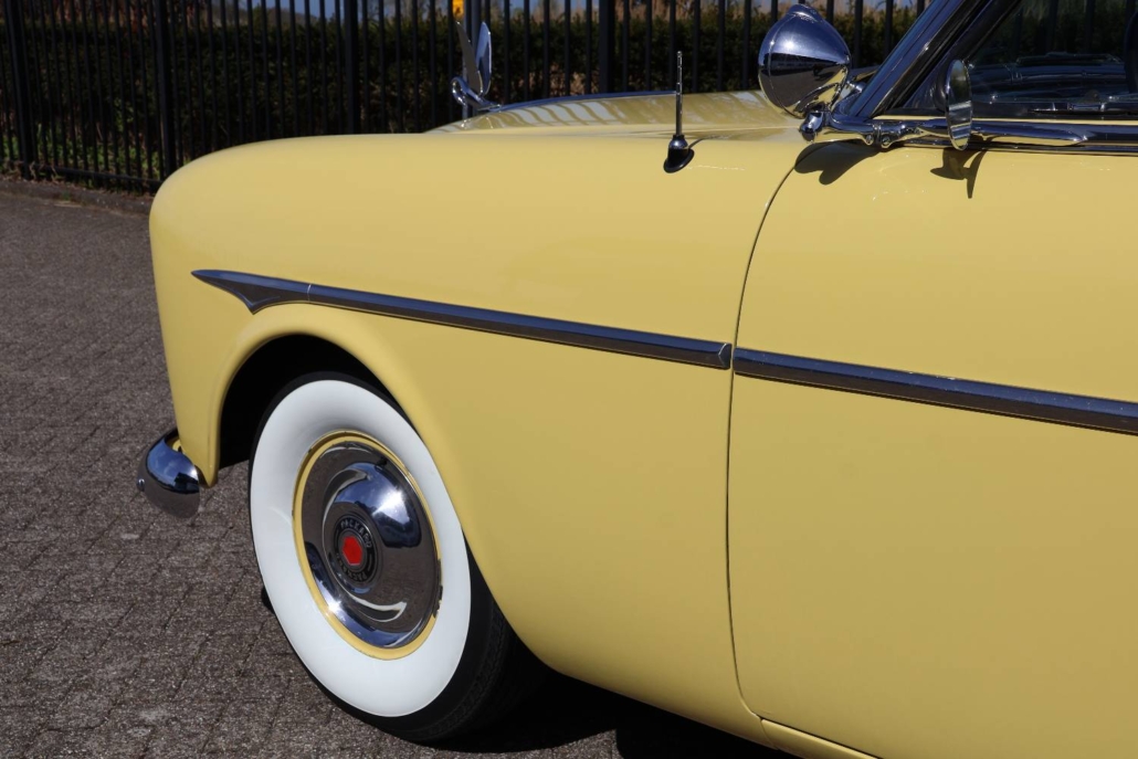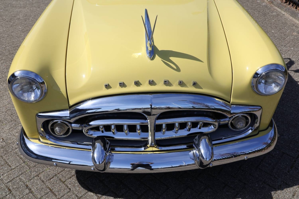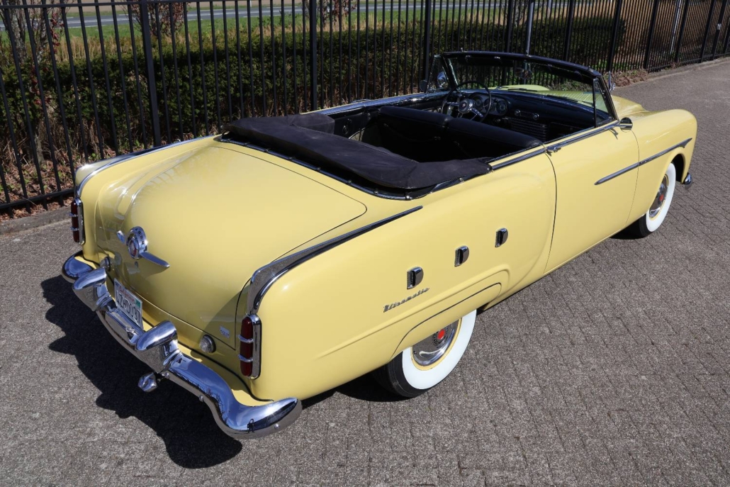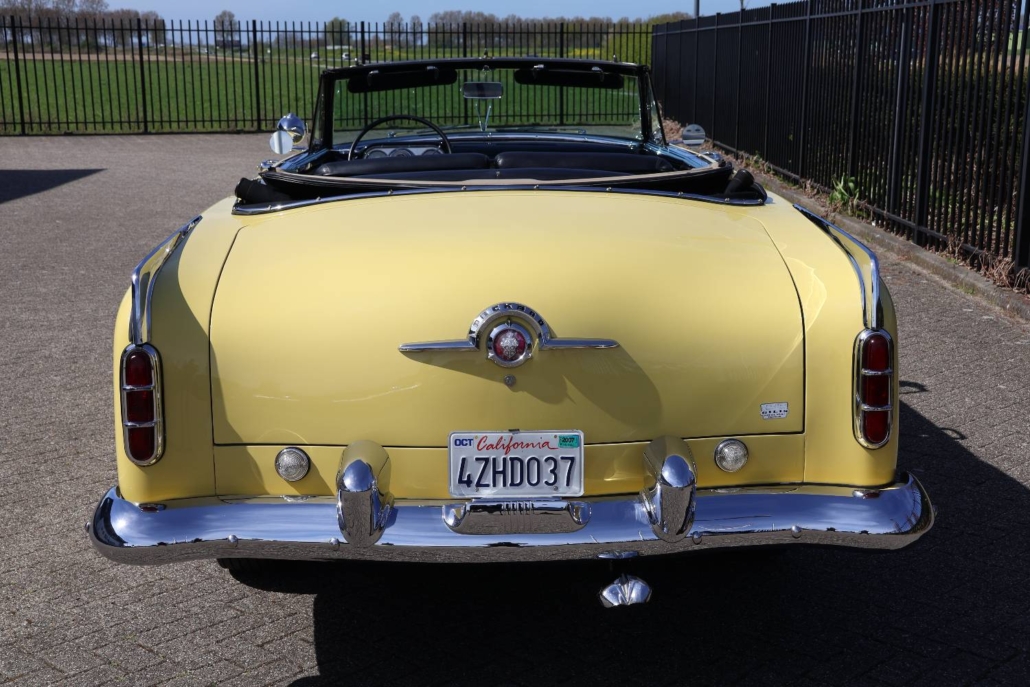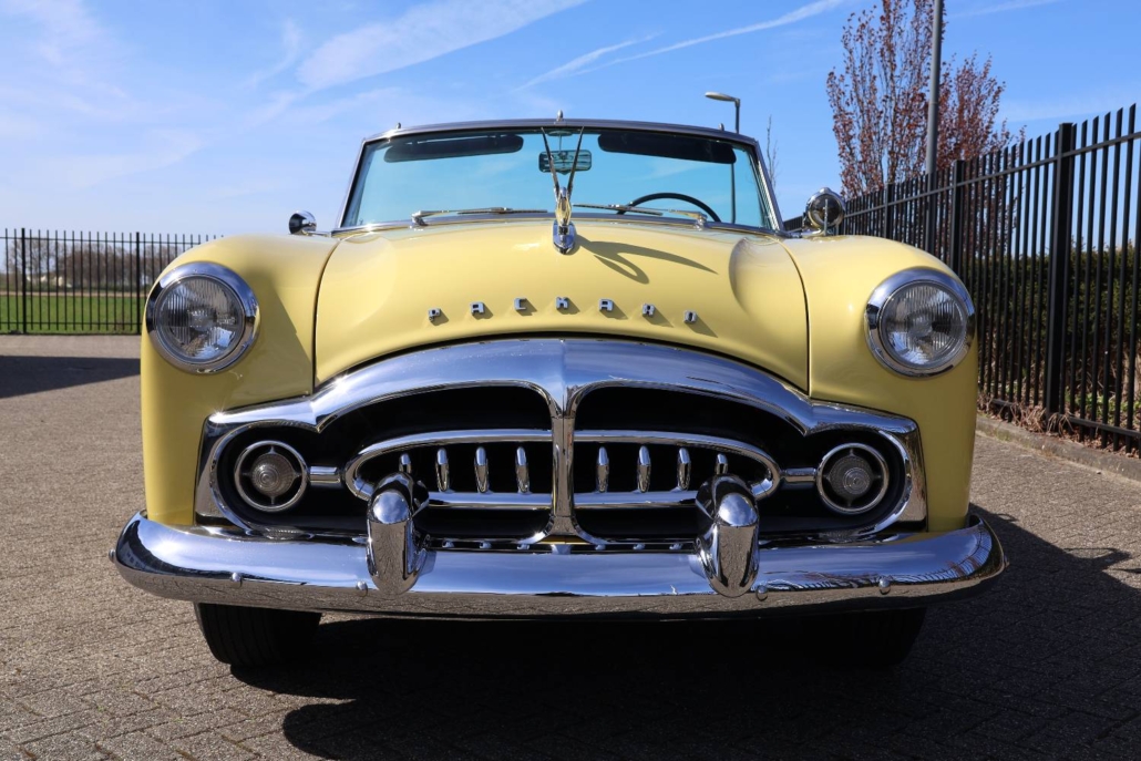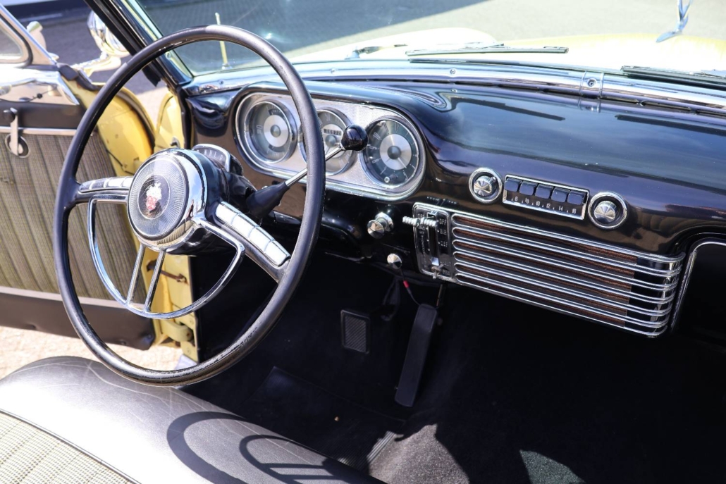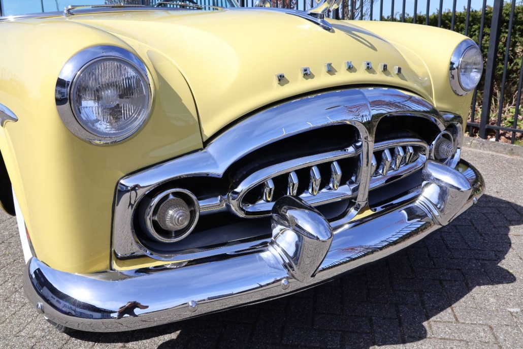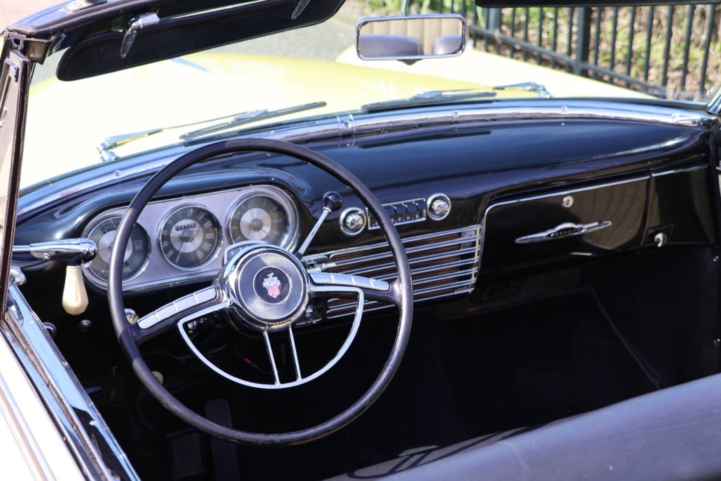 The Packard we are offering here is from 1951 and is equipped with the Ultramatic automatic transmission, a fantastic feature on this car that shifts with silky smoothness. This pairs perfectly with the quietly running inline-eight-cylinder engine. A beautiful, fresh color scheme where the yellow of the exterior is subtly echoed in the fabric of the interior upholstery. Another nice detail is the stunning ornament on the dashboard—very elegant and a challenge to point the wings of this swan upon the horizon. American driving at its best, then, and guaranteed to turn heads wherever you take this convertible. A fill-up typically takes at least half an hour. The car spent a long time in the collection of a Dutch collector, and we were commissioned to give it a thorough service and maintenance check before offering it for sale. The car is on display in our showroom in Dirksland, where we’d be happy to tell you more about it and let you experience for yourself what a thrill it is to drive this American classic.