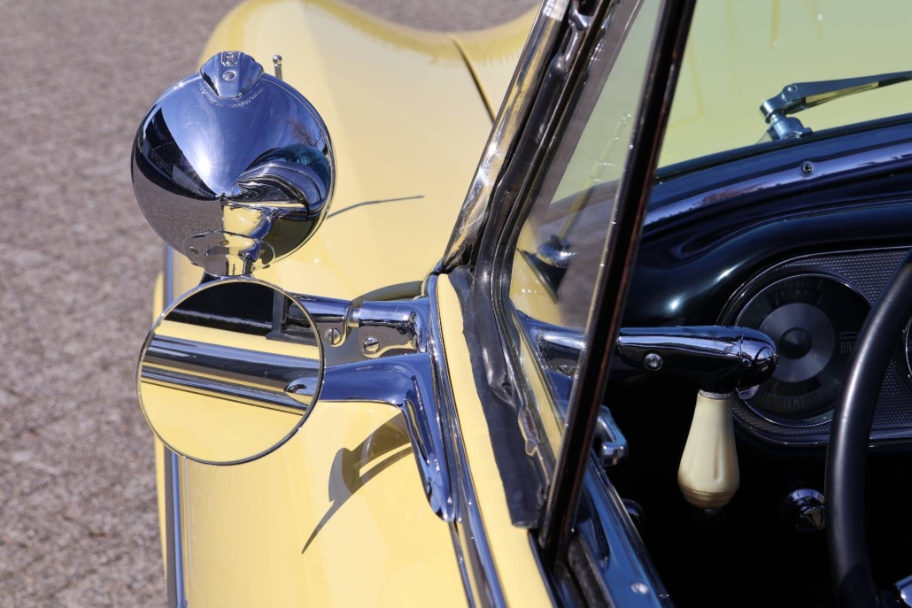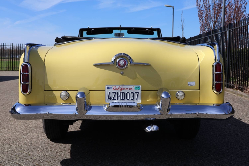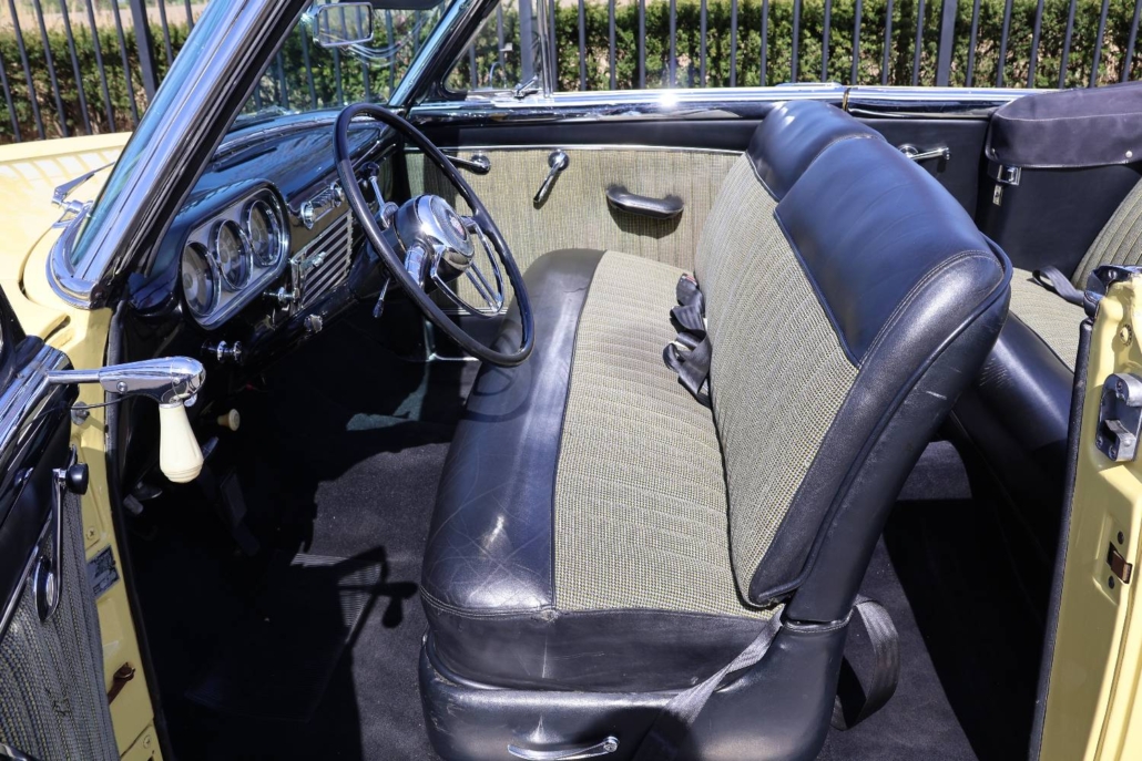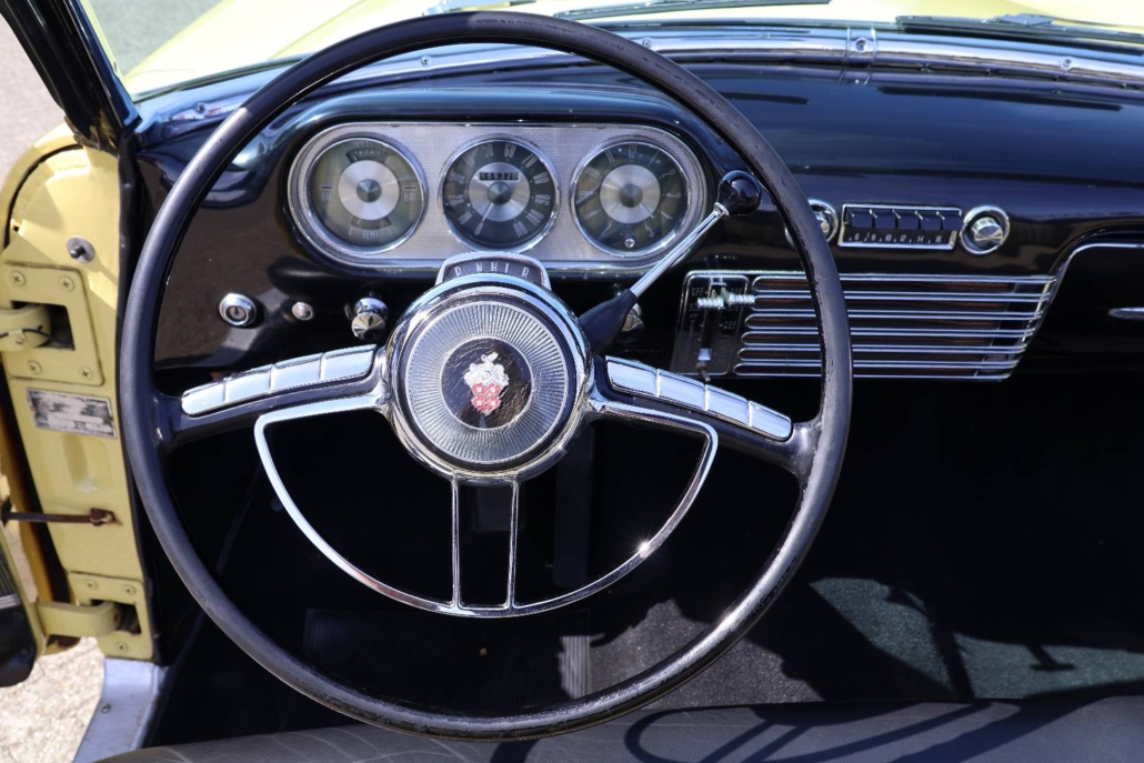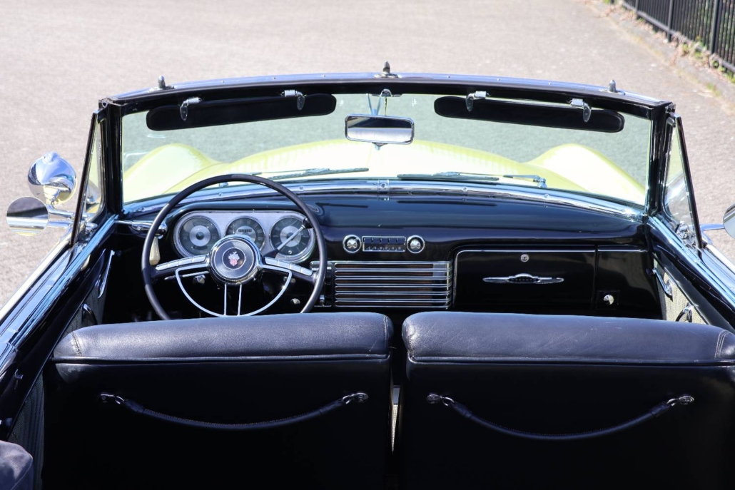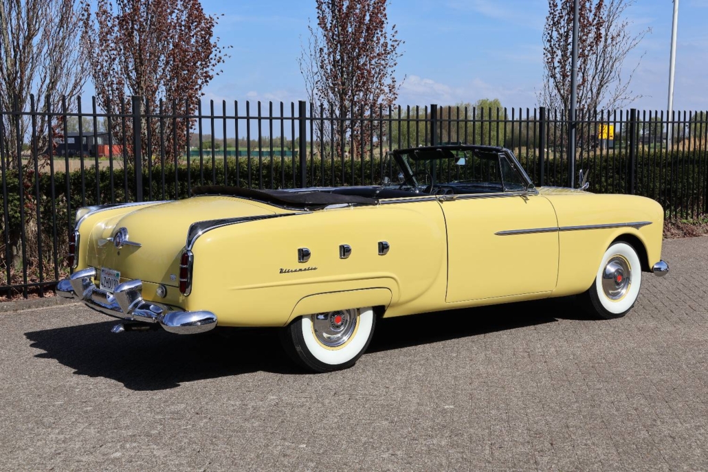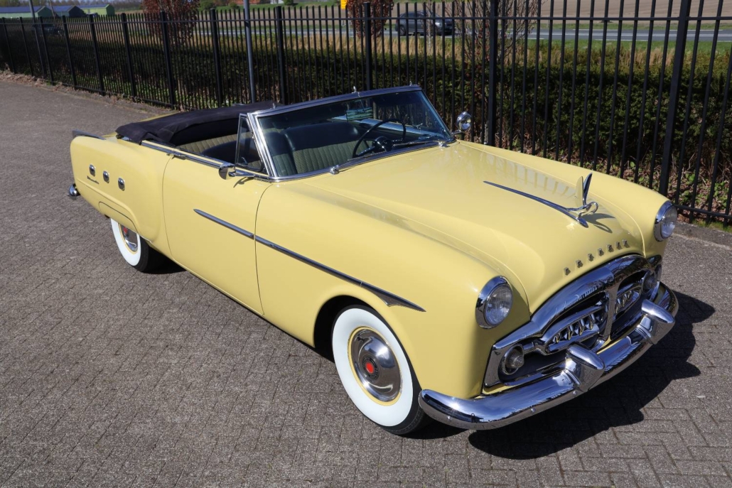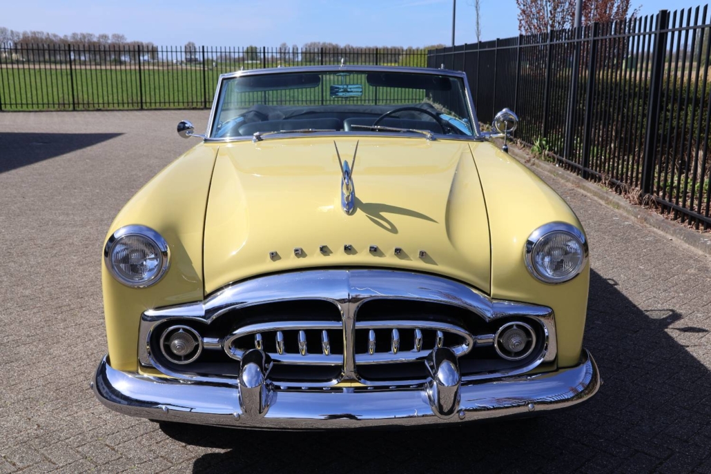 The Packard we are offering here is from 1951 and is equipped with the Ultramatic automatic transmission, a fantastic feature on this car that shifts with silky smoothness. This pairs perfectly with the quietly running inline-eight-cylinder engine. A beautiful, fresh color scheme where the yellow of the exterior is subtly echoed in the fabric of the interior upholstery. Another nice detail is the stunning ornament on the dashboard—very elegant and a challenge to point the wings of this swan upon the horizon. American driving at its best, then, and guaranteed to turn heads wherever you take this convertible. A fill-up typically takes at least half an hour. The car spent a long time in the collection of a Dutch collector, and we were commissioned to give it a thorough service and maintenance check before offering it for sale. The car is on display in our showroom in Dirksland, where we’d be happy to tell you more about it and let you experience for yourself what a thrill it is to drive this American classic.