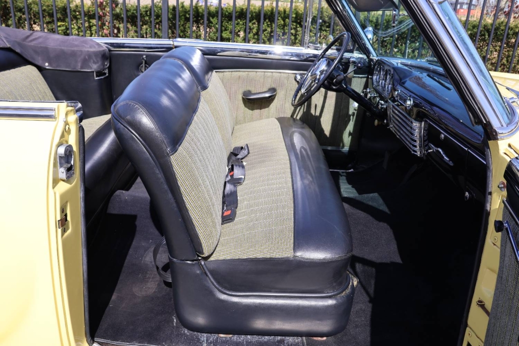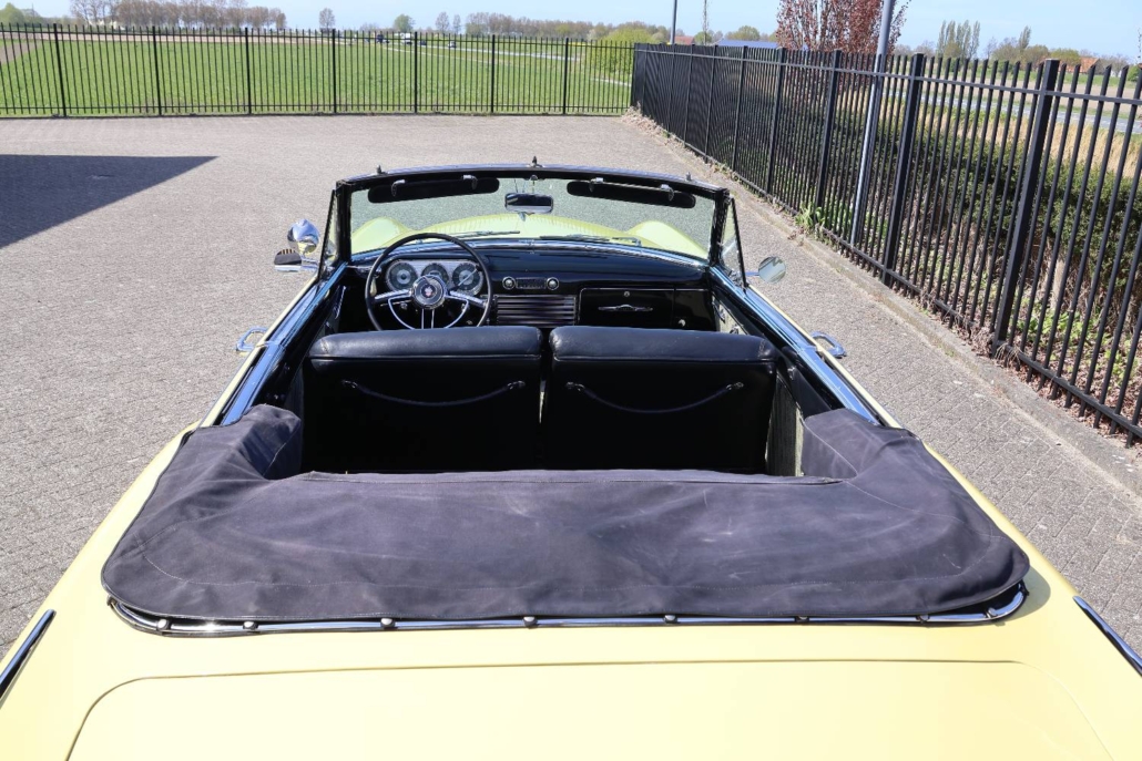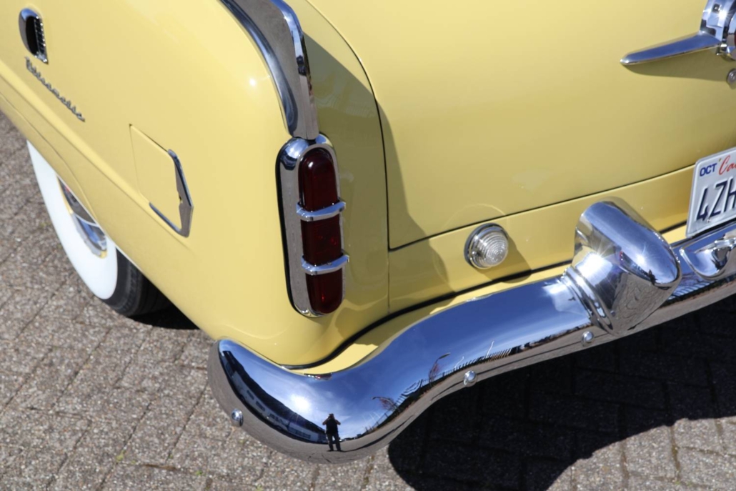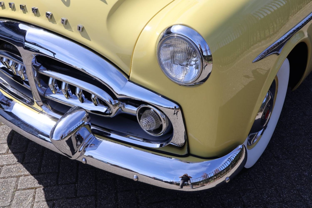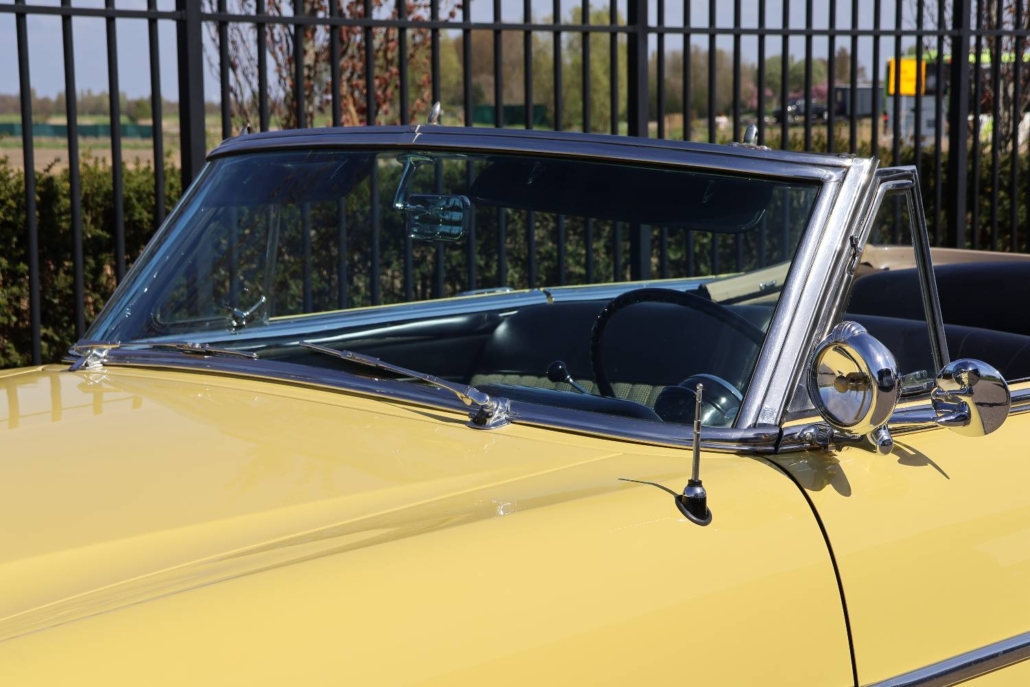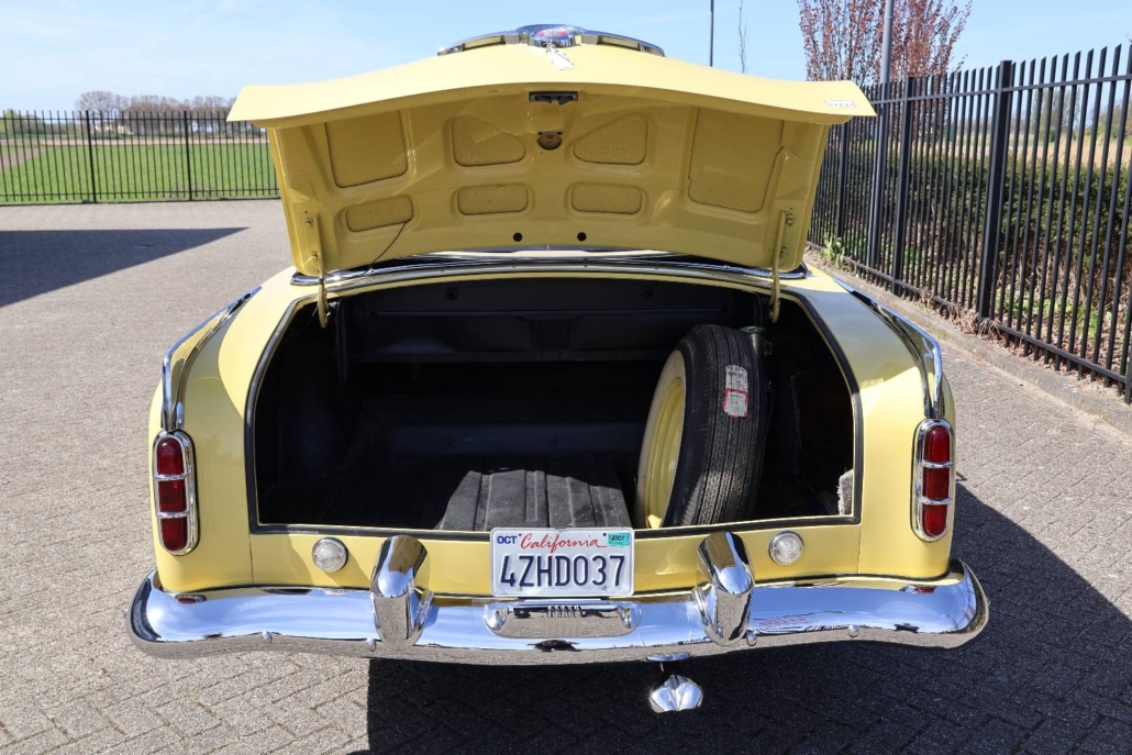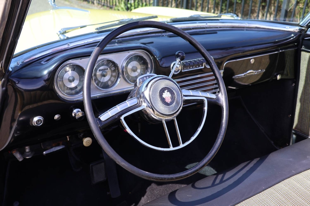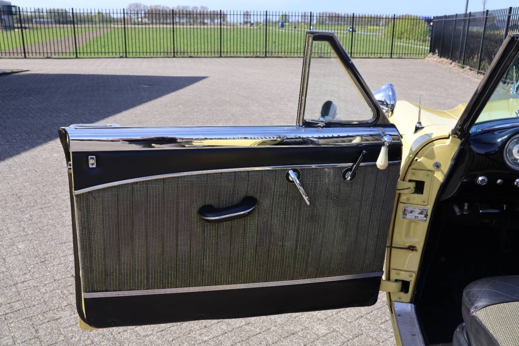 The Packard we are offering here is from 1951 and is equipped with the Ultramatic automatic transmission, a fantastic feature on this car that shifts with silky smoothness. This pairs perfectly with the quietly running inline-eight-cylinder engine. A beautiful, fresh color scheme where the yellow of the exterior is subtly echoed in the fabric of the interior upholstery. Another nice detail is the stunning ornament on the dashboard—very elegant and a challenge to point the wings of this swan upon the horizon. American driving at its best, then, and guaranteed to turn heads wherever you take this convertible. A fill-up typically takes at least half an hour. The car spent a long time in the collection of a Dutch collector, and we were commissioned to give it a thorough service and maintenance check before offering it for sale. The car is on display in our showroom in Dirksland, where we’d be happy to tell you more about it and let you experience for yourself what a thrill it is to drive this American classic.