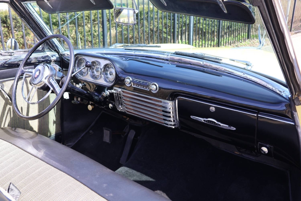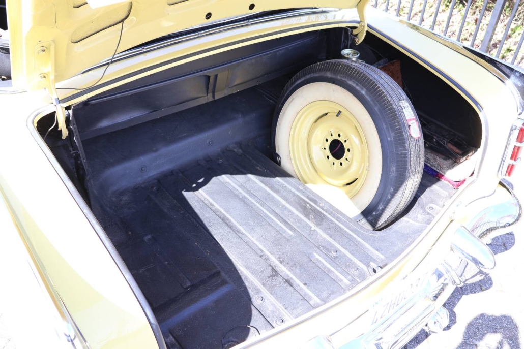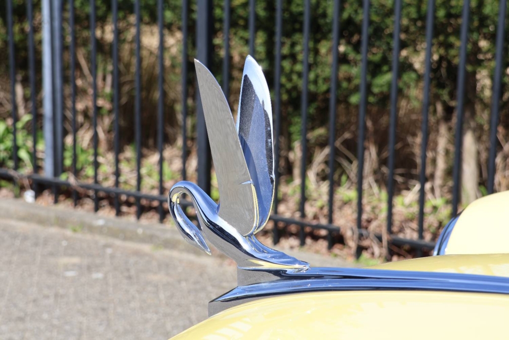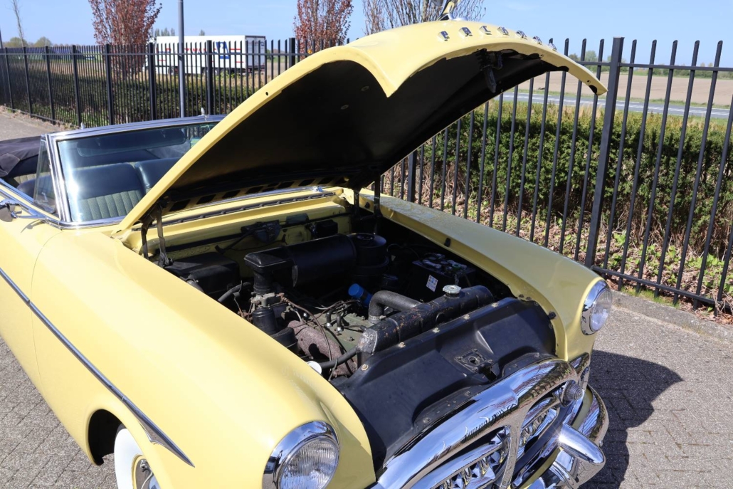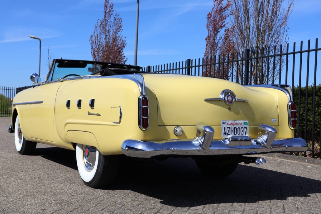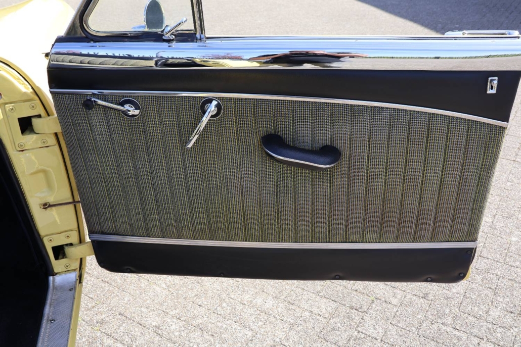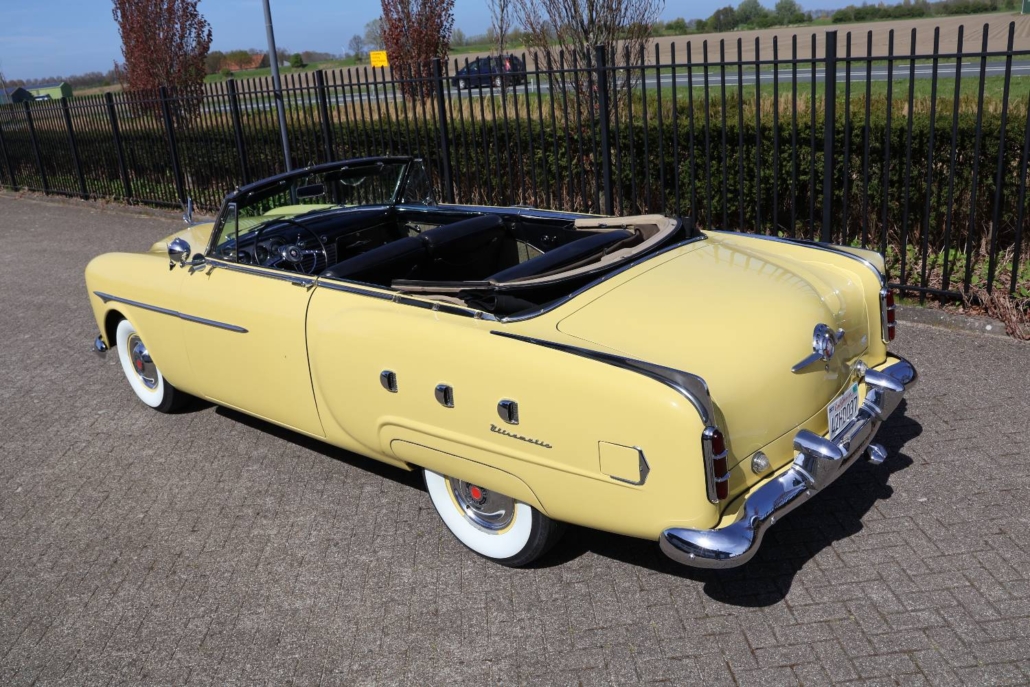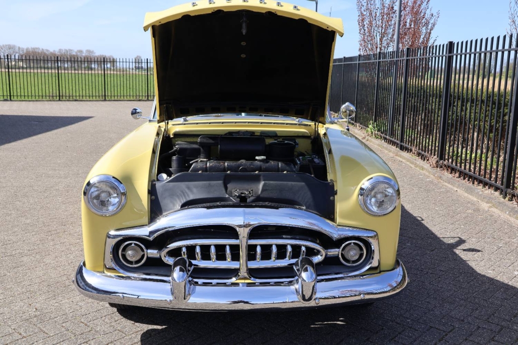 The Packard we are offering here is from 1951 and is equipped with the Ultramatic automatic transmission, a fantastic feature on this car that shifts with silky smoothness. This pairs perfectly with the quietly running inline-eight-cylinder engine. A beautiful, fresh color scheme where the yellow of the exterior is subtly echoed in the fabric of the interior upholstery. Another nice detail is the stunning ornament on the dashboard—very elegant and a challenge to point the wings of this swan upon the horizon. American driving at its best, then, and guaranteed to turn heads wherever you take this convertible. A fill-up typically takes at least half an hour. The car spent a long time in the collection of a Dutch collector, and we were commissioned to give it a thorough service and maintenance check before offering it for sale. The car is on display in our showroom in Dirksland, where we’d be happy to tell you more about it and let you experience for yourself what a thrill it is to drive this American classic.
