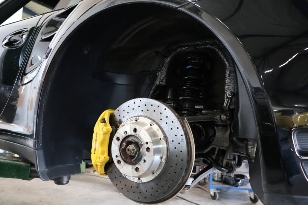 This Porsche 997.1 turbo is the sixth generation of the turbo 911s. The first original version (the so-called 930) was launched in 1975, and it is incredible to see how these cars have developed over the years. With each generation, Porsche’s engineers managed to make improvements, resulting in the arrival of the 997.1 in June 2006. What a powerhouse the engineers in Zuffenhausen have developed! The six-cylinder boxer engine is equipped with two exhaust gas turbos with variable turbine geometry, developed by BorgWarner. This 3.6-liter engine delivers no less than 480 hp and sends it to all four wheels via the Tiptronic S automatic six-speed transmission. This four-wheel drive provides phenomenal road holding and very sporty driving characteristics, but also ensures that, despite its enormous power, the car can be used every day in all weather conditions. Acceleration from 0-100 km/h takes just 3.9 seconds and the car only stops accelerating at 310 km/h. Ceramic brakes all round ensure that the car can be brought to a halt in a very short time.